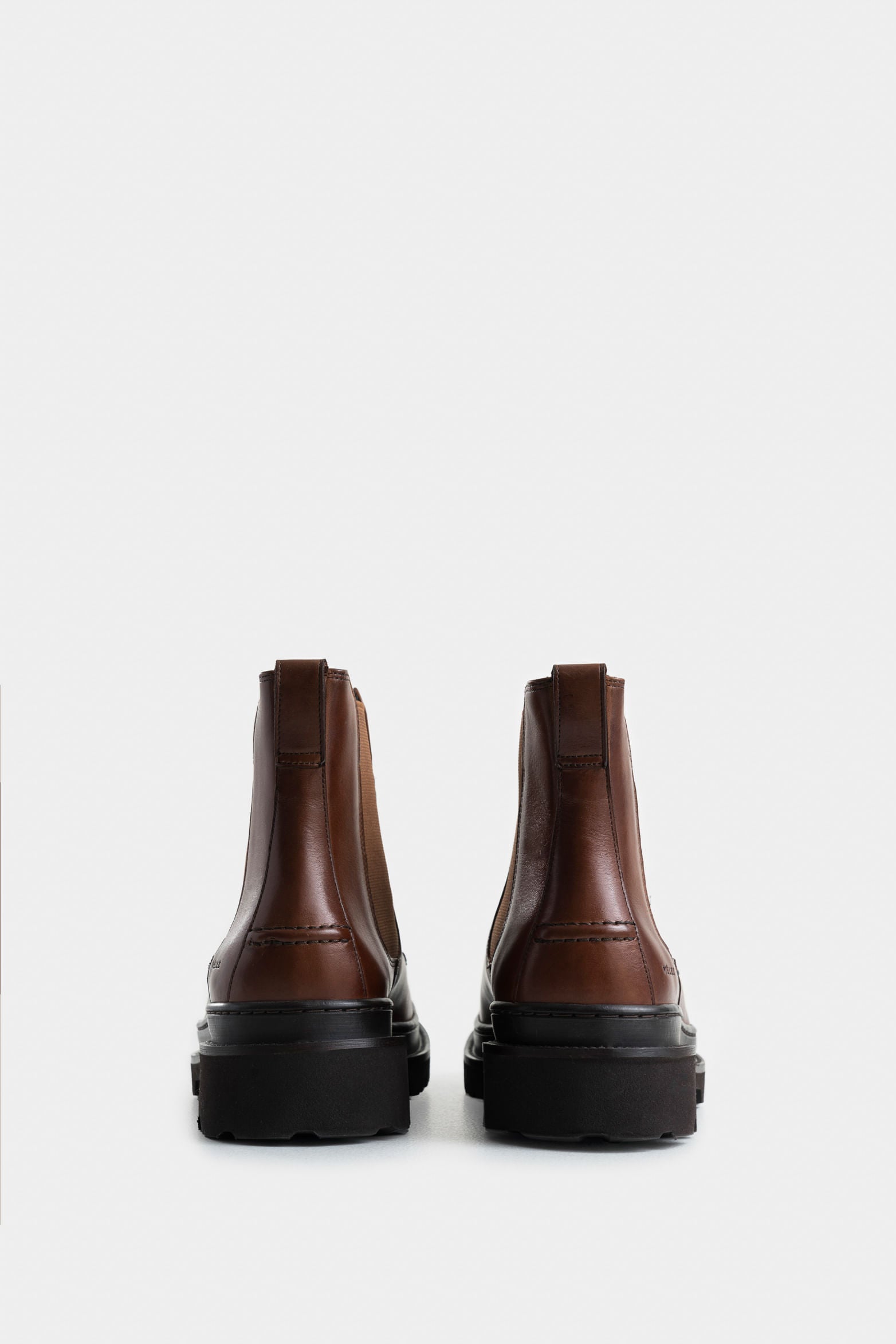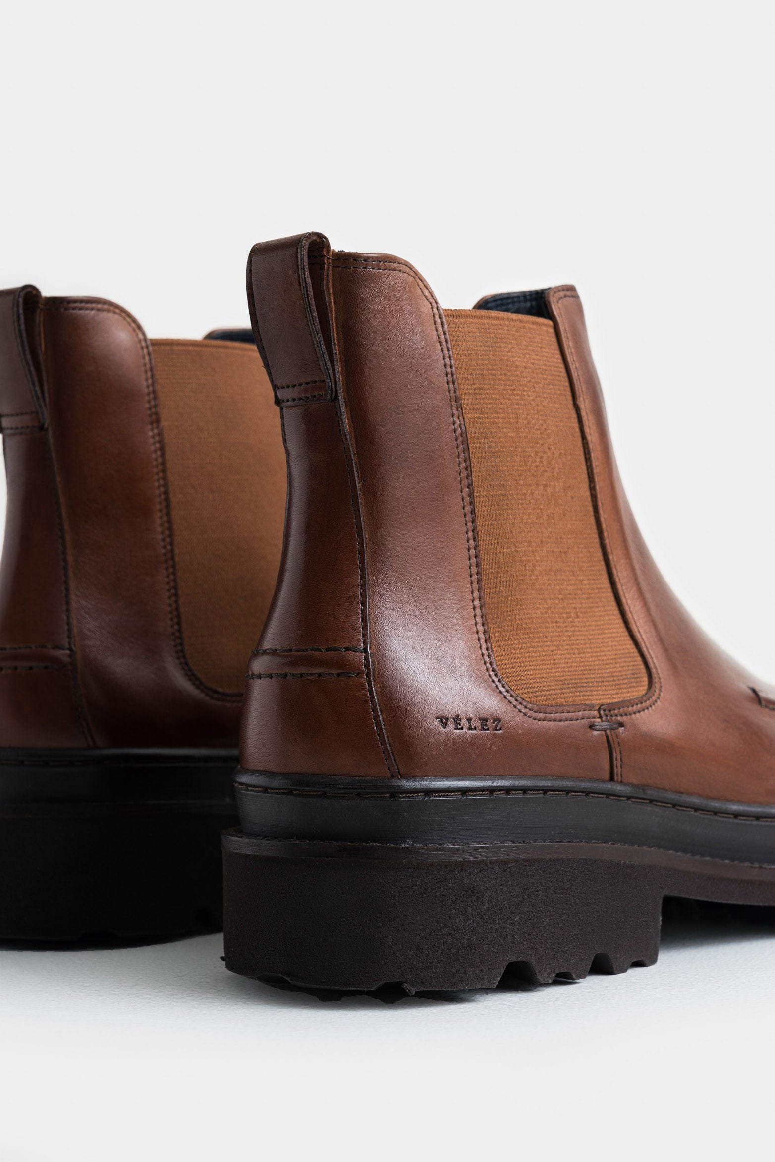 These Amber leather boots for men are the epitome of timeless design with a contemporary twist. The EVA-crafted lightweight outsole adds comfort, while vein detailing on the toe cap lends a bespoke feel. Side elastics ensure an easy fit, enhancing the boot's distinction and style. Perfect for a range of styles; they're suitable for both casual and formal settings.