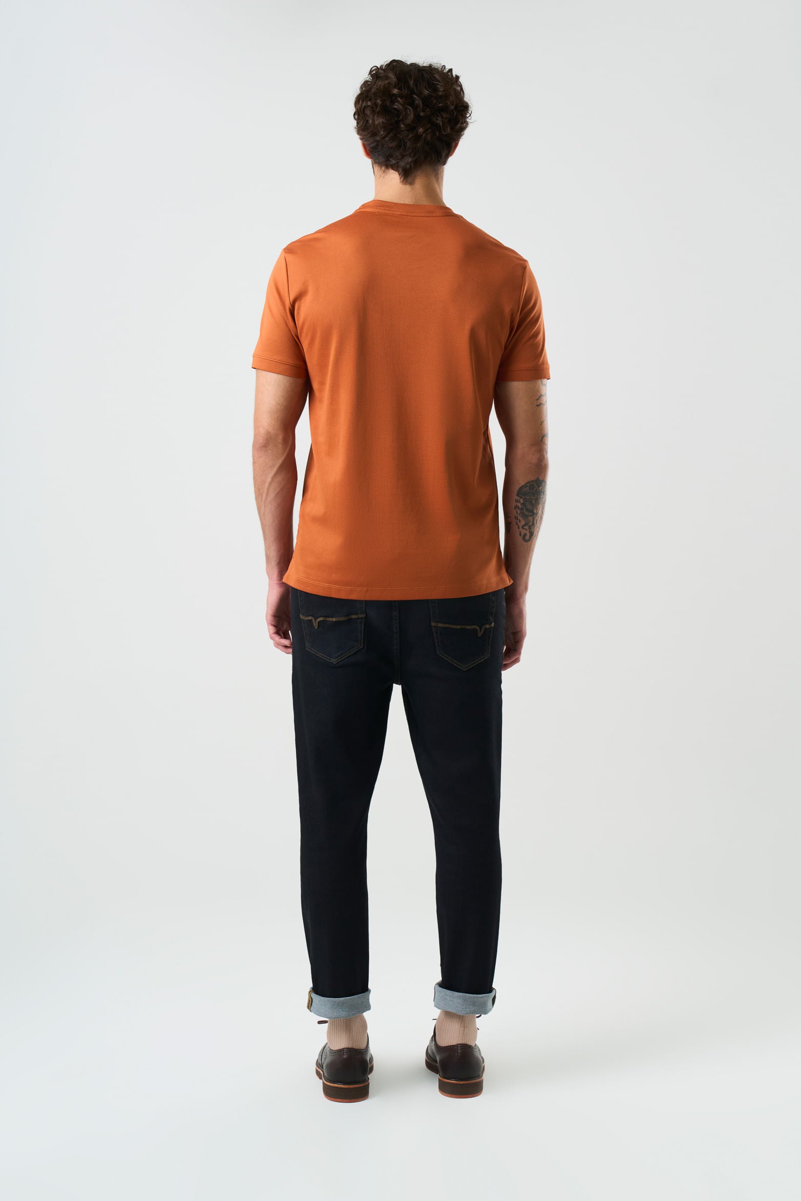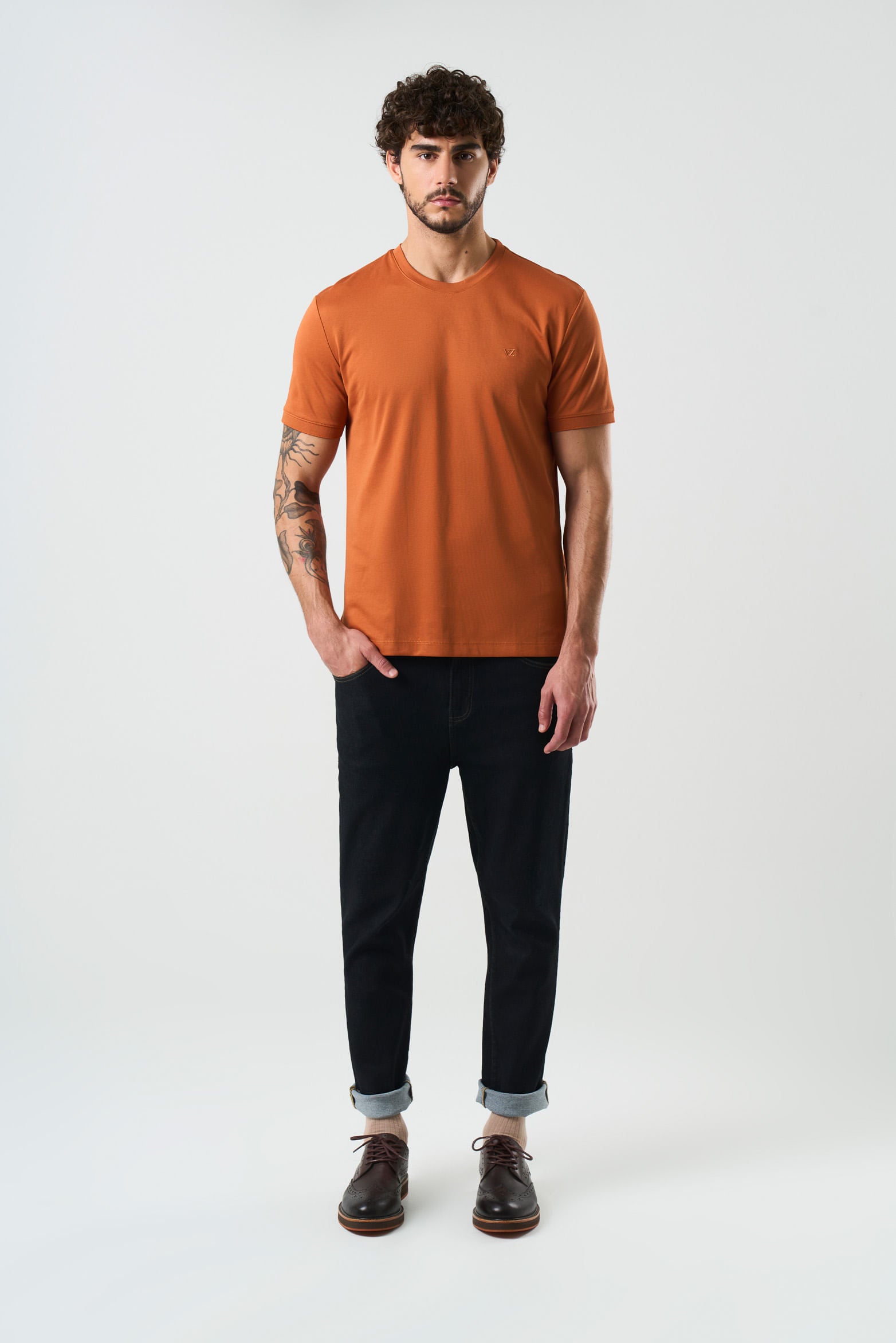 Our men's t-shirt is a classic piece that brings comfort and style to your everyday life. Crafted from cotton, it offers a fresh feel that adapts to your personal style. The short-sleeved design features a semi-fitted silhouette and a crew neck. A versatile basic, it pairs effortlessly with jeans or trousers and sneakers or dress shoes, allowing you to create a variety of casual looks.