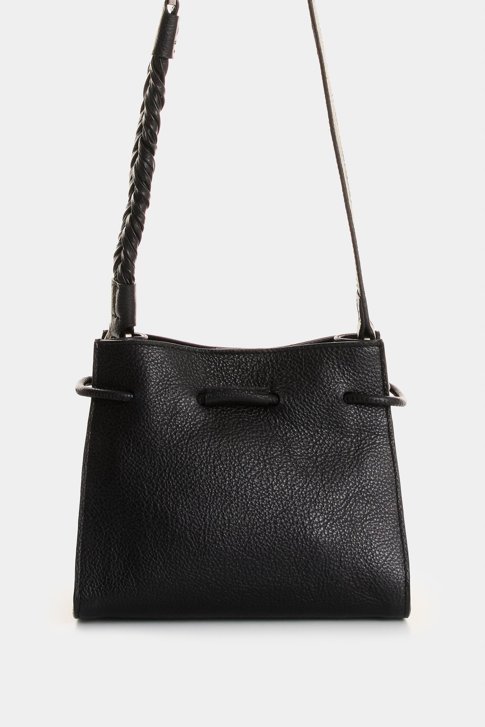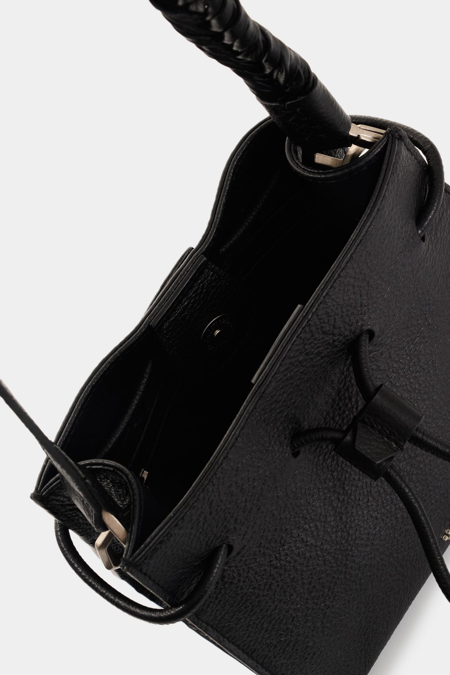With a timeless design inspired by natural beauty, this minimalist crossbody bag is crafted in natural-grain leather for rich texture. Its herringbone-braided strap adds a distinctive artisanal detail. The adjustable drawstring and hidden snap closure enhance its refined aesthetic, while the interior zip pocket and secret compartment ensure functionality and organization. Versatile and elegant, it is the ideal companion for those who value practicality with a touch of sophistication.
