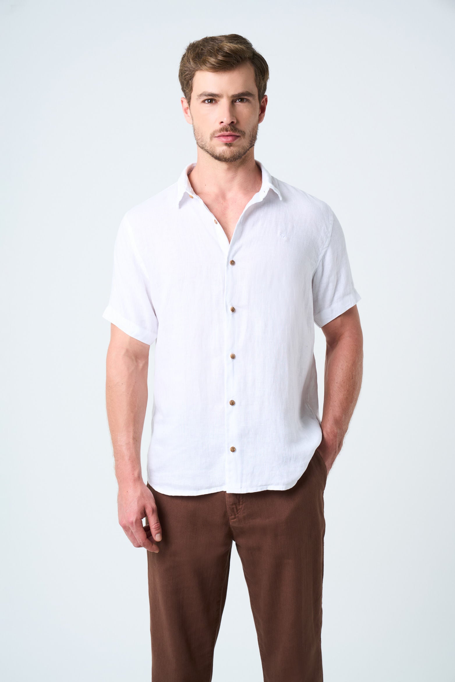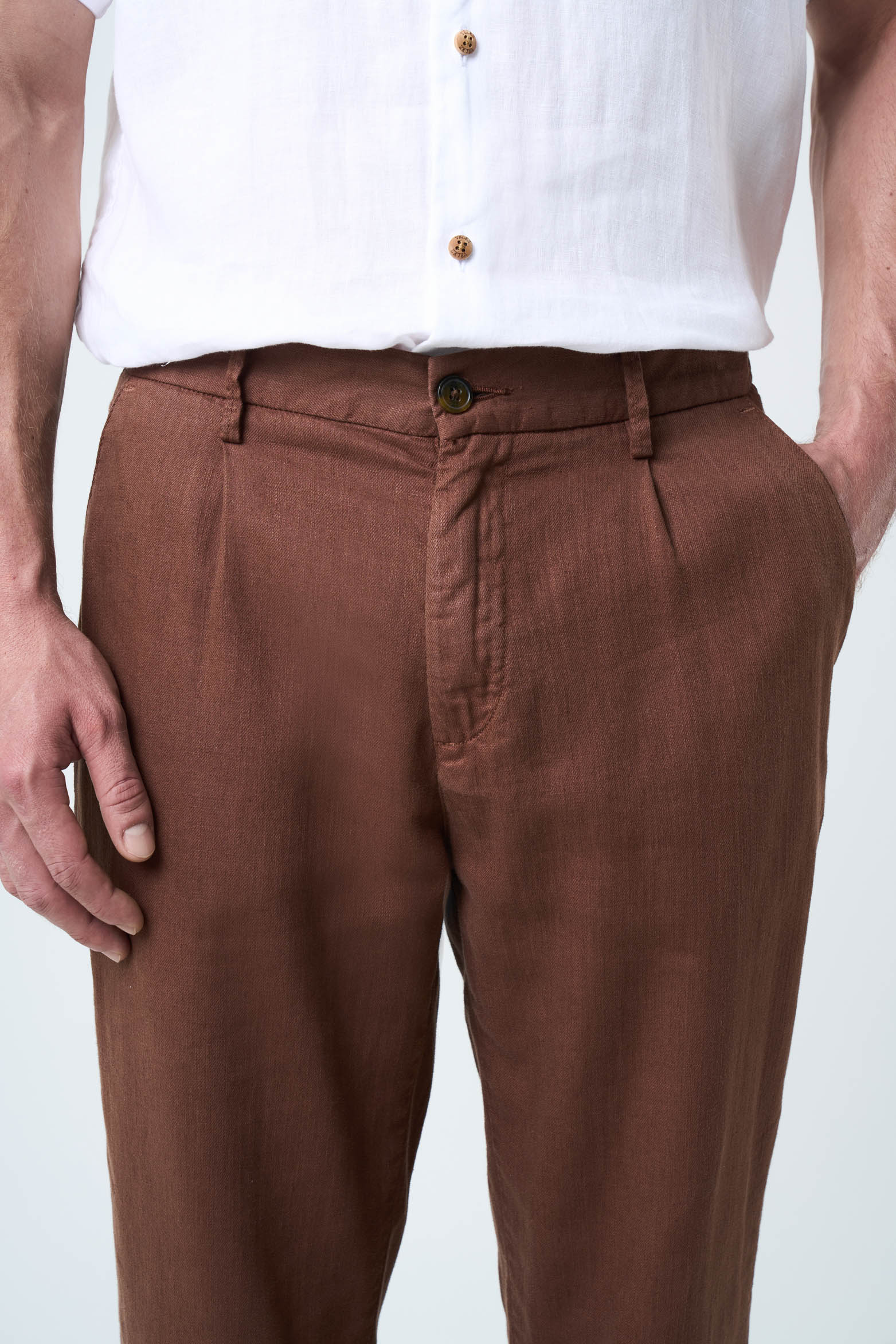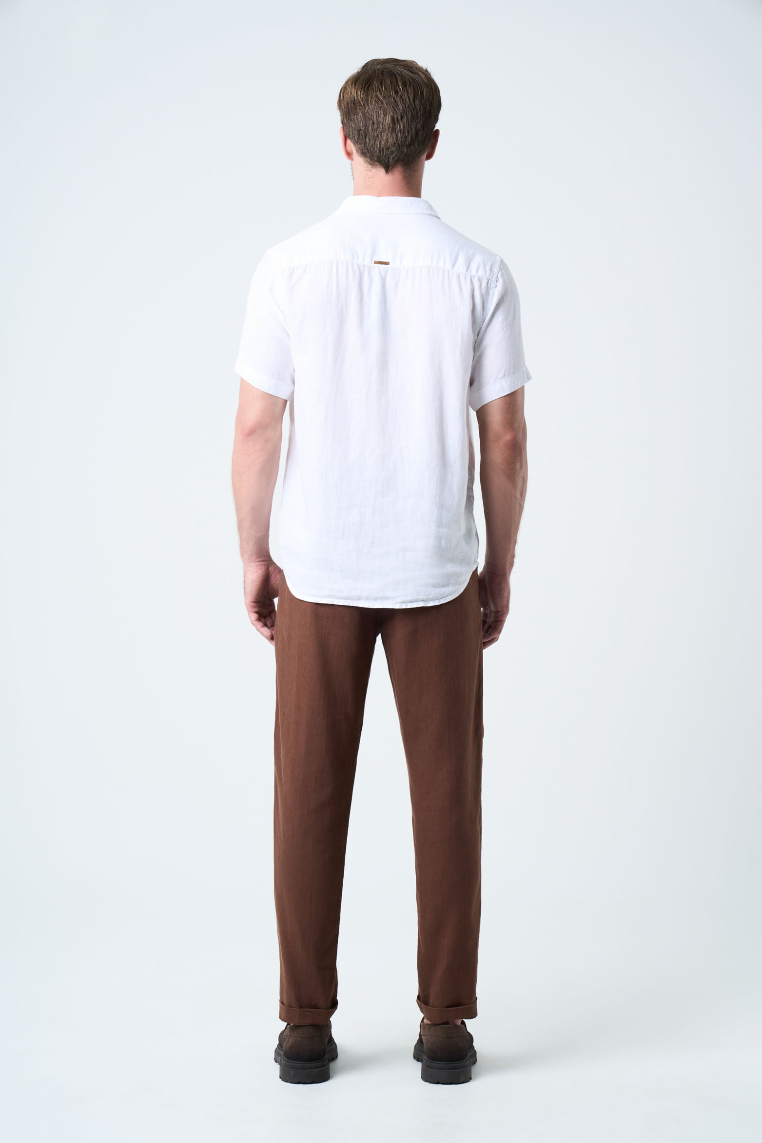 Evoking bohemian sophistication with a touch of raw natural elegance, our linen pants become a must-have in your wardrobe. This design harmonizes the lightness of linen with the freedom of its semi-wide silhouette, making it ideal for warm climates. Adorned with tone-on-tone leather-trimmed pockets, these pants perfectly combine style and practicality. Offering comfort and ease of movement, they are the perfect companion for refreshing summer looks. Elevate the Vélez essence, blending tradition, innovation, and a passion for detail.