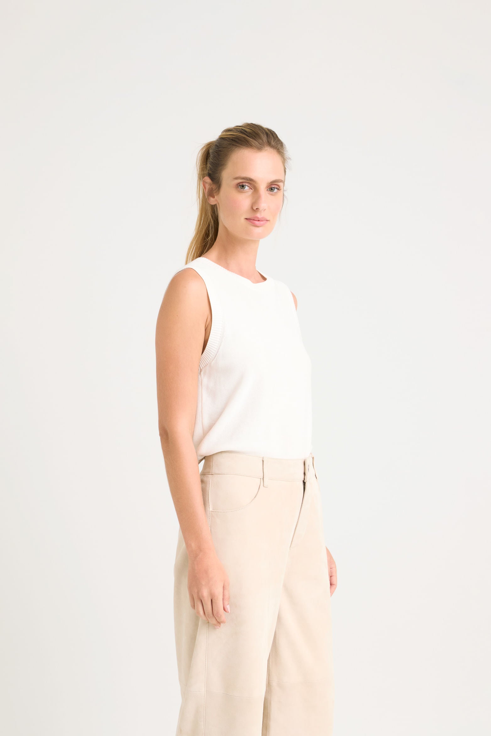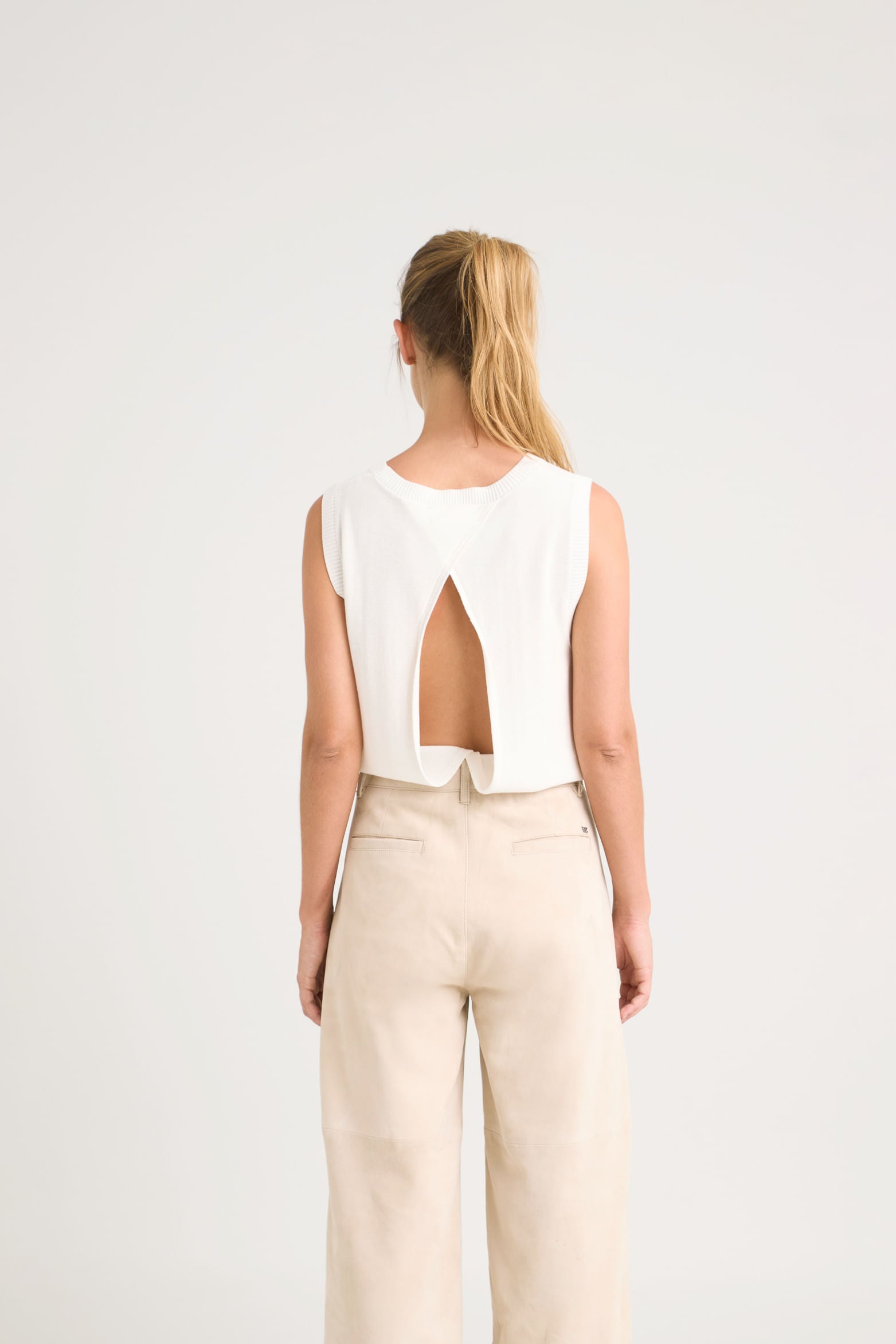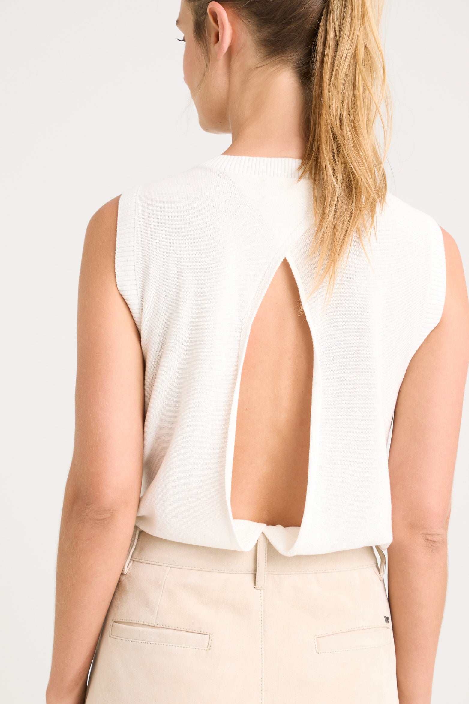 Radiant in its simplicity, this blouse captures the essence of contemporary elegance. Its warmth and innovative design blend perfectly to offer an authentic garment. The lightweight, rectilinear knit is paired with a relaxed silhouette, providing impeccable balance. The delicate ribs at the neckline, cuffs, and hem, along with the cross-back detail, enhance its design. Perfect to pair with straight leather pants or your favorite jeans, this blouse is the ideal complement for any occasion.