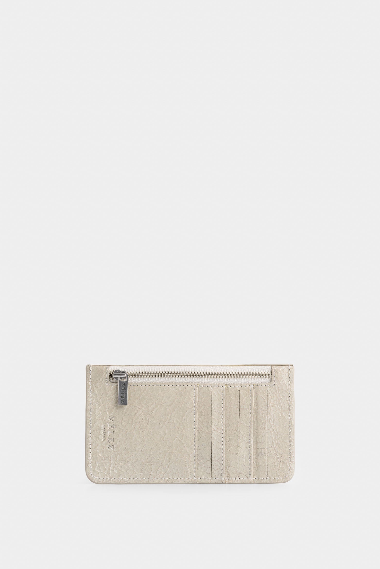 Redefining everyday luxury, this document holder is perfect for travel or keeping your essentials organized. Its manually treated leather highlights craftsmanship and texture innovation. Available in red with smooth leather, plum with a cracked finish, or cream with a metallic finish. Featuring card slots, a zippered coin pocket, and RFID protection, it complements your personality while adding a distinctive touch to your outfits.