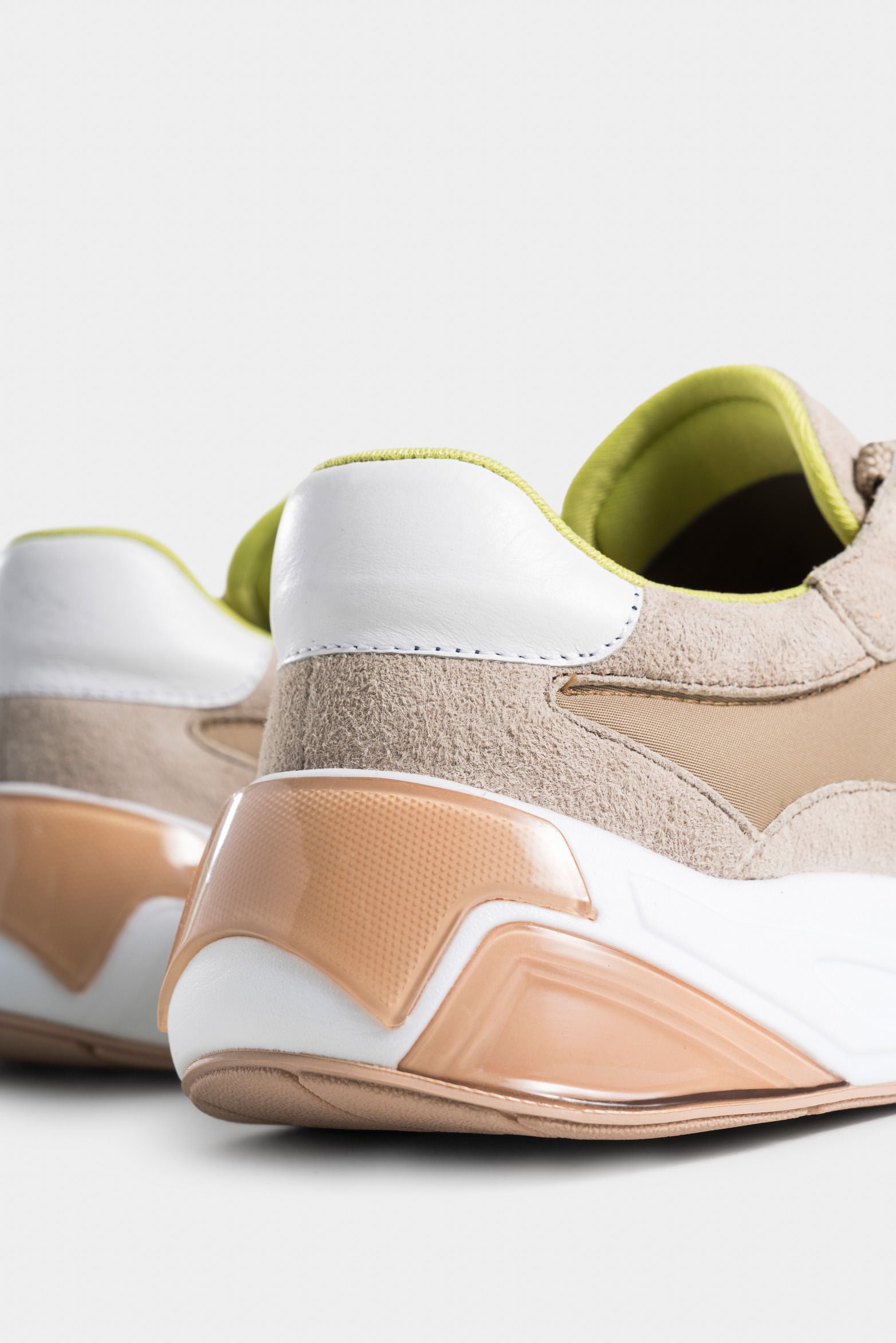 Bold colors, overlapping shapes, and a mix of materials give rise to a fun and spontaneous piece, which, thanks to its dynamism, allows you to create avant-garde athletic looks or casual urban outfits, injecting a fresh vibe into your everyday life. Crafted from napped suede with canvas parts, an EVA sole with TPU inserts that give it an aerodynamic aesthetic characteristic of this silhouette, anatomical insole for maximum comfort, and lining made from sustainable materials. Sophistication meets the urban universe, proving that practicality, creativity, and comfort are the undeniable features of our artisan luxury pieces.