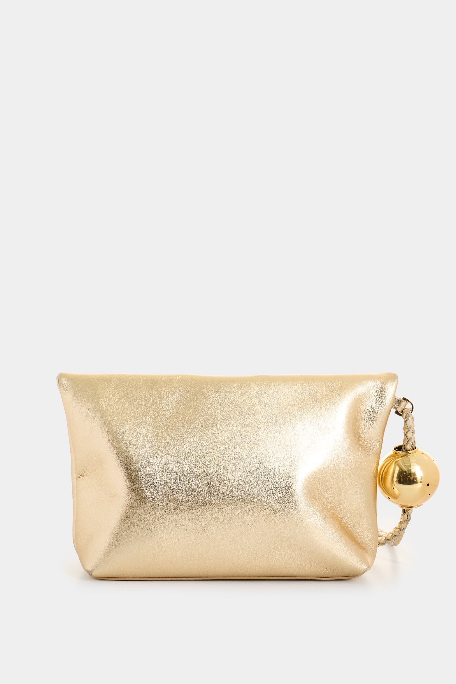 A design that captures the symbolism of quality and craftsmanship. This envelope-style bowling bag combines neutral tones that provide versatility with a sophisticated silhouette inspired by retro styles. Its hand-woven leather handle and decorative hardware elevate its aesthetic, while the inner pocket and magnetic closure add functionality. High-end craftsmanship and cultural heritage transform the everyday into sustainable, authentic luxury.