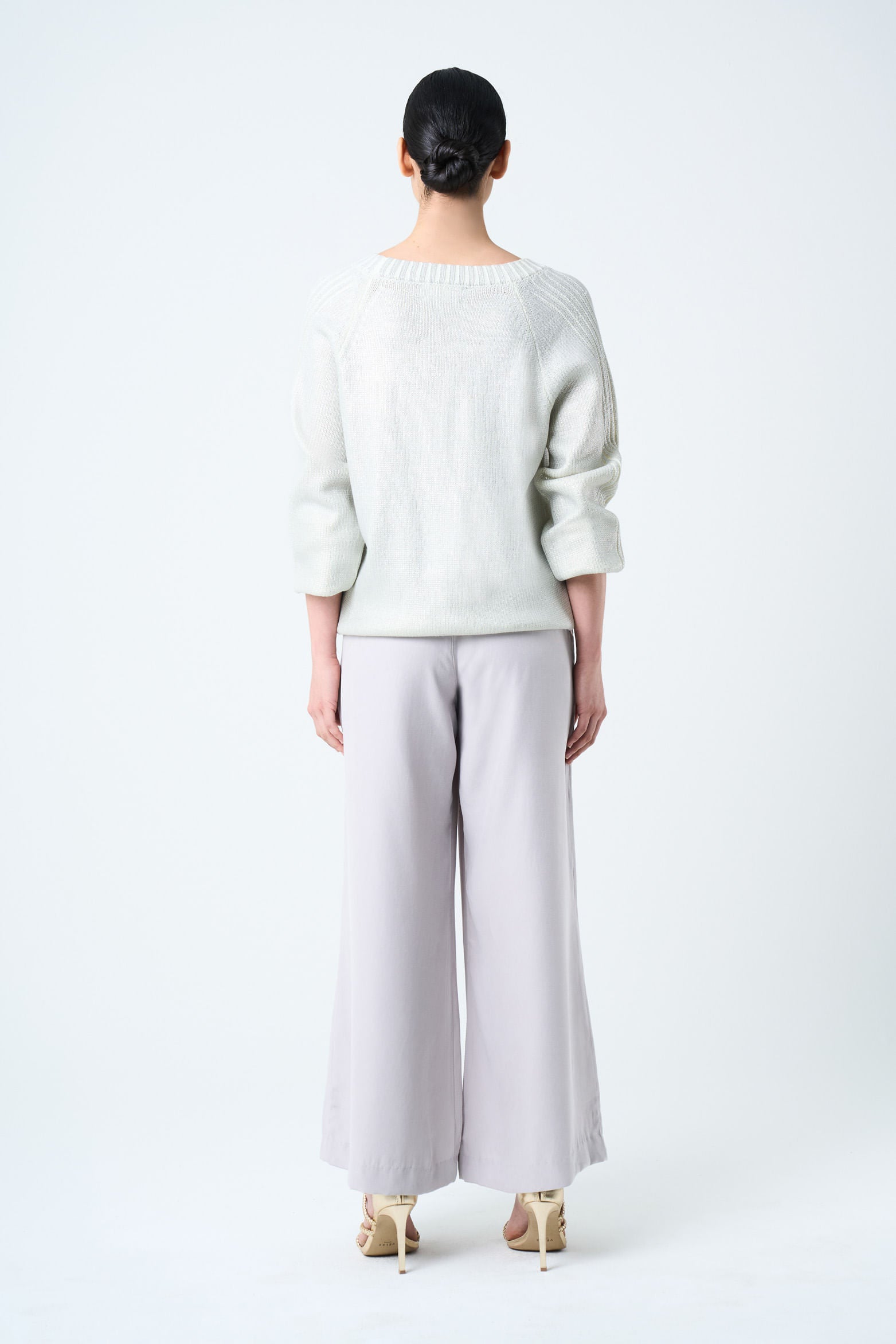 Our palazzo pants represent the Vélez essence in a sophisticated design, blending traditional craftsmanship with trends of elegance and minimalism. Its relaxed fit provides superior comfort, highlighted by the pleated waistband that adds volume. The boot cut adds a touch of dynamism and style, while the welt pockets at the hips provide elegance. With its high waist and floor-length cut, these pants combine simplicity and sophistication into a piece perfect for any women's wardrobe. Perfect for pairing with platform sandals, revealing the personality and elegance of luxury artisanal leather pieces.