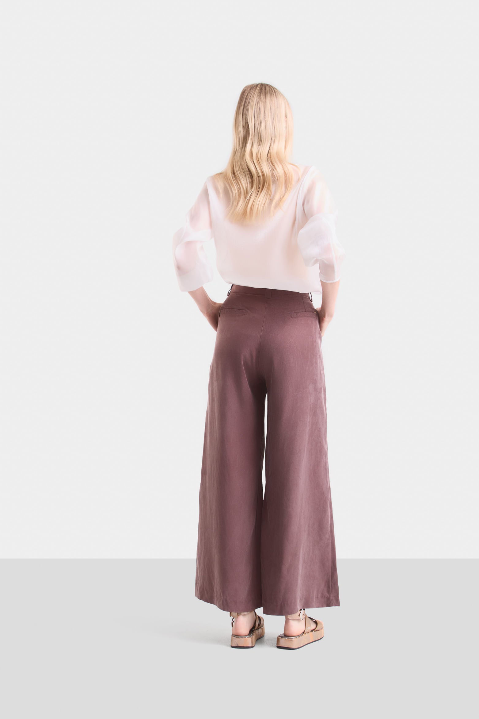 Our palazzo pants represent the Vélez essence in a sophisticated design, blending traditional craftsmanship with trends of elegance and minimalism. Its relaxed fit provides superior comfort, highlighted by the pleated waistband that adds volume. The boot cut adds a touch of dynamism and style, while the welt pockets at the hips provide elegance. With its high waist and floor-length cut, these pants combine simplicity and sophistication into a piece perfect for any women's wardrobe. Perfect for pairing with platform sandals, revealing the personality and elegance of luxury artisanal leather pieces.