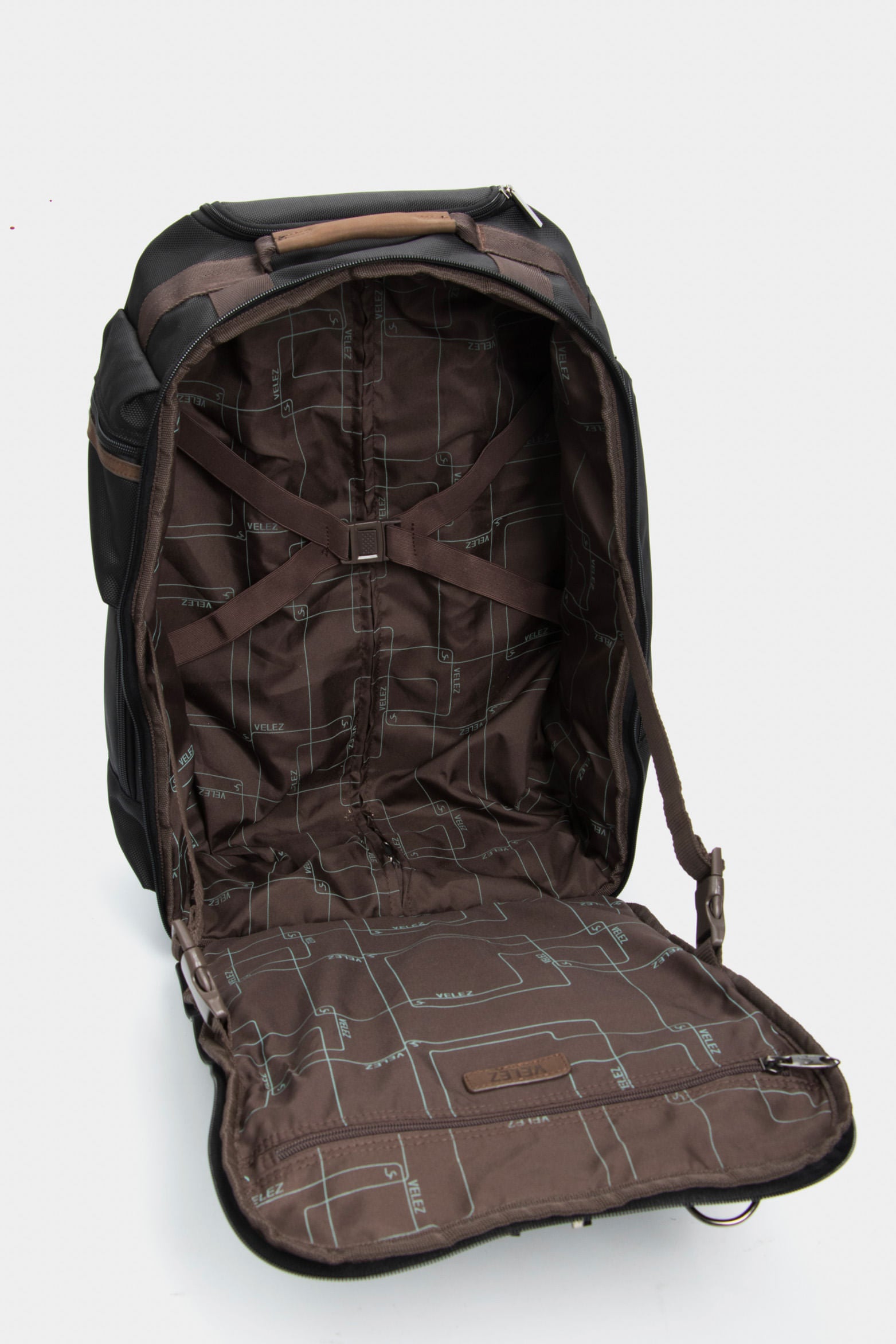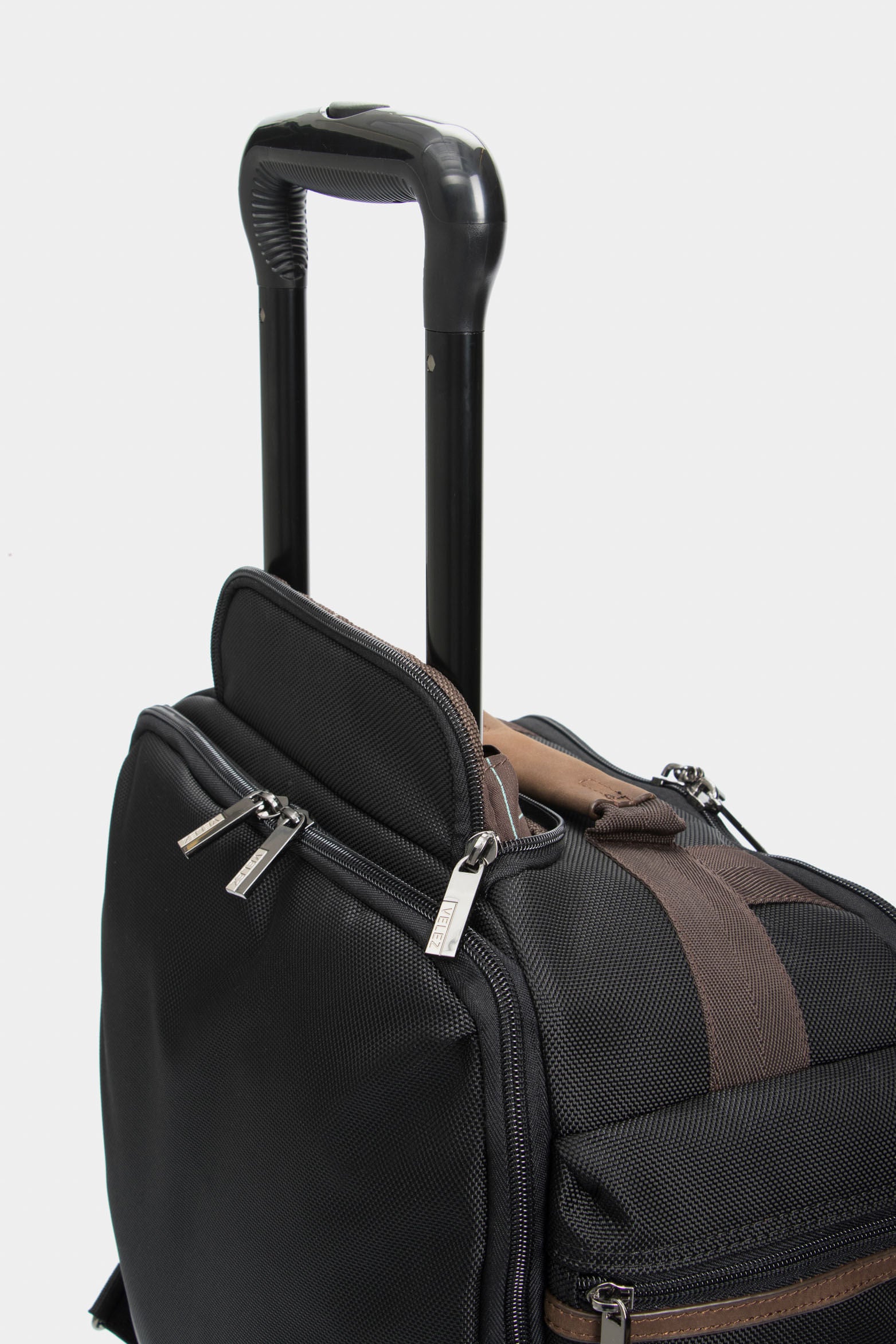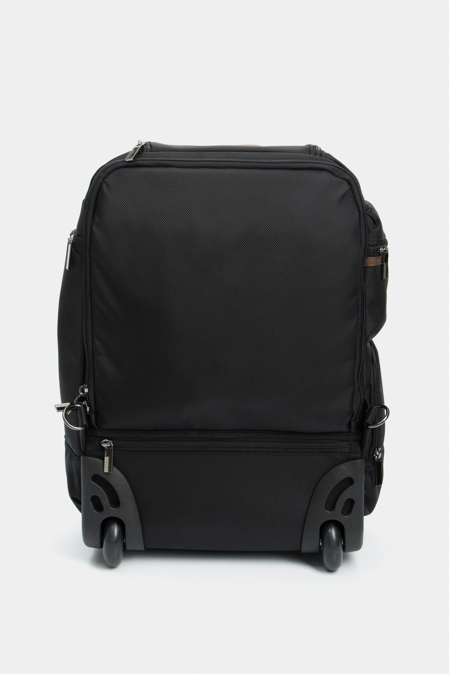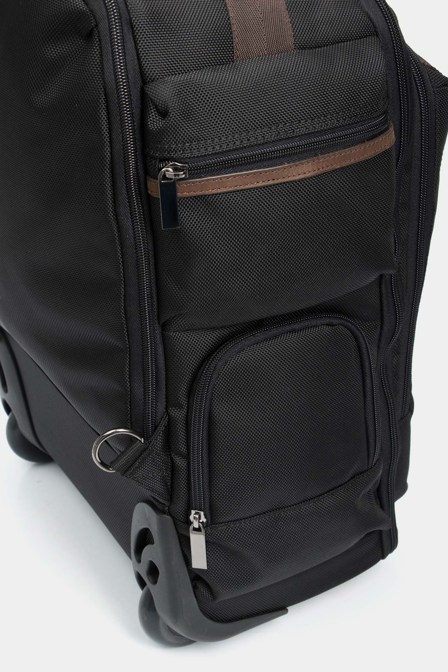 Travel in style and comfort! This backpack is made of high-performance nylon with leather pieces localized to give it a classic and always fresh style. With large external pockets and internal compartments tailored to separate your personal items and maximize space. It features 2 double 360° wheels, made of rubber and in a "trolley" style for easy and dynamic mobility.