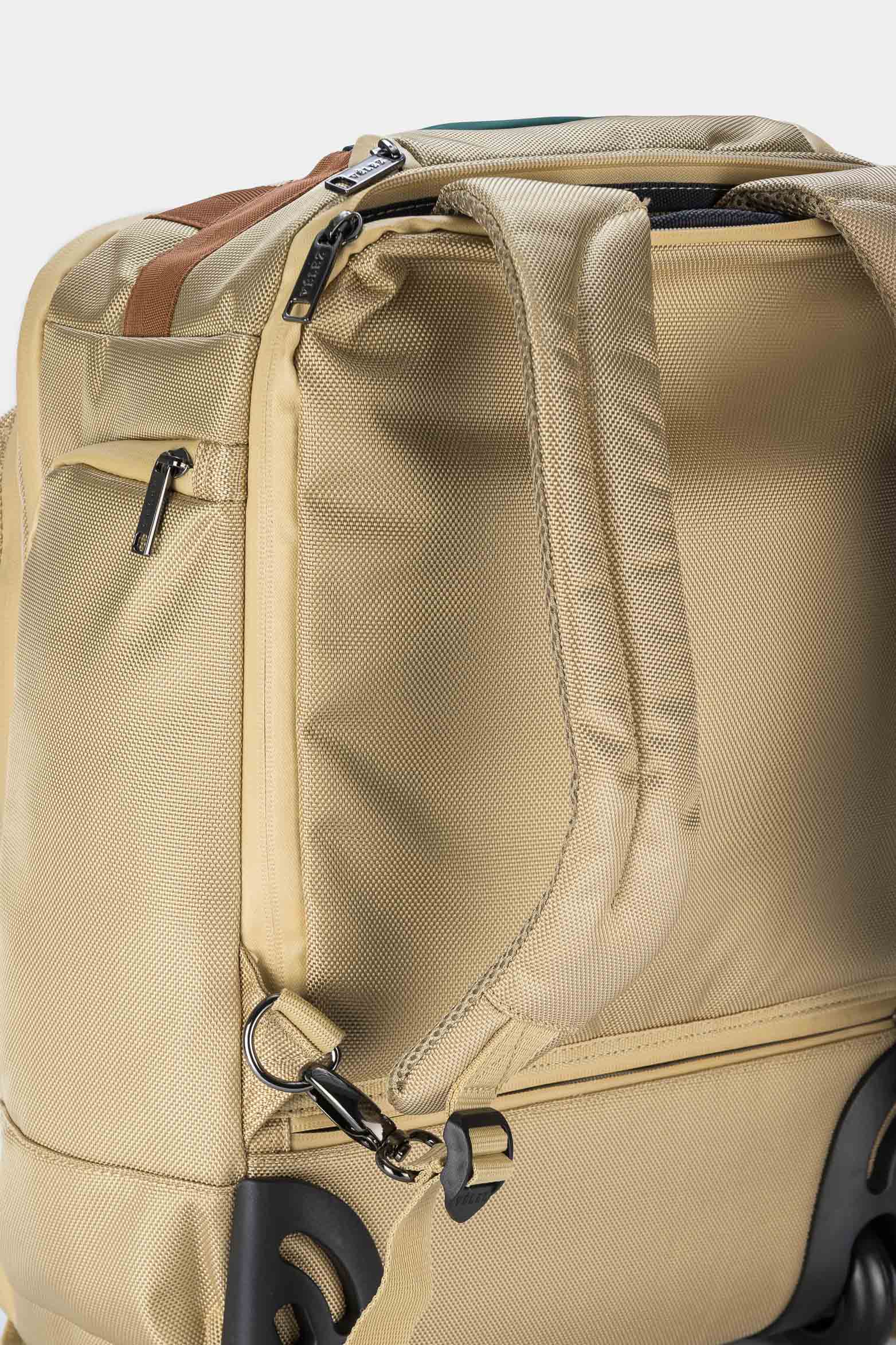 Travel in style and comfort! This backpack is made of high-performance nylon with leather pieces localized to give it a classic and always fresh style. With large external pockets and internal compartments tailored to separate your personal items and maximize space. It features 2 double 360° wheels, made of rubber and in a "trolley" style for easy and dynamic mobility.