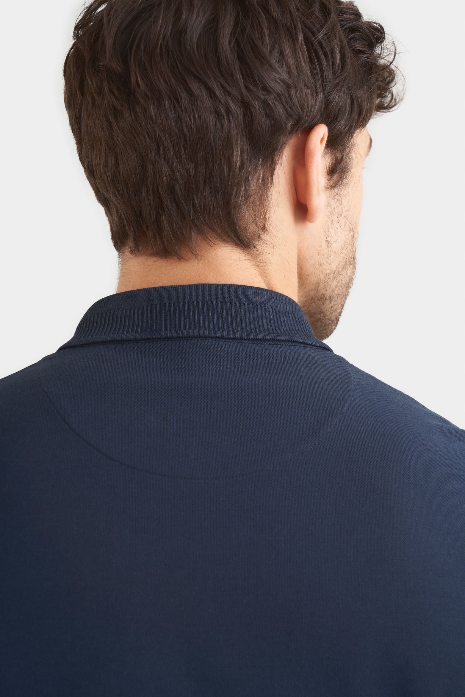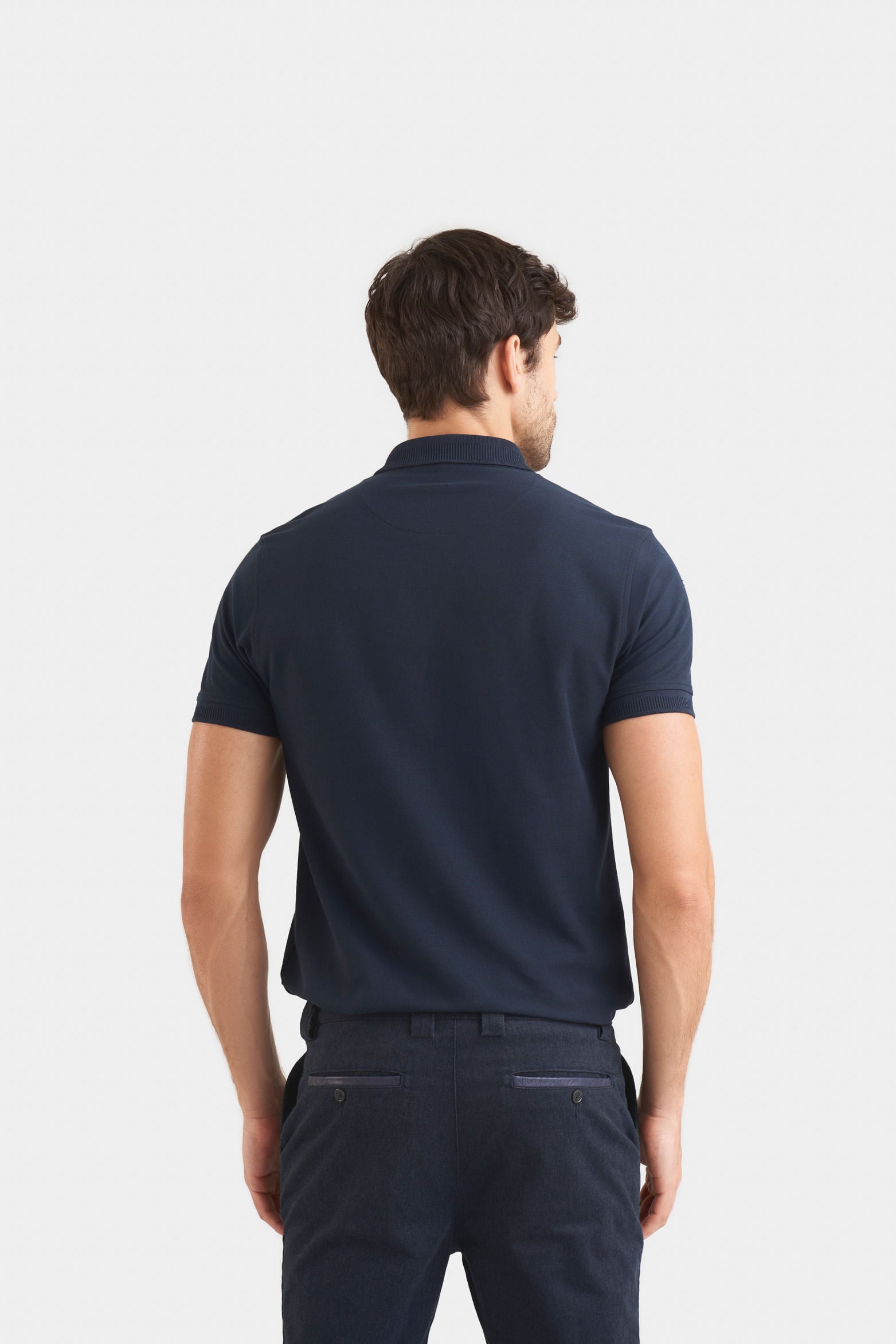 A staple can become unique if its pieces are crafted with luxury detail. This sport-influenced semi-fitted silhouette is crafted in pima cotton with a pique diamond finish. This finish lends a soft and cool quality to the garment, with improved drape and flexibility. Tonal stitching and luxurious detailing at the collar and Jacquard sleeves make this piece a sophisticated essential.