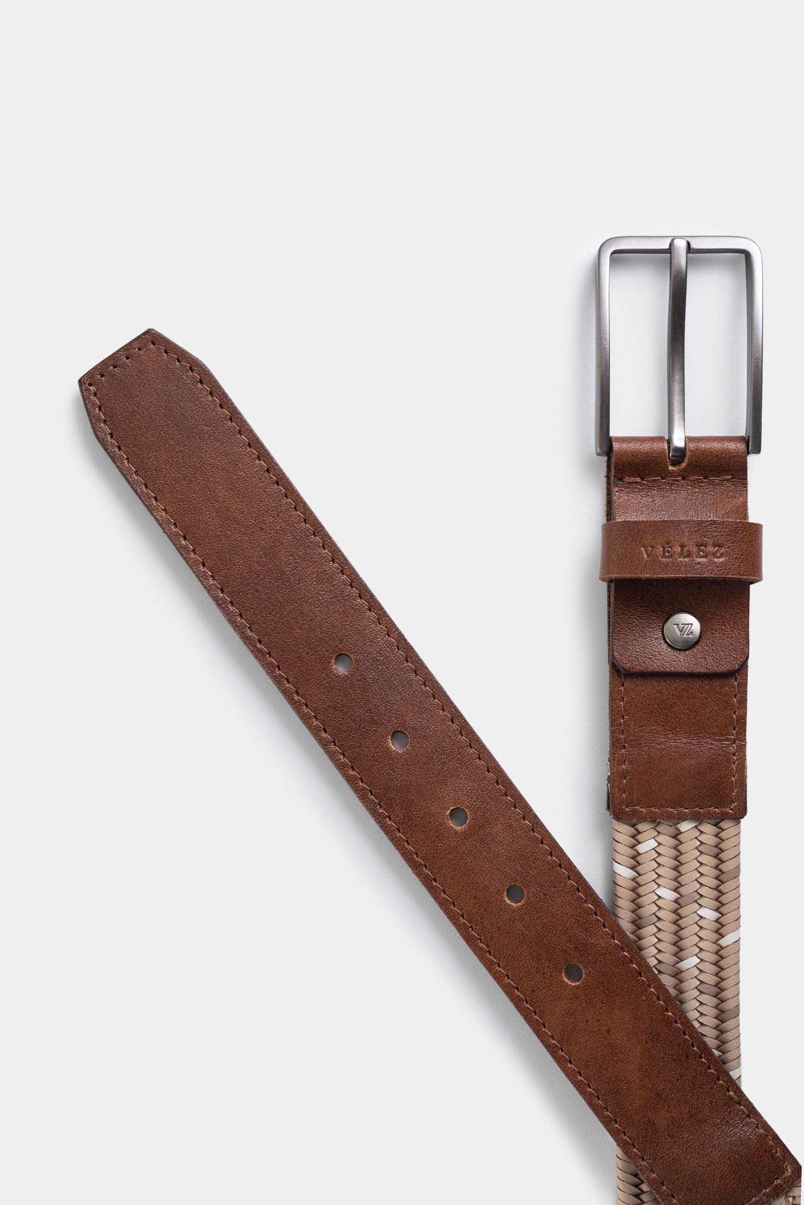 Woven with mastery, this belt intertwines artisanal tradition with contemporary innovation through its braided design and smooth leather details. Featuring a bicolor palette, each element reflects a commitment to luxury craftsmanship. Ideal for elevating summer outfits or casual office styles, its authenticity adds a unique touch to everyday wear.