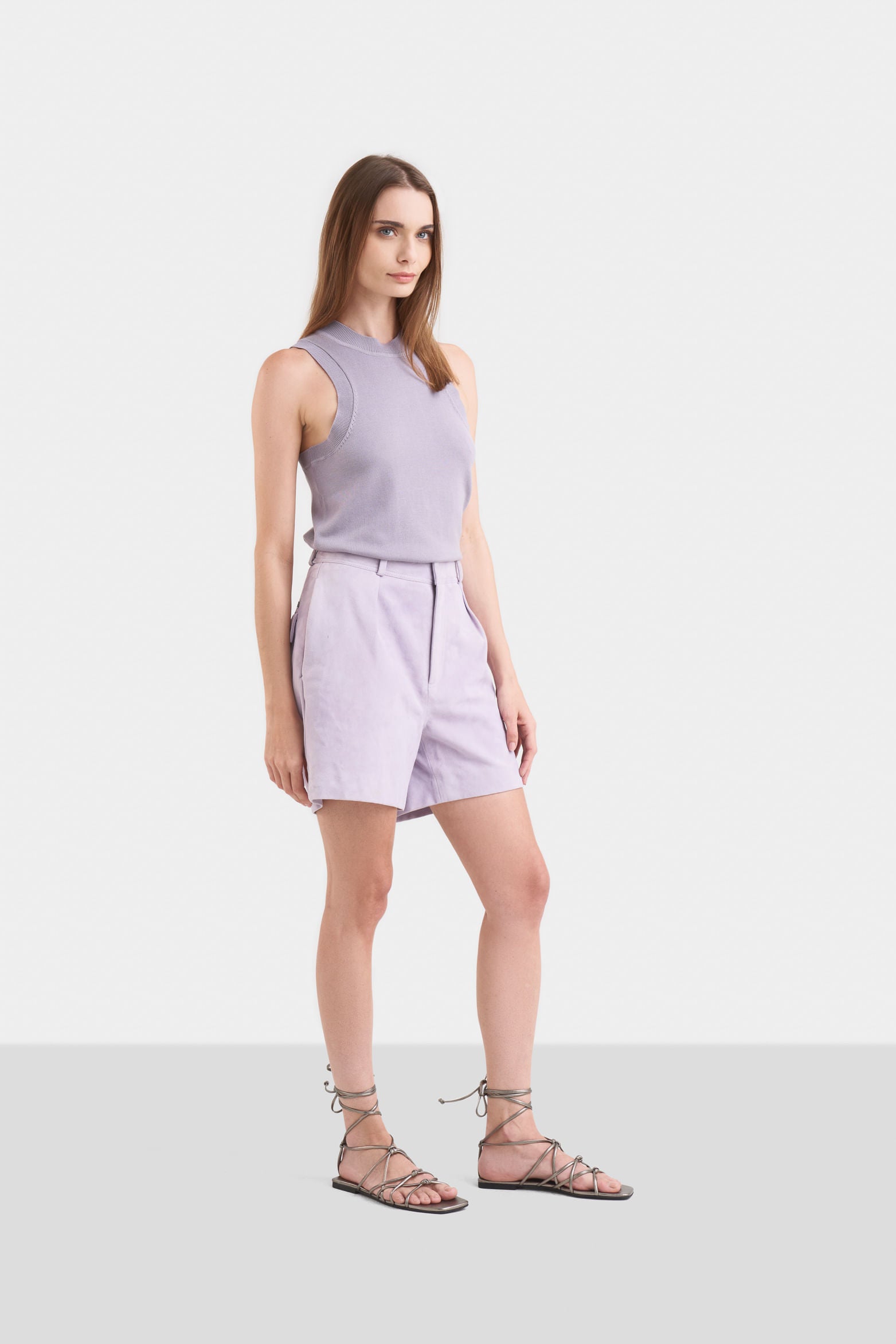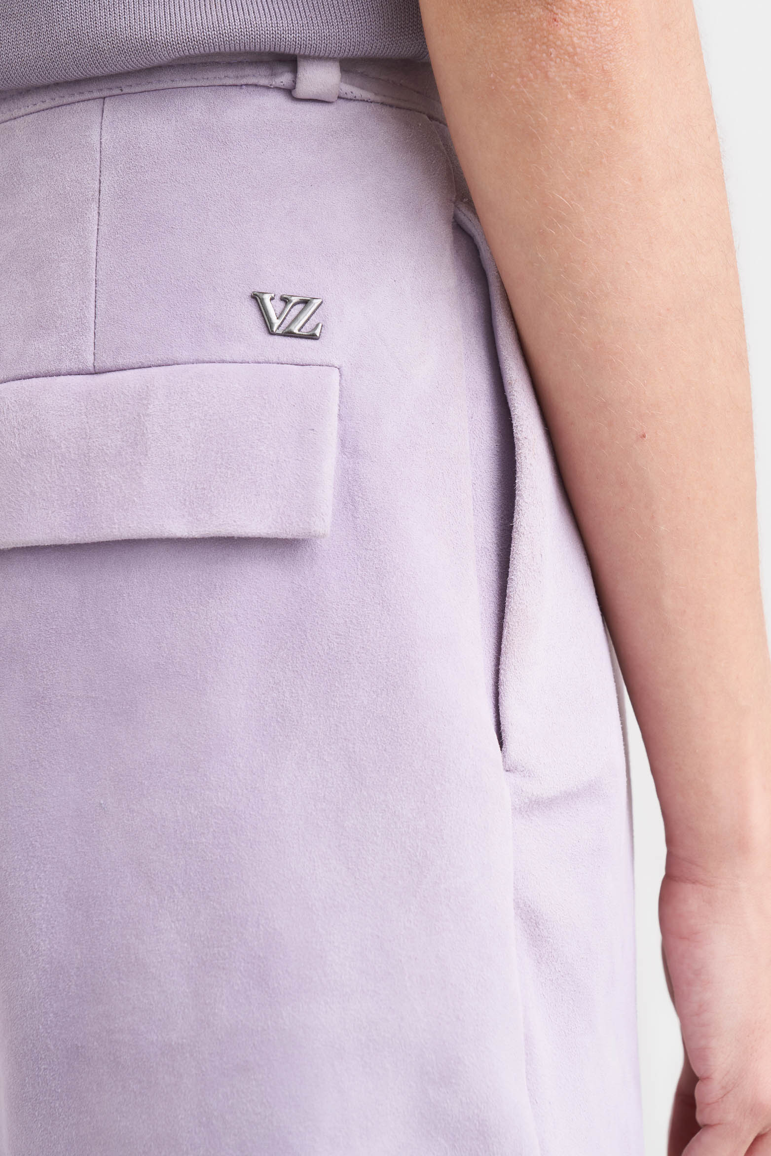 A garment that reinvents itself to adapt to different occasions, our shorts are made from soft and lightweight goat suede. With a high waist and pleats at the front, their silhouette carries a formal charm that can work for sophisticated and elegant occasions. The tape-trimmed back pockets add a touch of tailoring that, together with the piece, elevates your outfits with delicate and innovative charm. You can wear them with silk blouses for a refined style, or also with a slightly oversized poplin shirt and ankle boots for a look with a touch of rebellion.
