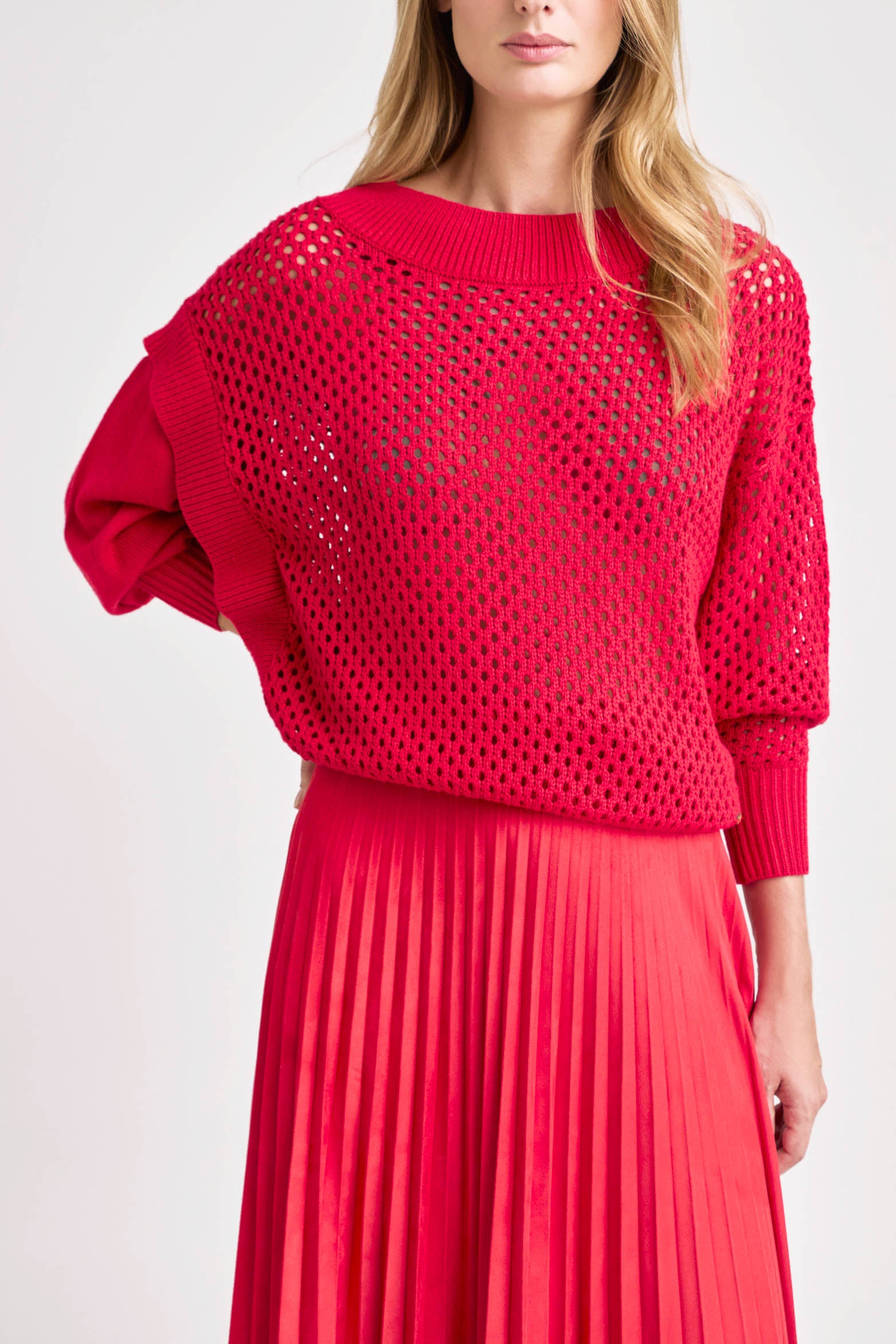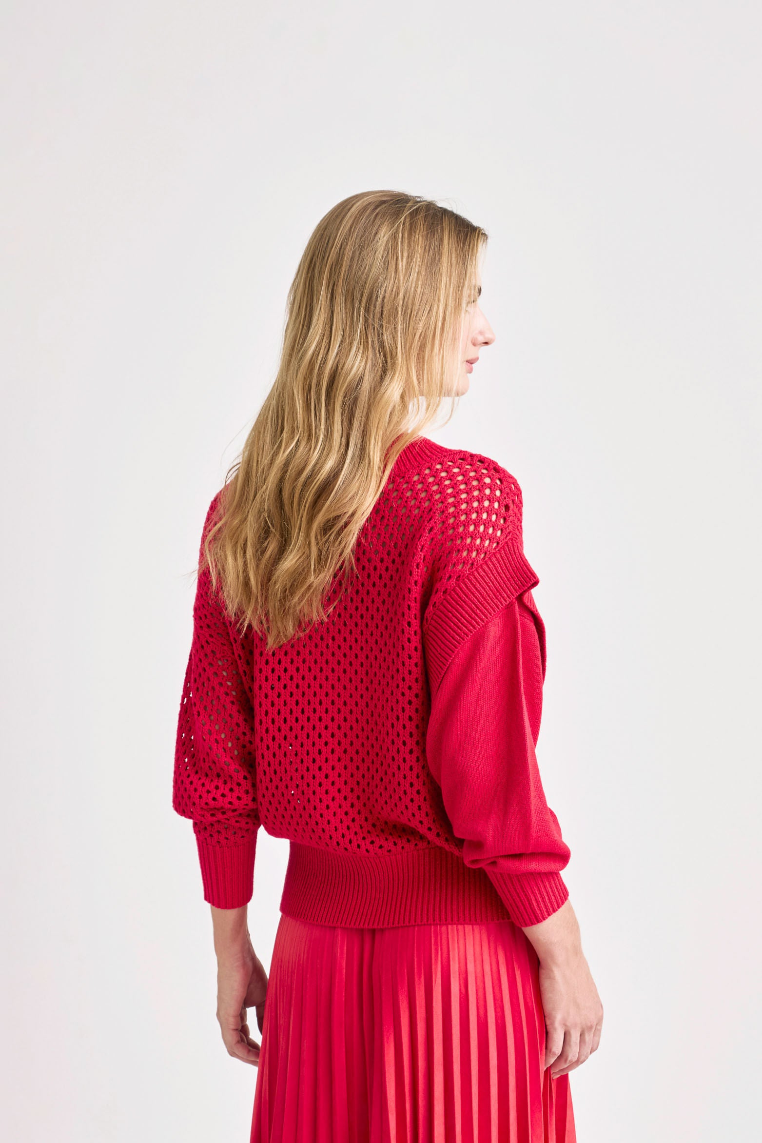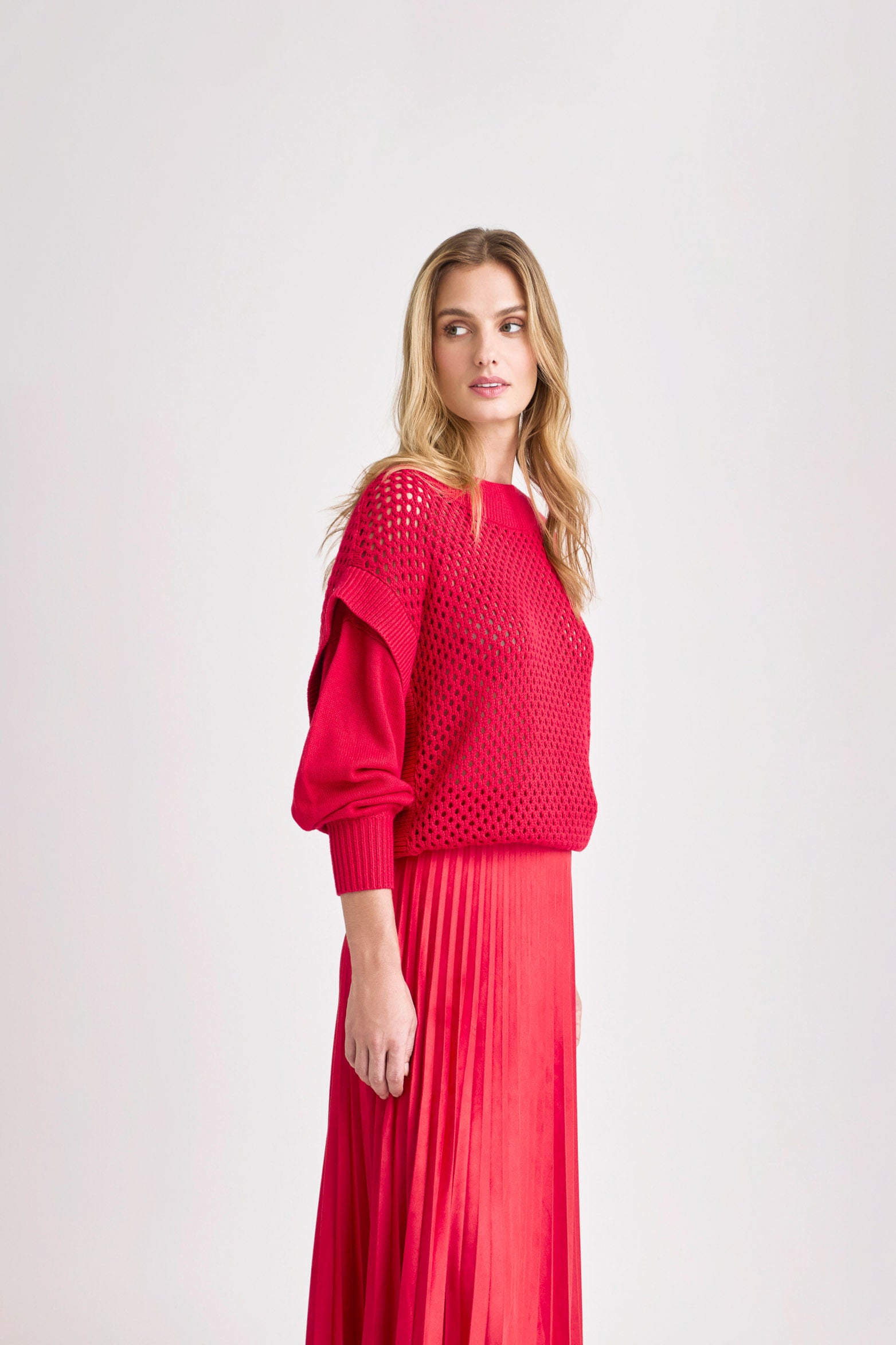 Our long-sleeve sweater is crafted from rectilinear knit fabric with asymmetrical sleeves. A trendy design that falls at high-hip length with a scoop neckline. This women's sweater is perfect for adding character to your cold-weather looks.