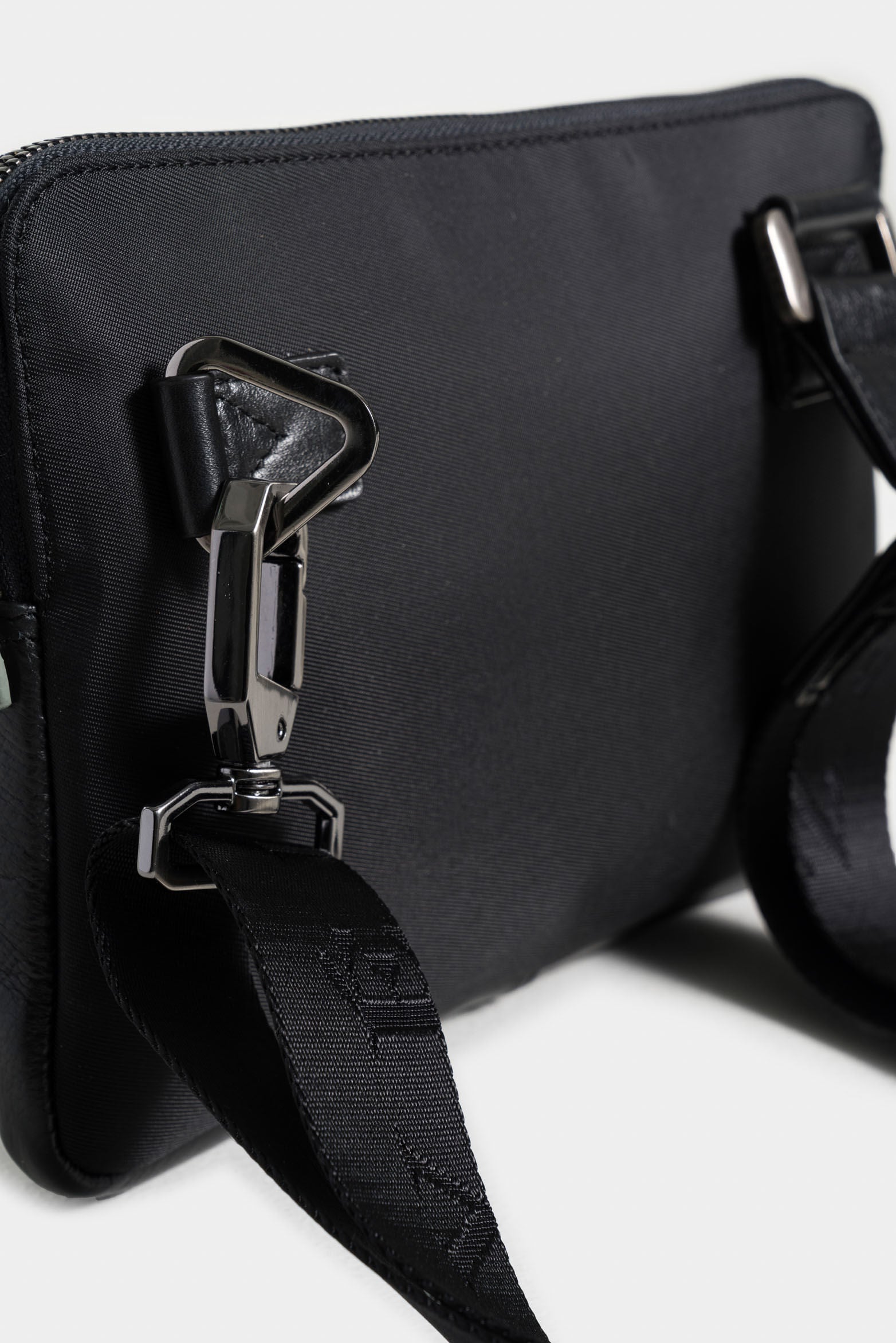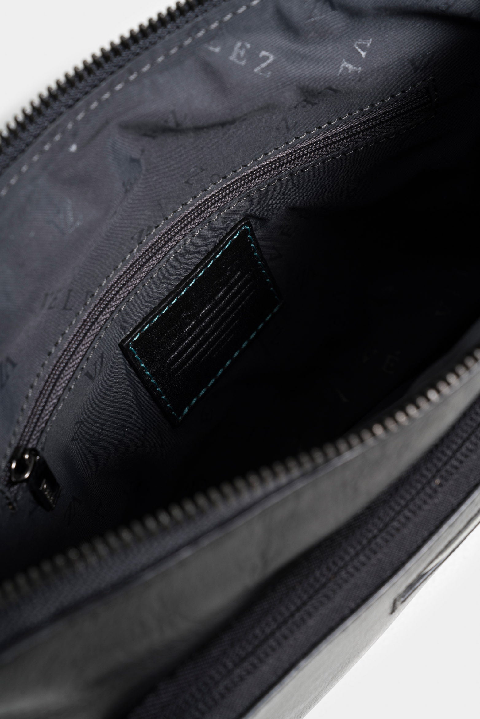 The elegance and multifunctionality meld in our semi-glossy Coprin leather crossbody bag with an espalier finish, highlighting the DNA of our brand. The sophisticated design features an exterior zip pocket that keeps your items secure and a comfortable metallic lettering on the recycled nylon, adding an urban edge. The interior compartment offers ample space for documents and essentials, while the adjustable shoulder strap provides a secure and personalized fit. It's a fashionable choice that adds a modern accent to your daily attire.