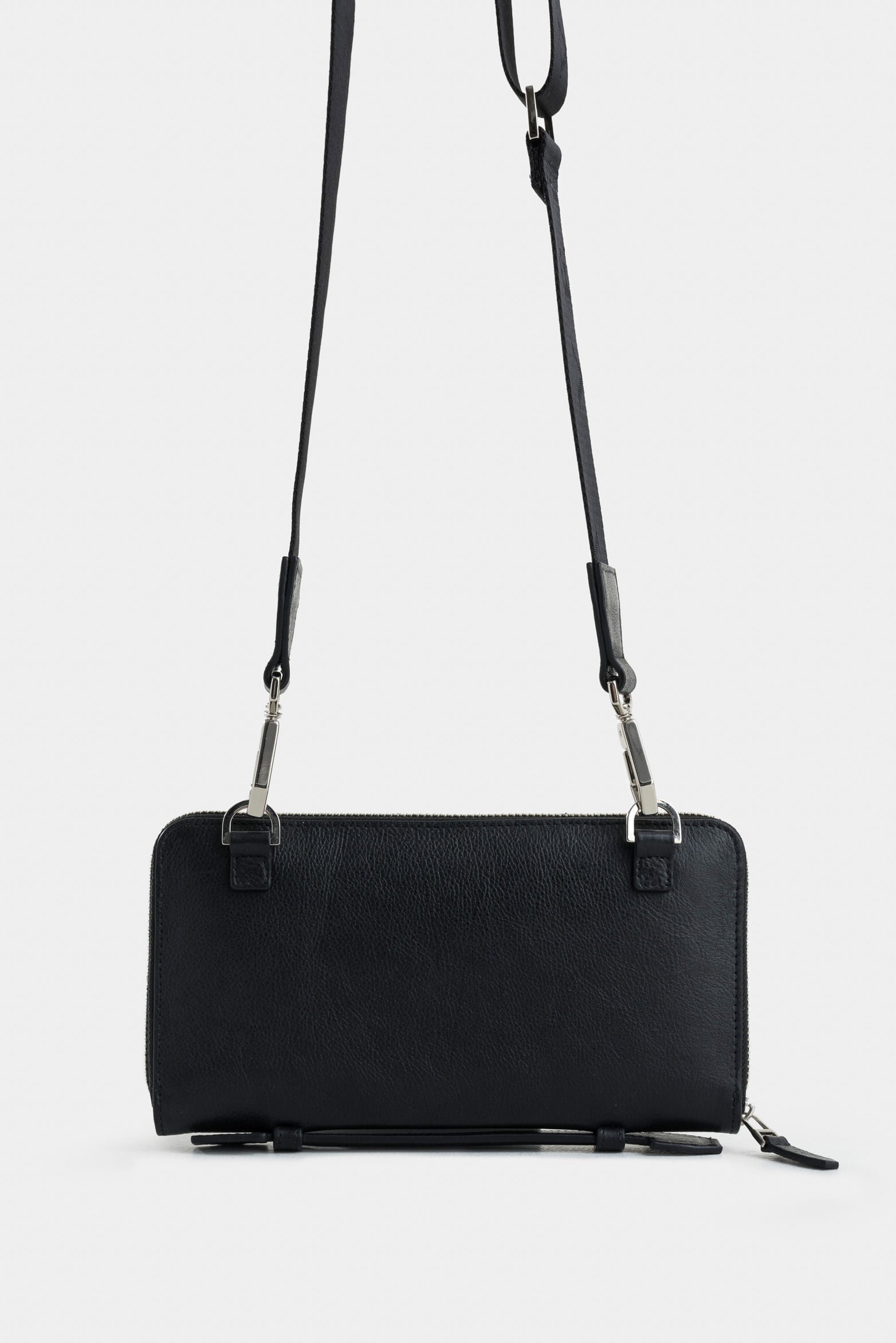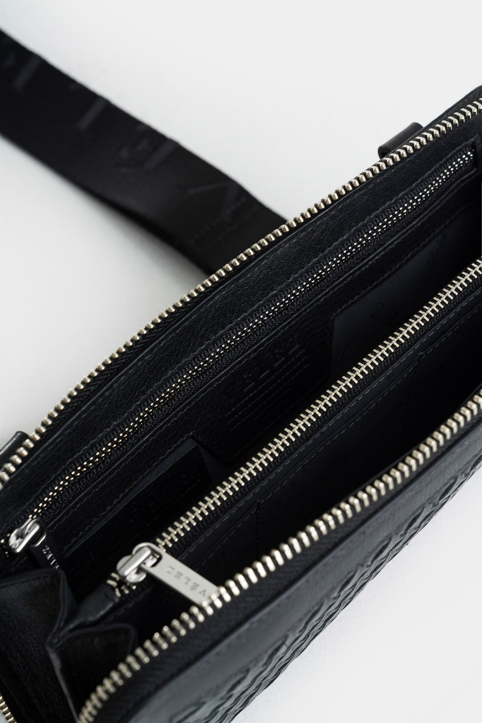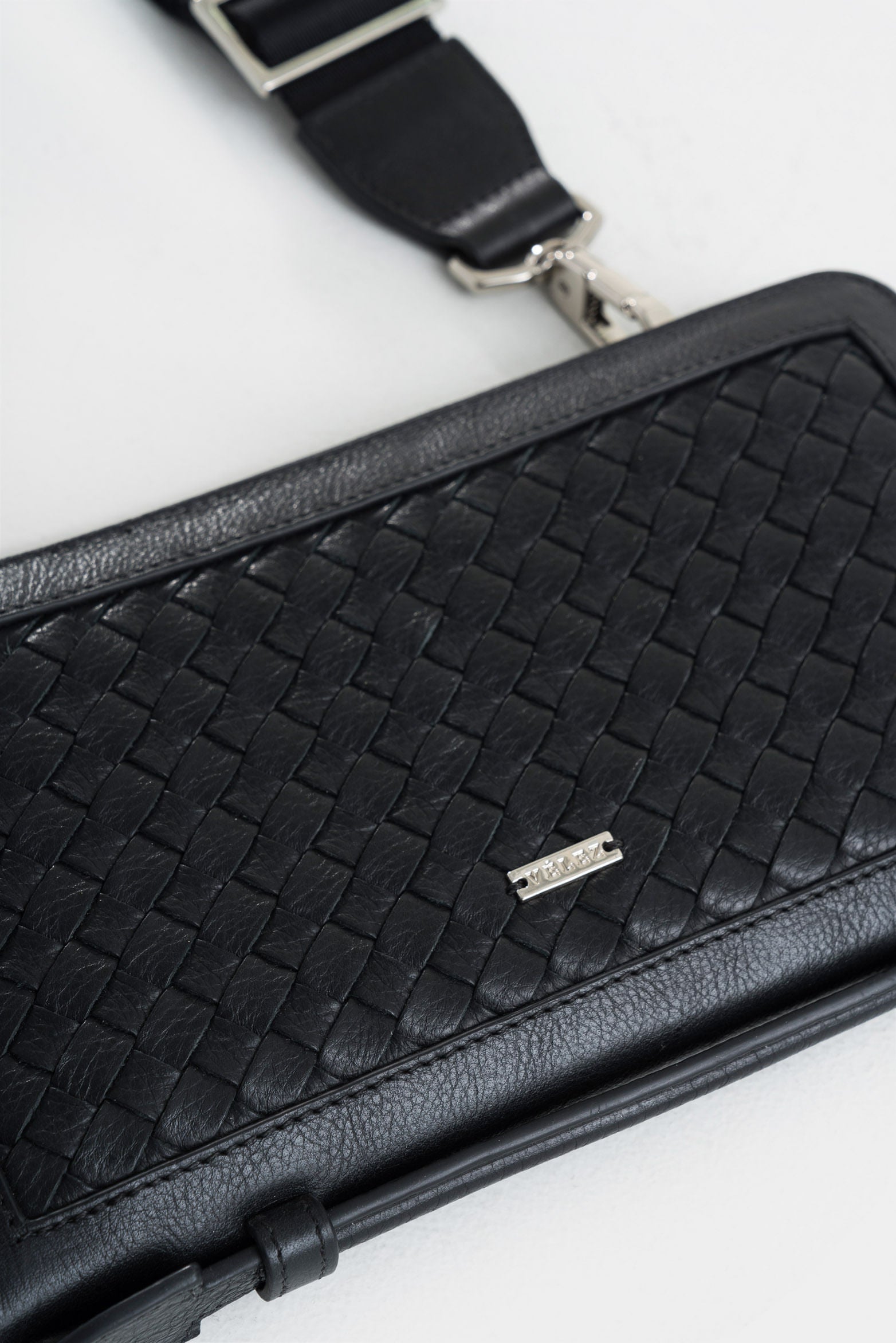 Our flat sling bag in smooth leather is an essential accessory for the modern man, offering practicality and avant-garde aesthetics. The main compartment has a metallic zipper for added security and includes an internal pocket to safeguard your documents. This small-sized hands-free bag also features leather pulls and a removable nylon shoulder strap, providing comfort and versatility. The spaced finish around the edges gives depth and distinction to this piece, highlighting Vélez's attention to detail and high-quality DNA.