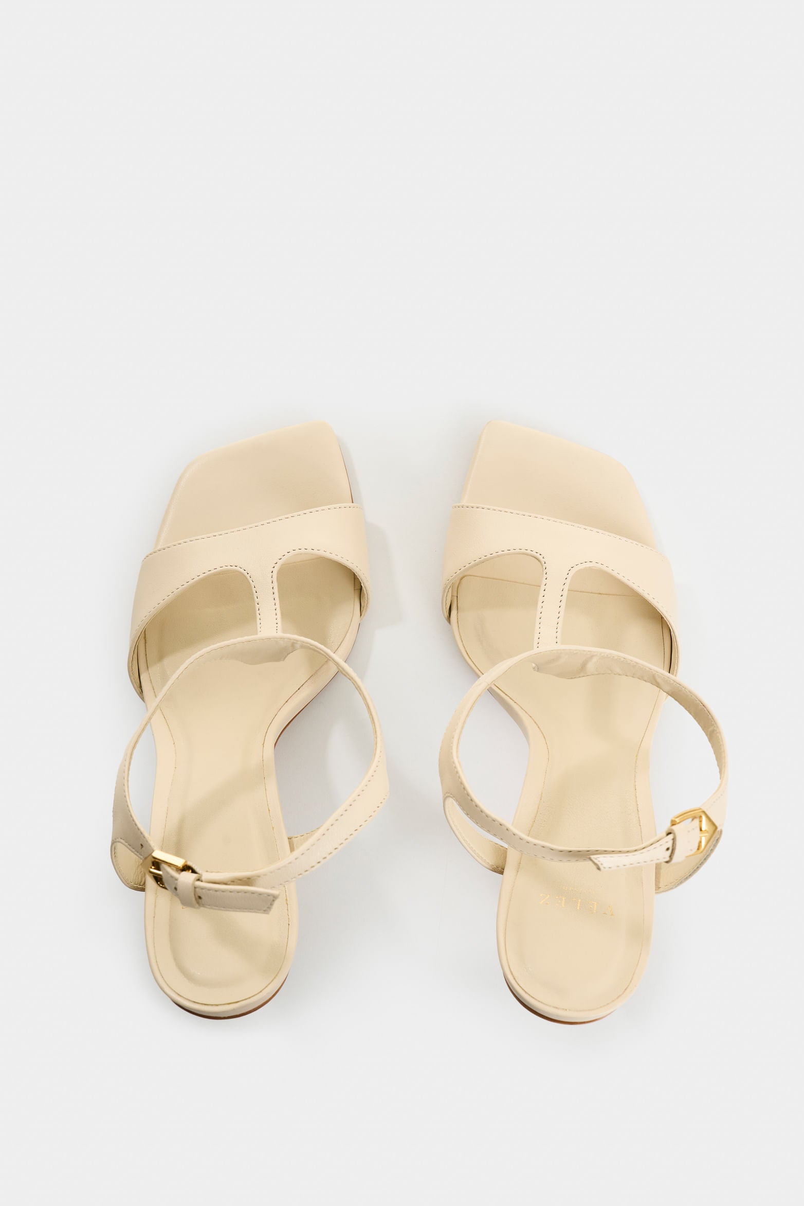 Every detail of these sandals reflects craftsmanship that blends subtlety and character. The T-strap design gracefully elongates the foot, while the squared toe adds a modern touch. A curved heel with a sophisticated shape provides a distinctive edge. A versatile complement that elevates any outfit with elegance and authenticity.