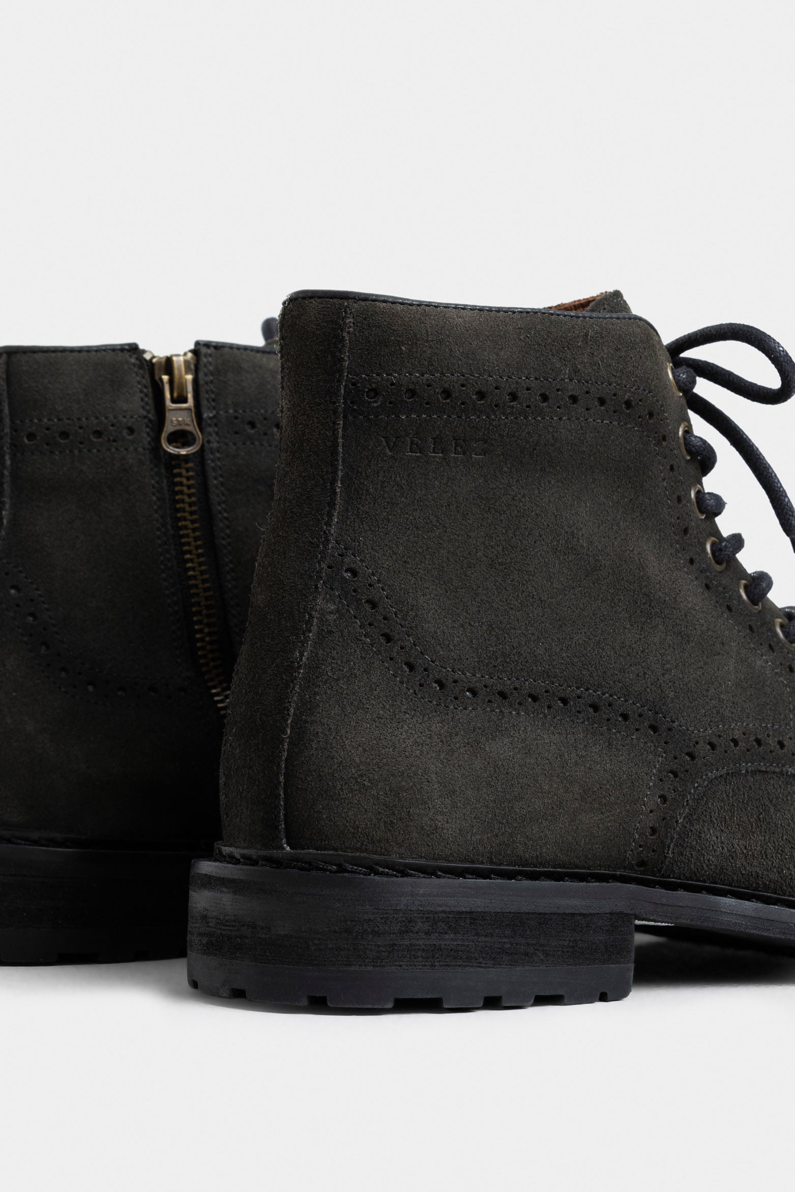 Classic charm meets our boots that blend luxury and sophistication with a casual silhouette that includes chipped details accentuating its seams, adding a bohemian air to the silhouette. Crafted from gamuza leather, their softness and texture stand out to harmonize linen or jeans looks. Featuring spiral stitching design and a luxury insole, these boots offer maximum comfort for daily use, whether for the office or weekend getaways.