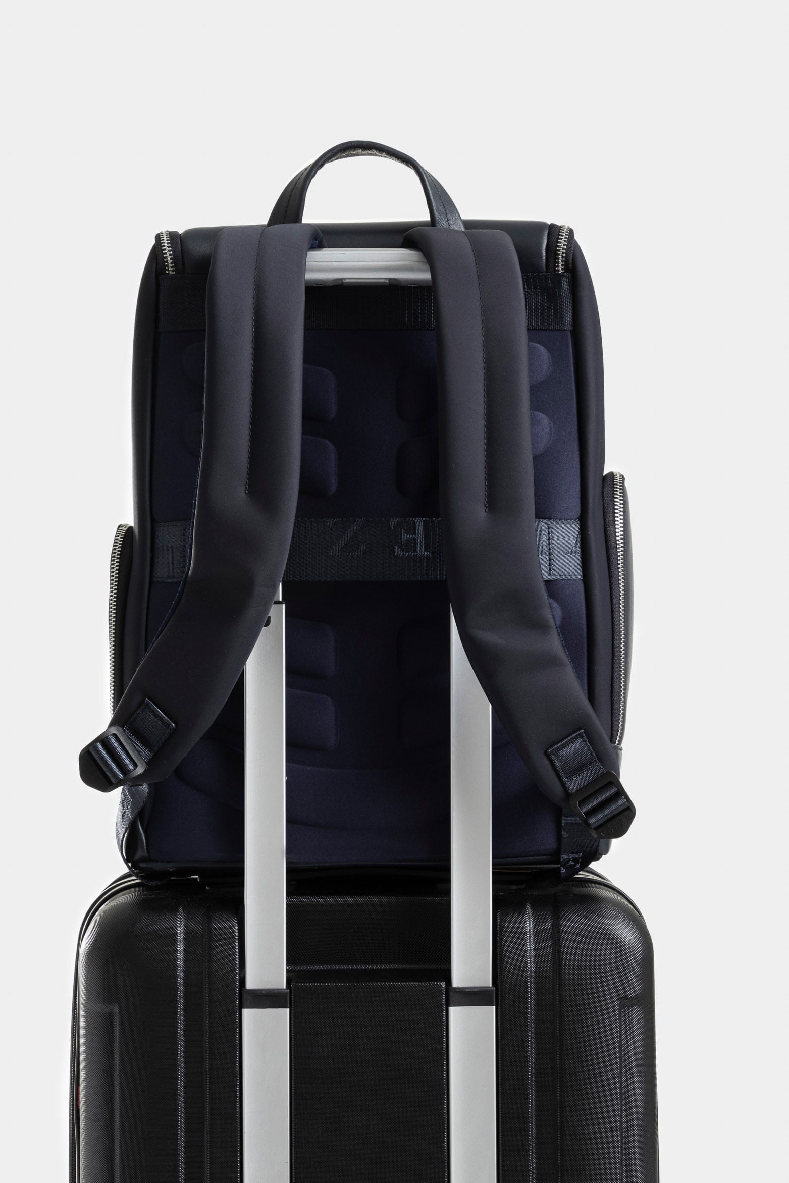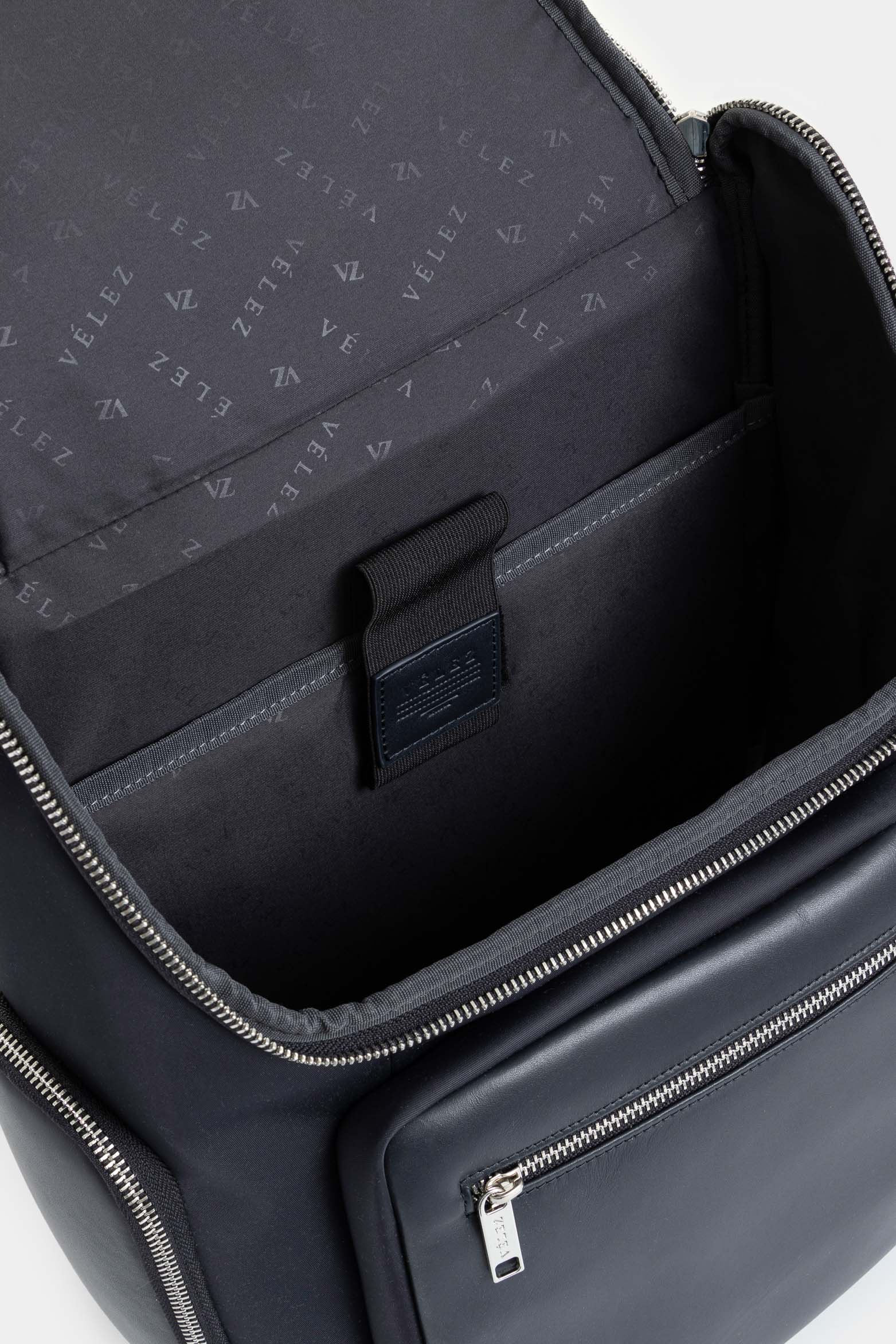 Elegant and practical, our Vélez backpack stands out for its mix of smooth nylon and monochrome leather, embodying creative minimalism and the brand's exclusivity. Designed for daily life, it features multiple compartments, including a laptop space for up to 15 inches and external pockets with metal closures. Its thermoformed back and adjustable shoulder straps ensure comfort, while leather details and polyester lining add a distinctive touch of quality and timeless style.