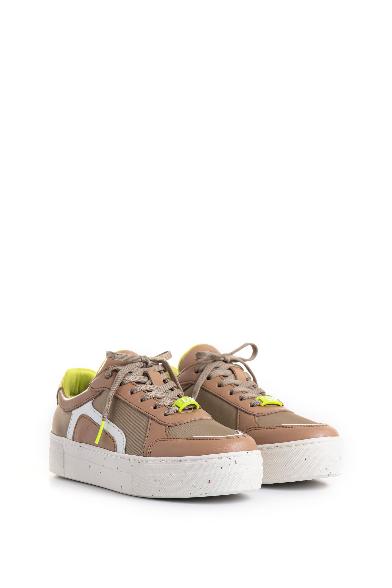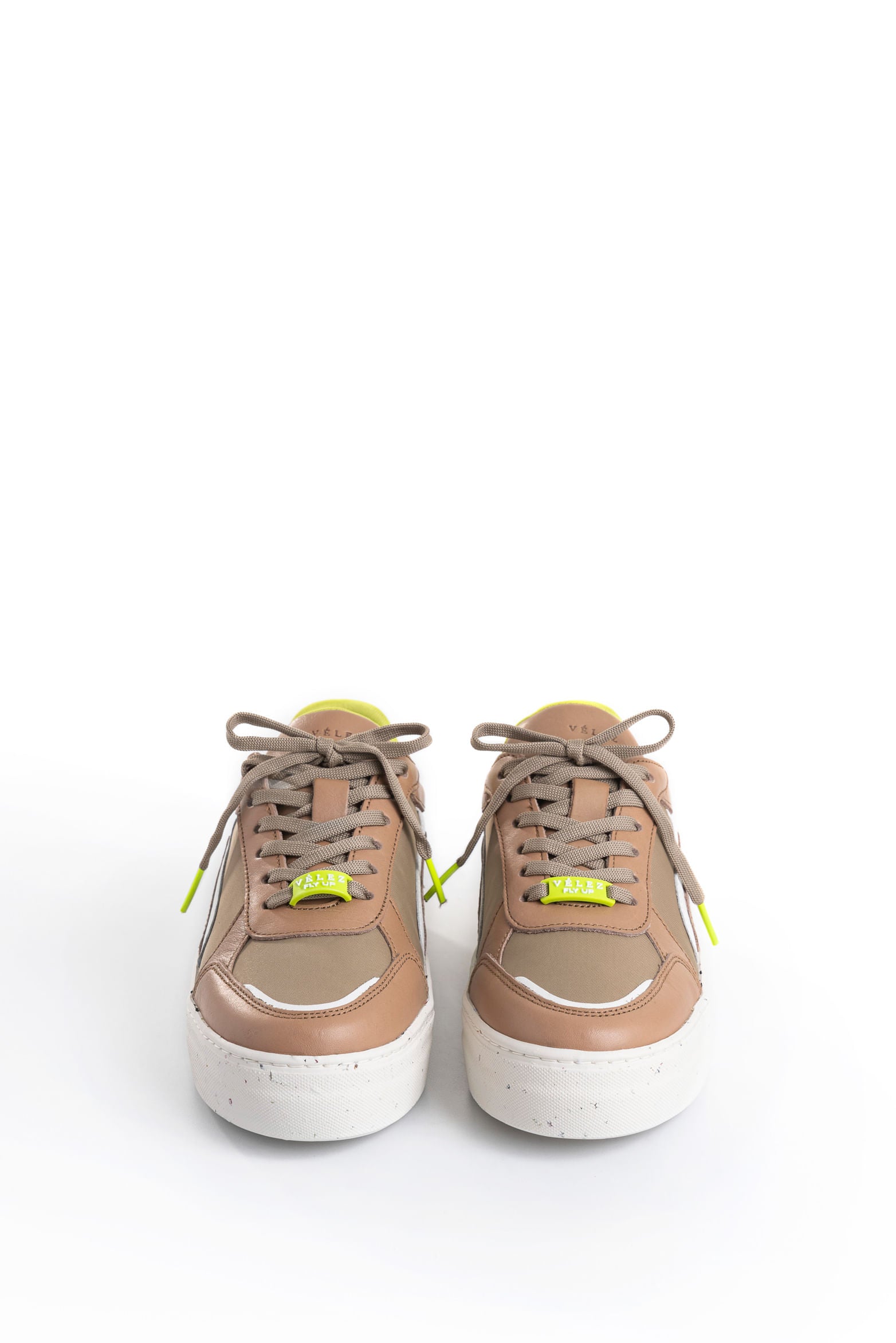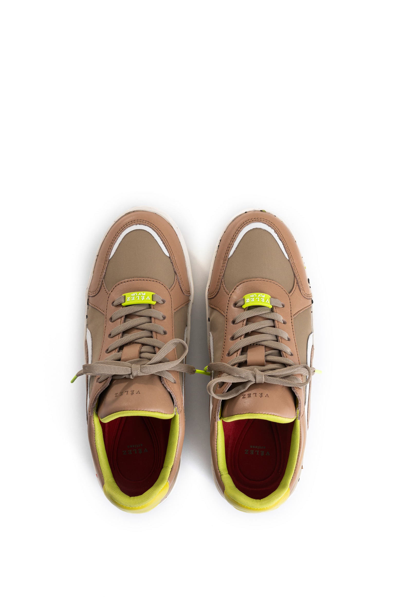 Their urban silhouette with modern color contrasts makes these Flexus sneakers a bold and graphic style statement. Made from a blend of soft leather and canvas, they are updated with reflective synthetic material details that create an energizing shine. Moreover, their box sole, made from sustainable materials, is complemented by a vibrant neon recycled PET inner lining, a design that celebrates Vélez's commitment to environmental impact reduction and responsible material use. Pair them with cargo pants or baggy jeans to elevate your everyday style.