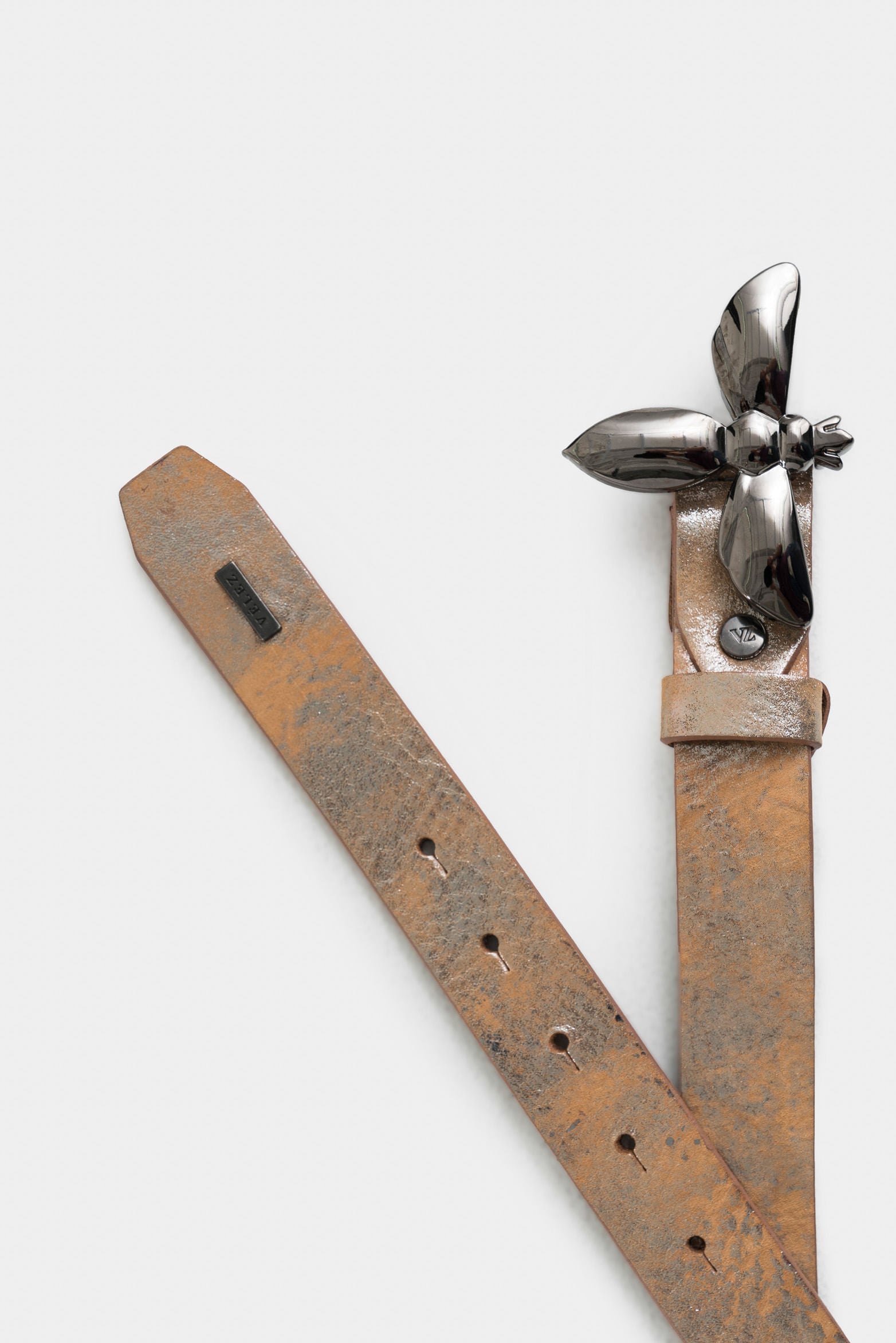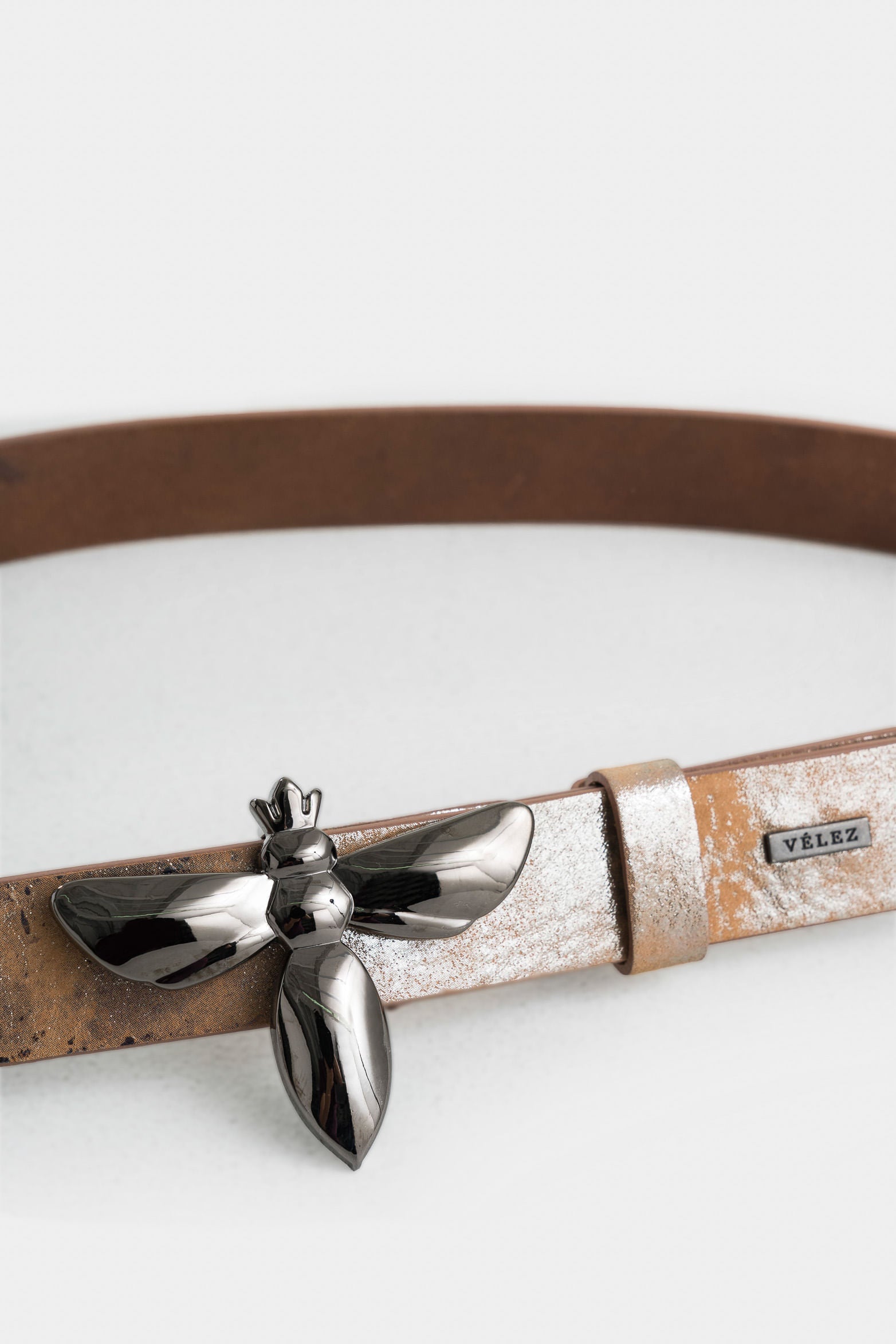 Folia Leather Single-Sided Belt for Women with Bee Silhouette