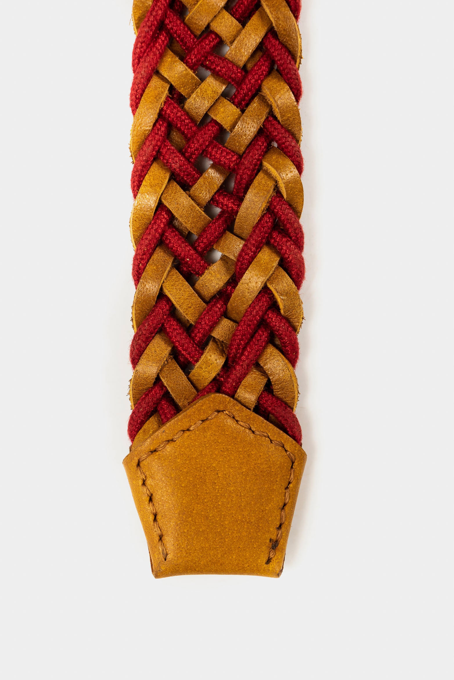 Ideal for everyday wear, this Gam leather belt for men features a braided design with mixed materials and colors, and a brass buckle with a vintage look.