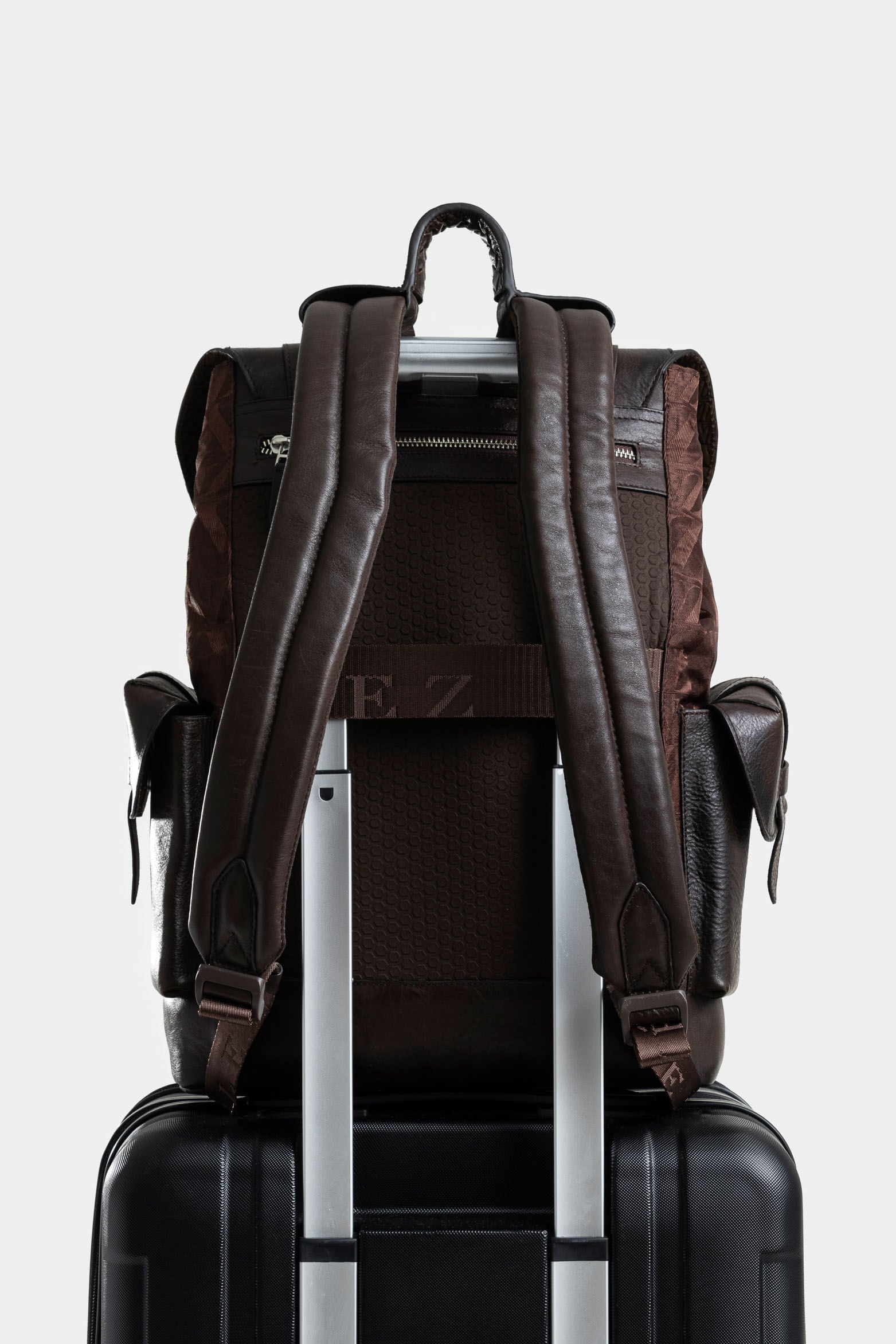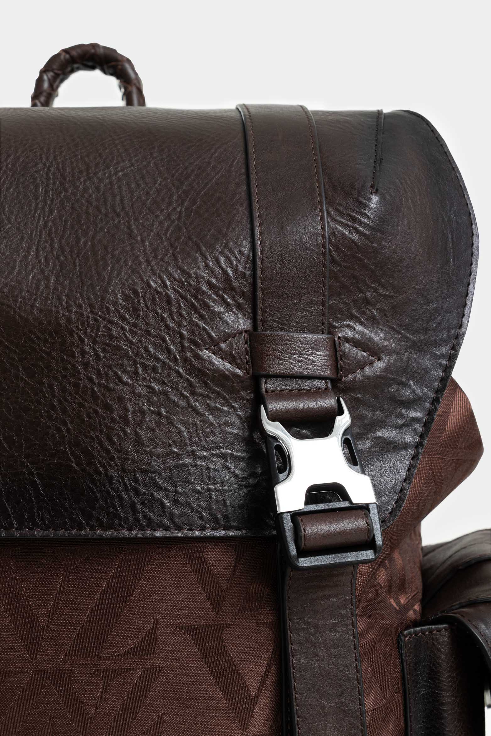 Garda Leather Backpack for Men with Jacquard Monogram in Coffee