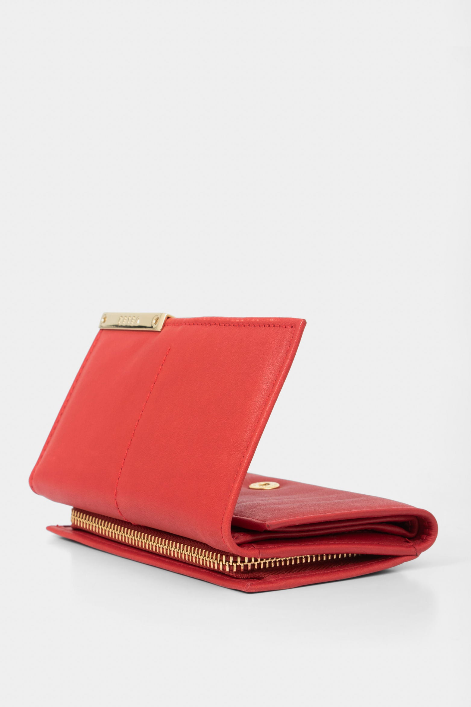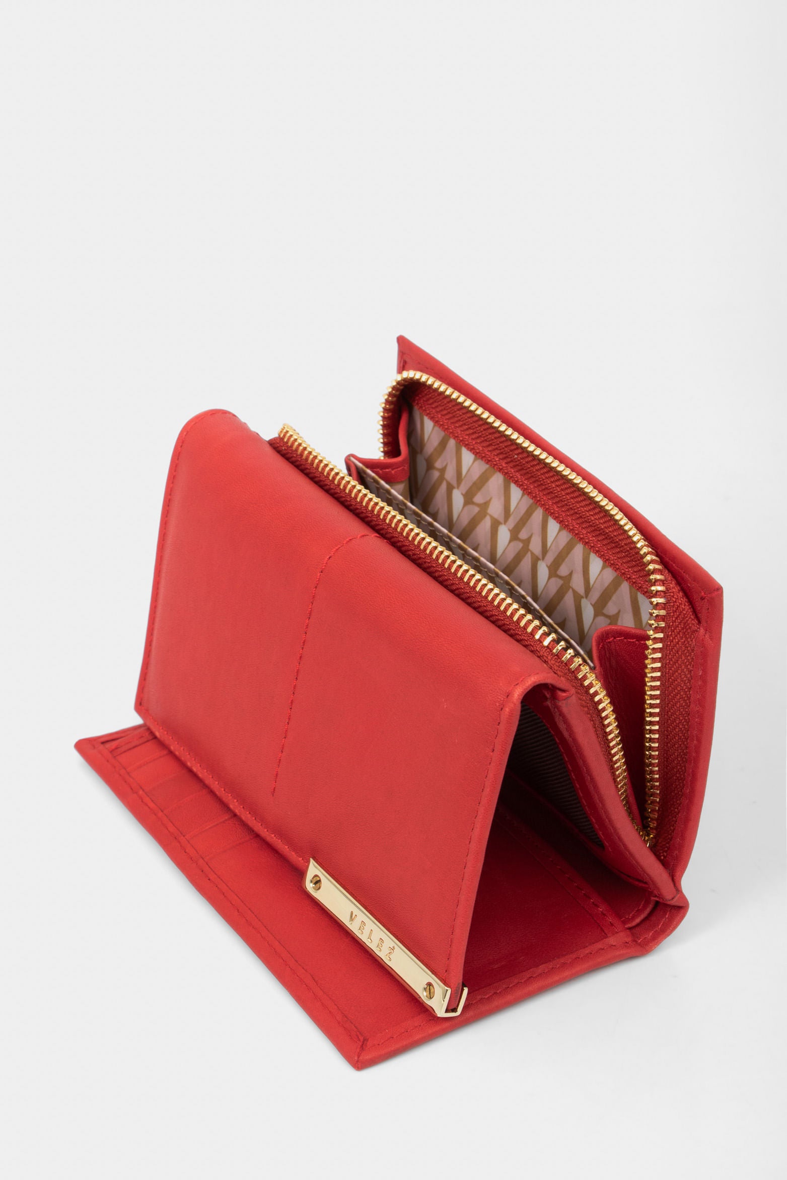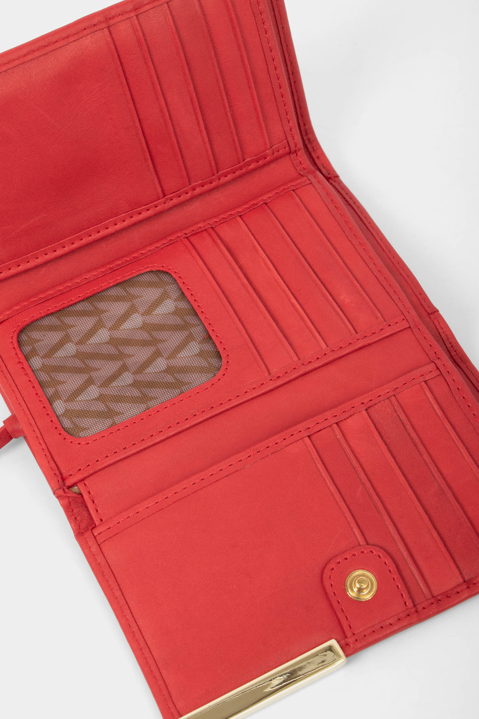 Genuine Leather Wallet in Red with Metallic Appliqué