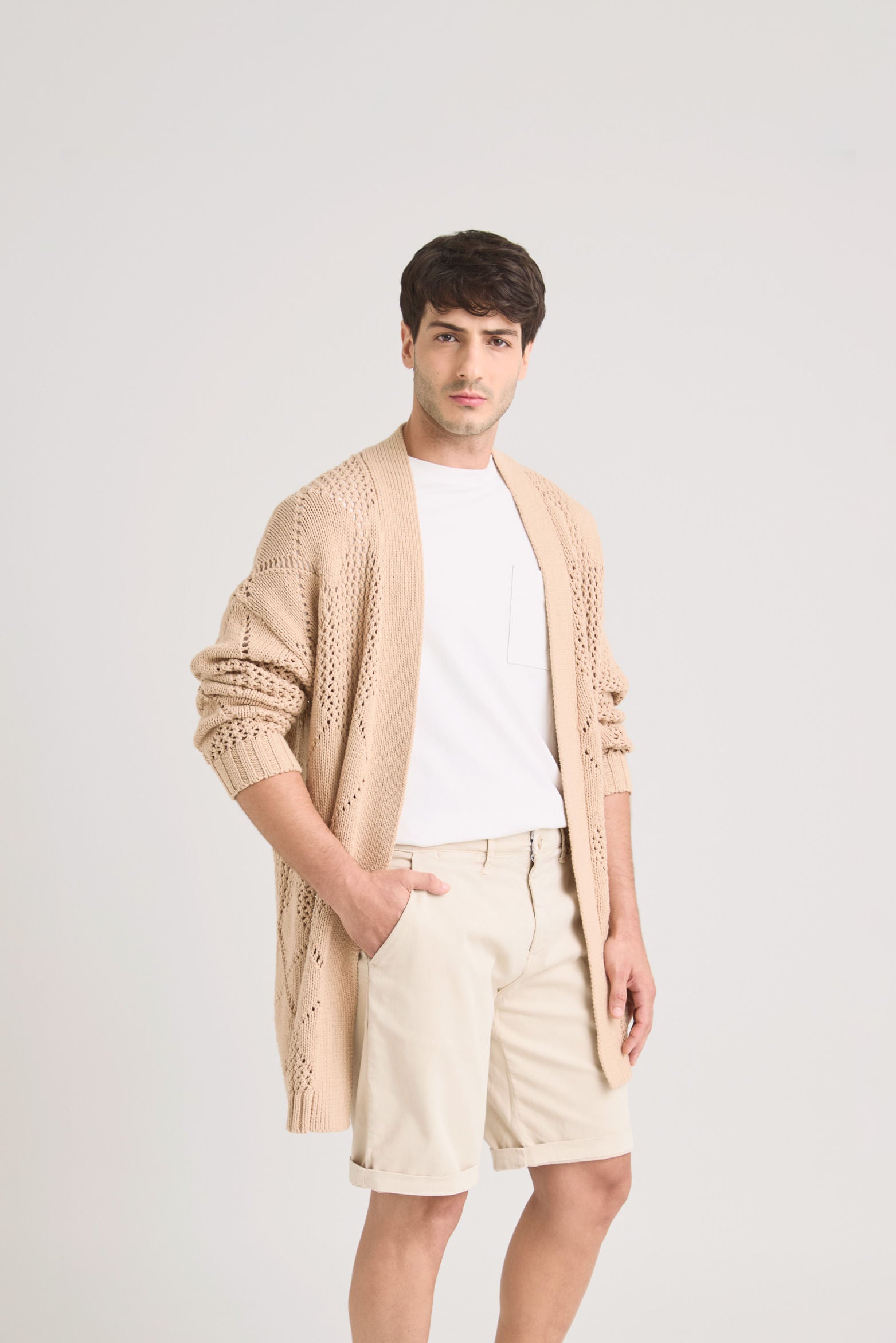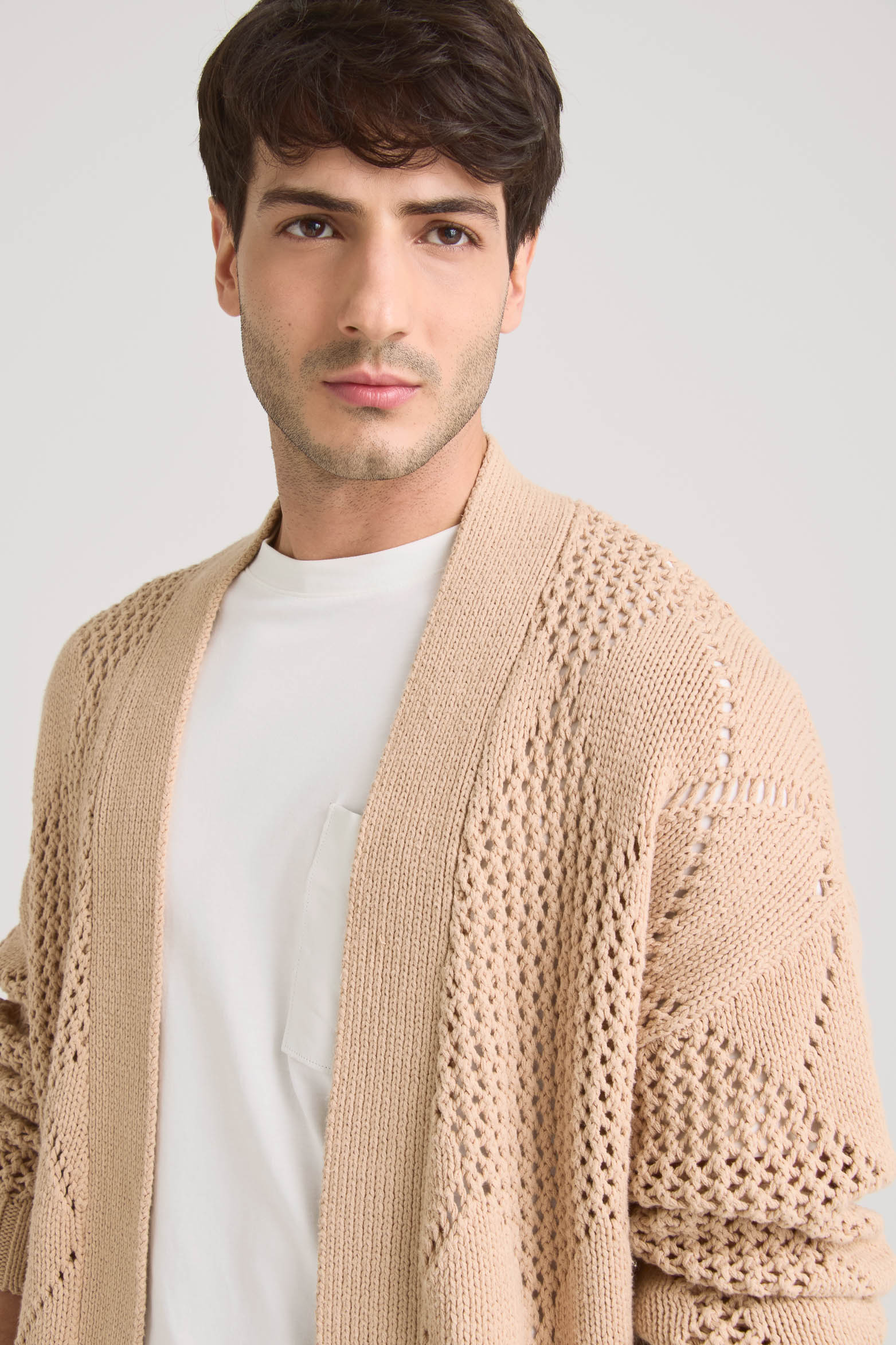 Redefining the concept of luxury, we crafted our masculine cardigan to epitomize sophistication. Its fluid silhouette, made from exceptional airy fabrics, is ideal for both warm and cool climates, offering freshness and lightness. The design, minimalist and front-open, highlights a clean aesthetic with artisanal details that speak to Vélez's DNA. This cardigan becomes a new classic that elevates the luxury experience. Perfect to combine with classic or contemporary outfits to enhance its natural and versatile beauty.
