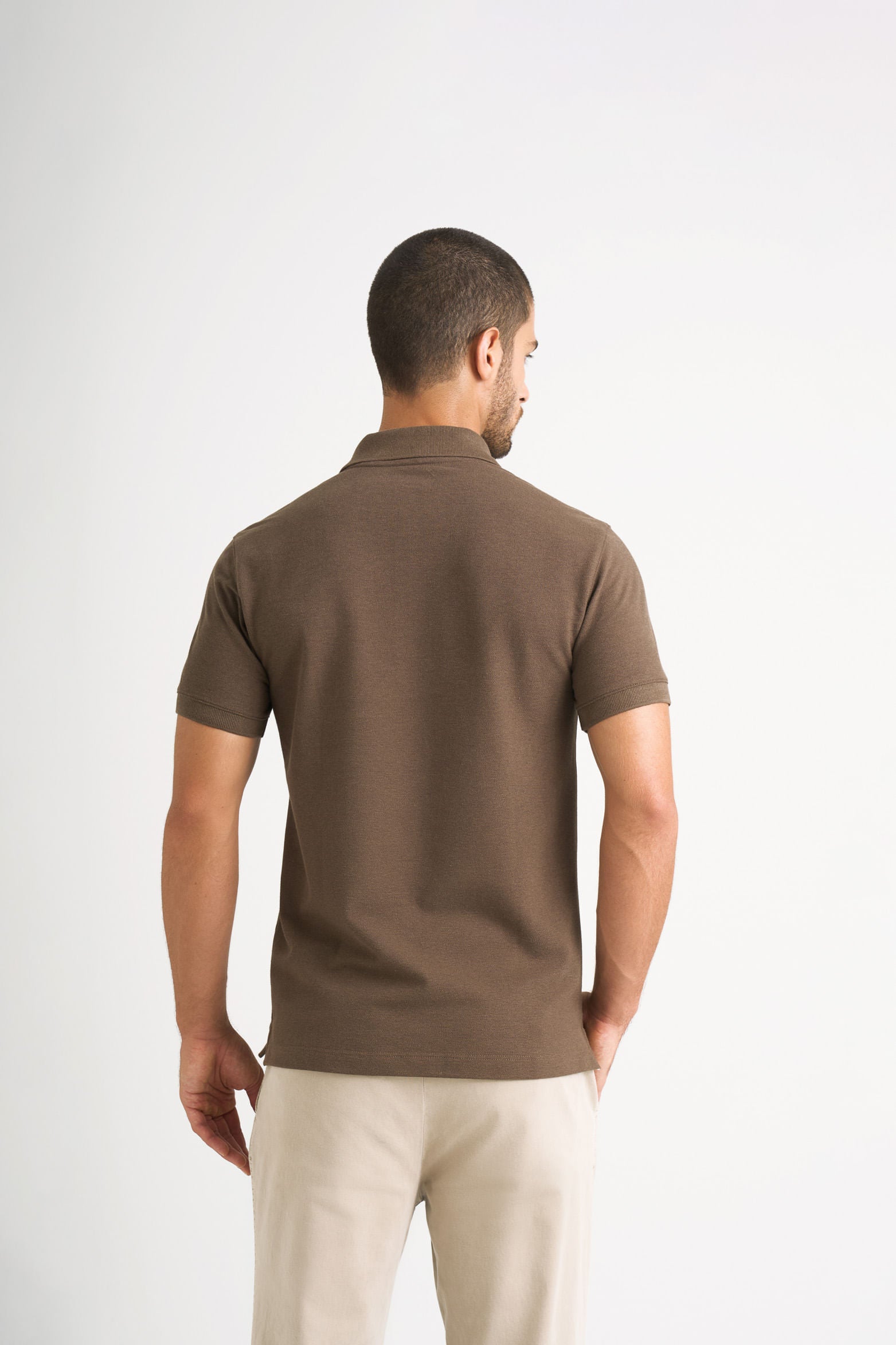 The essence of an understated elegance, our semi-fit polo represents the new classic. The garment, with its textured surface, brings an energizing simplicity and is distinguished by its resilience and lasting sophistication. The cellulosic fiber construction and jacquard cuffs, along with the V-neck overlay and the lapel with overlapping buttons, add refinement and versatility. Side slits with jacquard lining provide an adjustable fit that's both comfortable and flexible, making this garment an indispensable quality addition to any contemporary wardrobe.