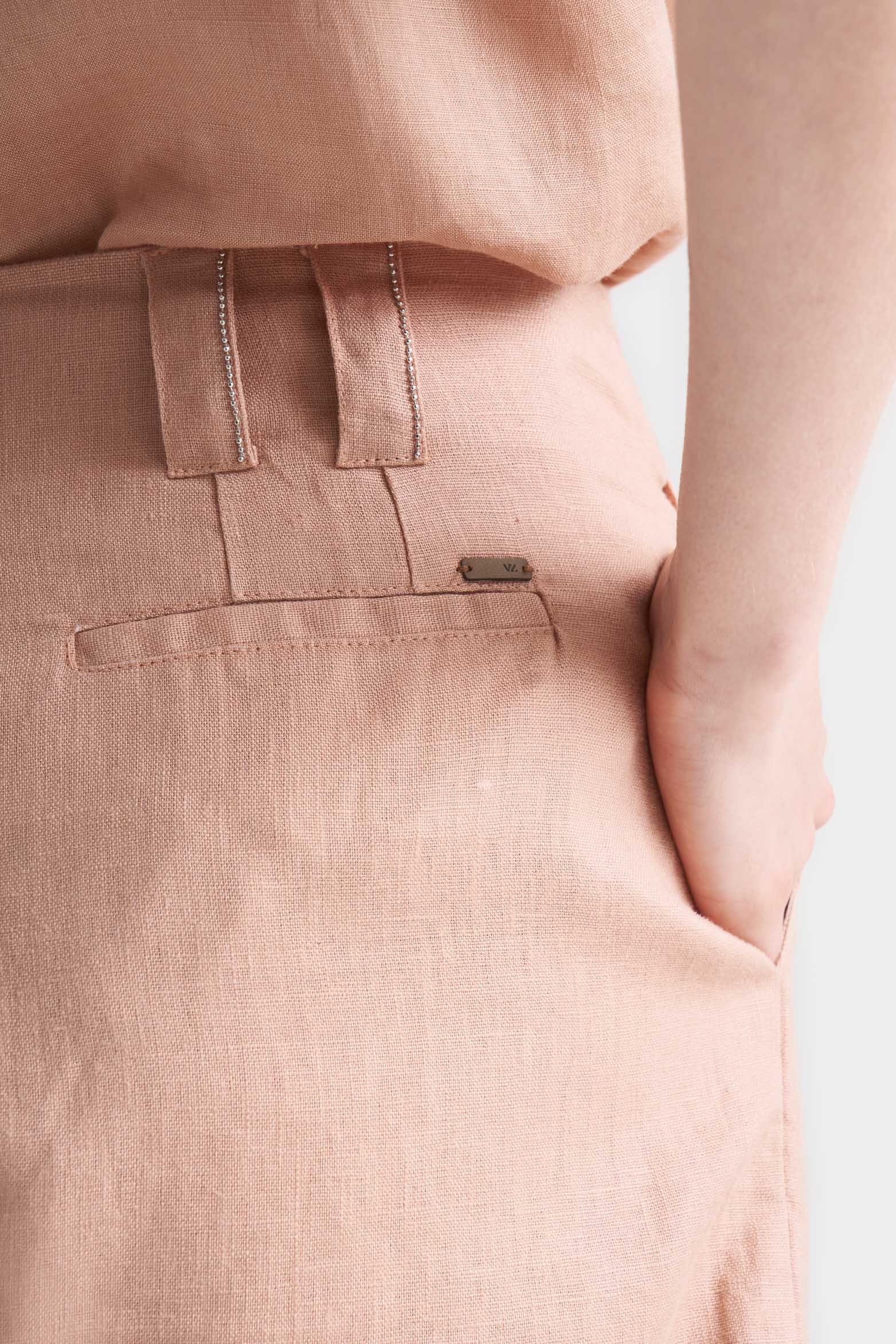 High-Waisted Linen Shorts for Women with Millaré Detail