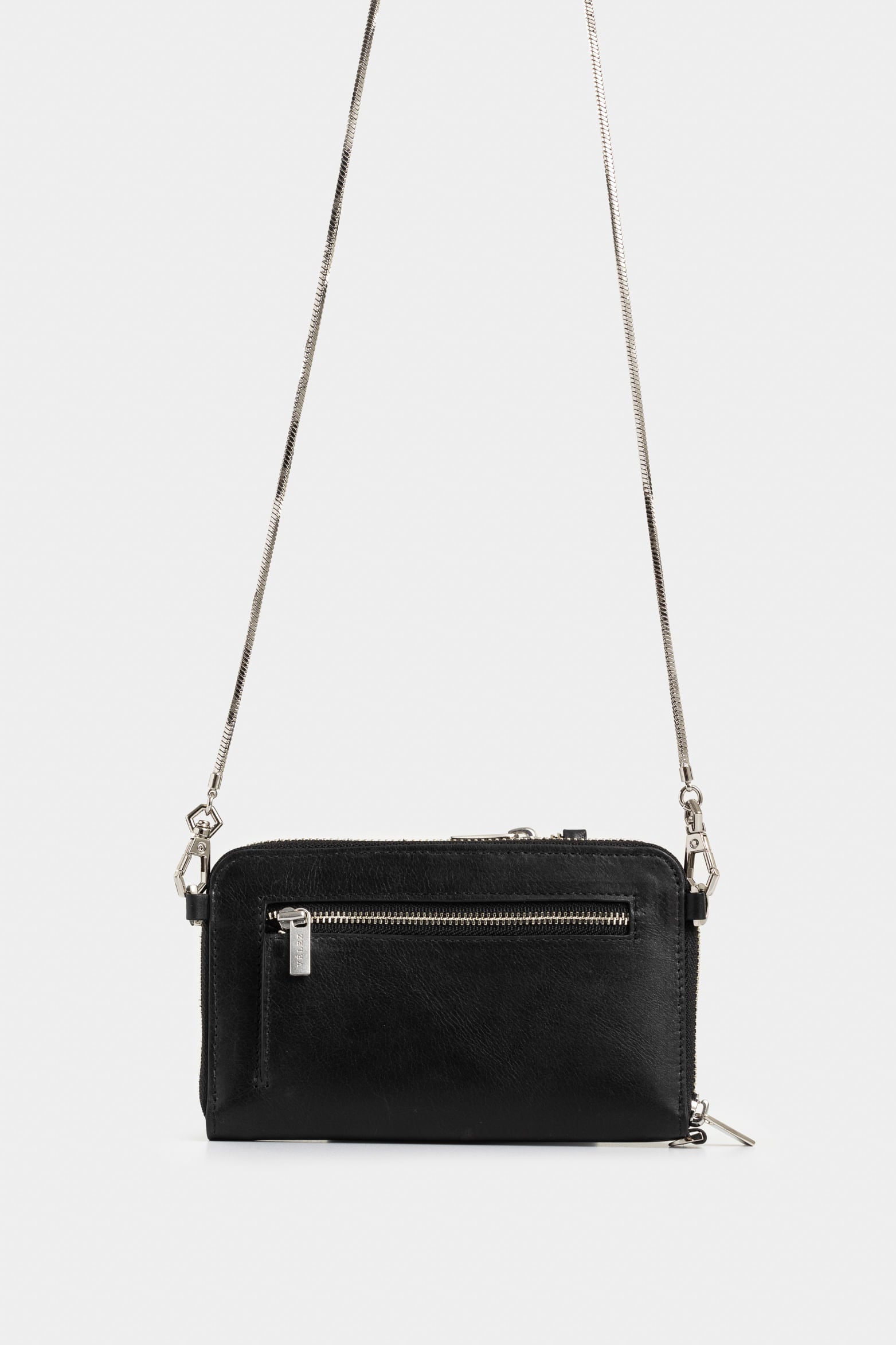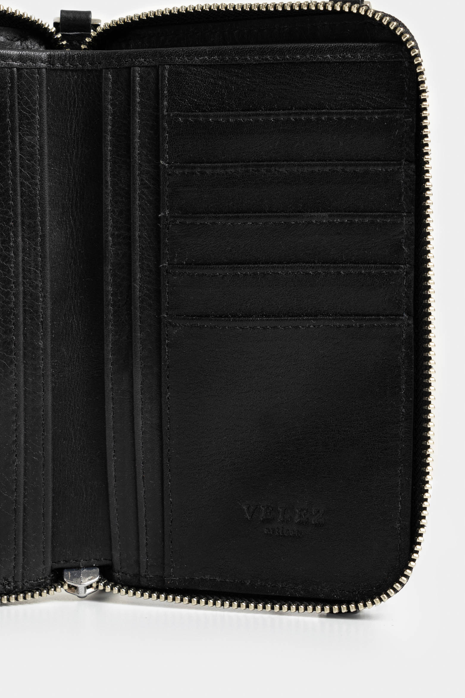 This checkbook holder fuses contemporary textures with artisanal mastery. Crafted in smooth leather, its lightweight and versatile shape, equipped with a front pocket for a cell phone, removable chain, and multiple compartments for bills, cards, and documents, makes it ideal for any occasion. Additionally, the RFID system protects your data, making this checkbook holder add vanguard and security to your everyday life.