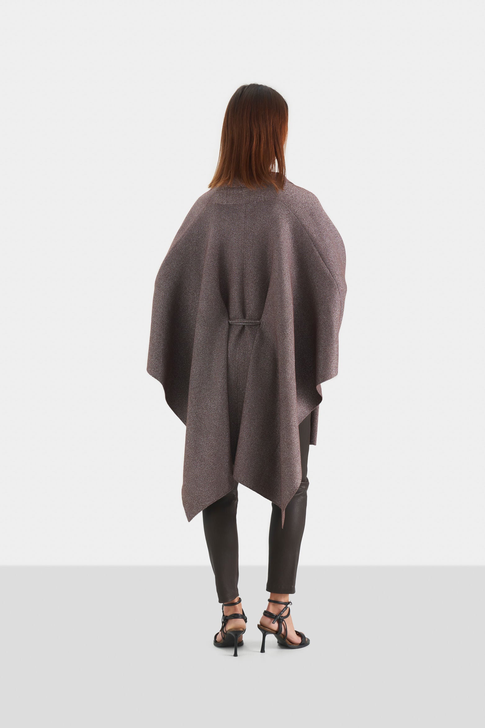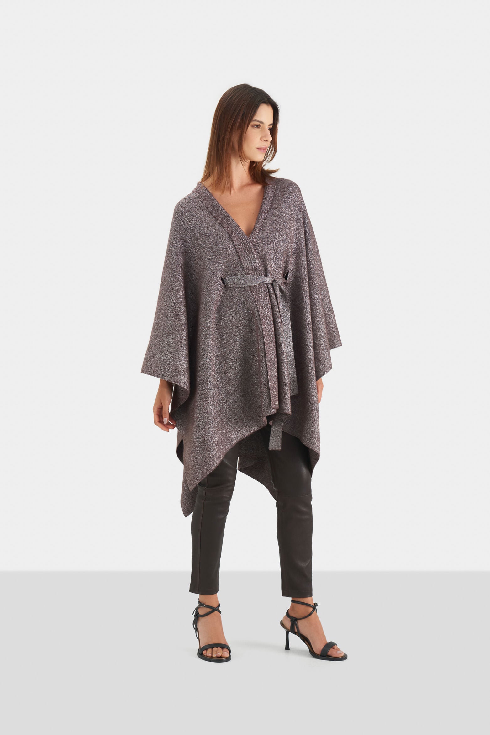 Our Iris knitted poncho is the quintessence of chic style and versatility, crafted from a ribbed knit fabric with delicate lurex threads, it offers a relaxed fit and a rectangular shape. Its design includes long sleeves made from the same fabric, allowing seamless layering over a belt or worn as is. The lurex threads add a luminous touch to the material, creating a unique fashion statement. This poncho, adorned with a subtle brightness, makes a distinctive addition to any outfit, enhancing it with a touch of distinction.