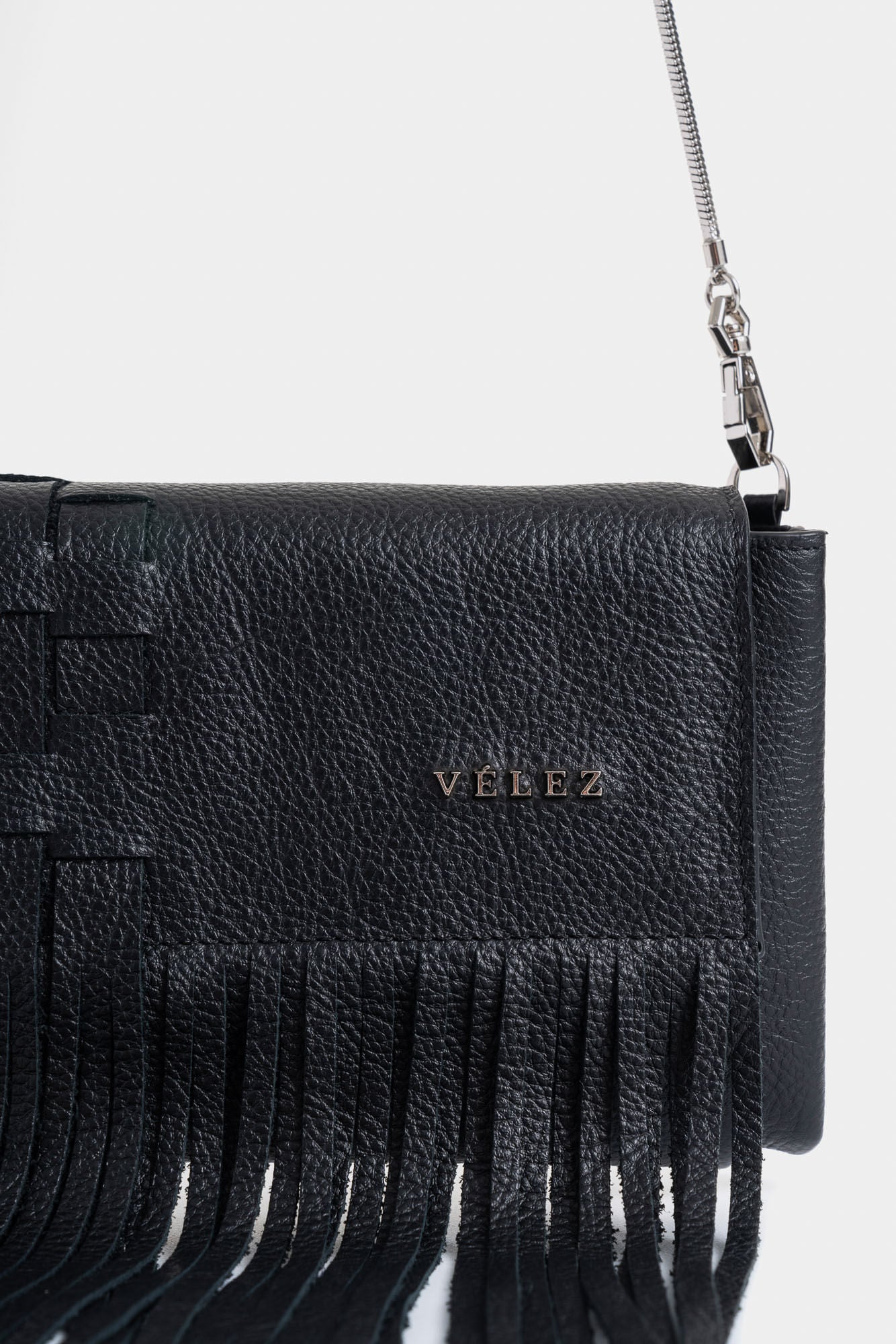 Pieces that highlight movement, fluidity, and a sense of freedom define the fringe trend, reinvented this season to evoke sophistication and the luxurious craftsmanship distinctive of Vélez's DNA. The natural grain leather weaving accentuates its structure, reflecting the mastery of handcrafted work and the beauty of layered elements, bringing freshness to any outfit. Whether you're looking to create a bohemian, rebellious, or contemporary look, this piece showcases your individuality and character.