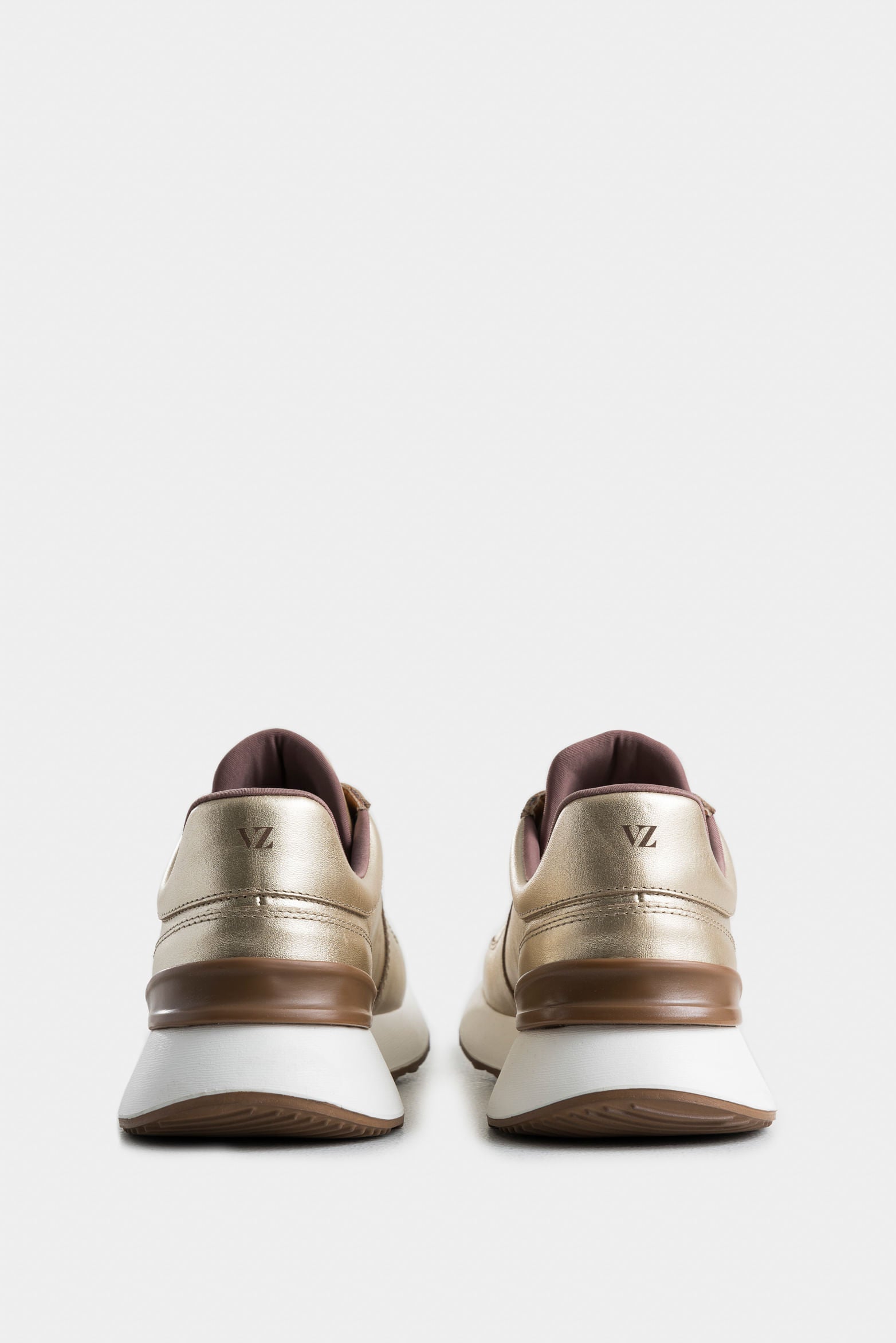 These sneakers combine casual and modern design with a fusion of comfort and style. Made from napa leather and finished with a folia type, they offer a contemporary and sporty aesthetic. Their EVA sole guarantees comfort with every step, complemented by an anatomical ortholite insole that provides additional support. They are the ideal choice for any occasion, from a sophisticated outfit with a dress and belt to a deconstructed look of jeans and a T-shirt.