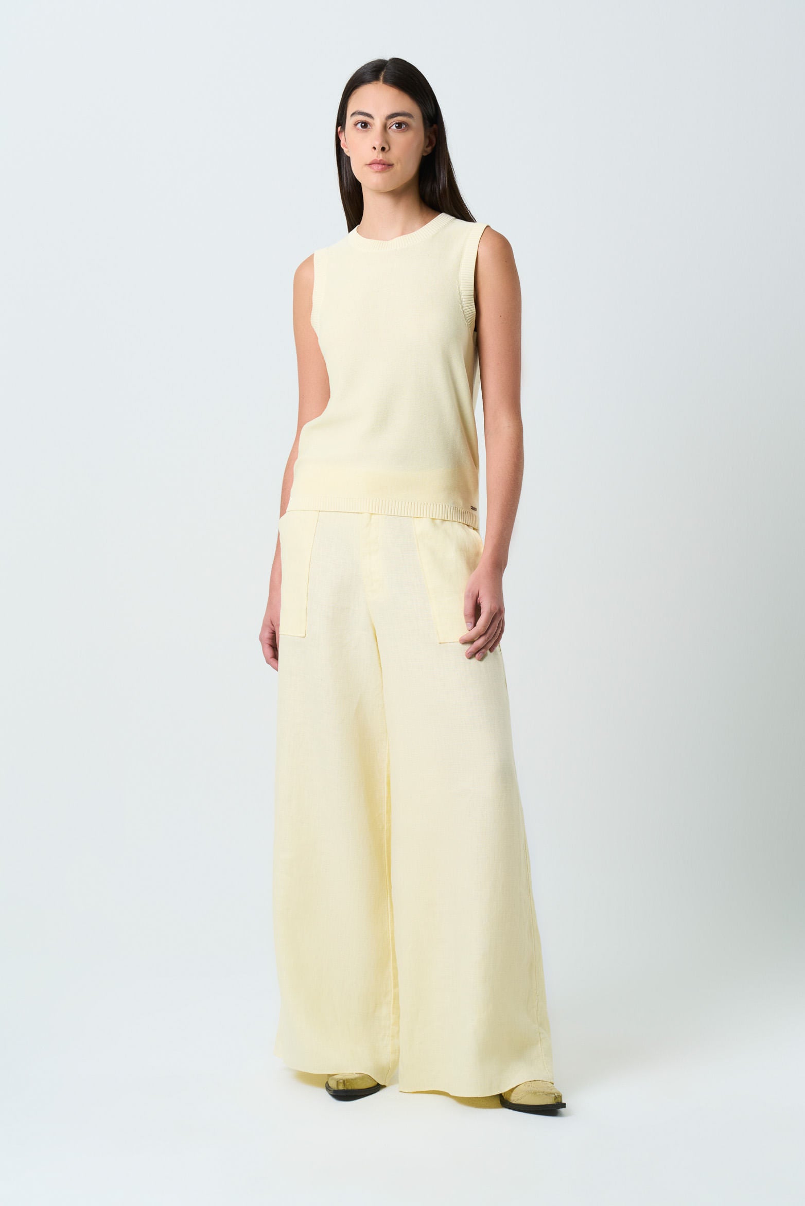 Radiant in its simplicity, this blouse captures the essence of contemporary elegance. Its warmth and innovative design unite in perfect harmony to offer an authentic garment. The lightweight, straight fabric is complemented by a relaxed silhouette, providing impeccable balance. Delicate ribbing at the neck, cuffs, and hem, as well as the crossover opening at the back, enhance its design. Perfect for pairing with straight leather pants or your favorite jeans, this blouse becomes the ideal complement for any occasion.