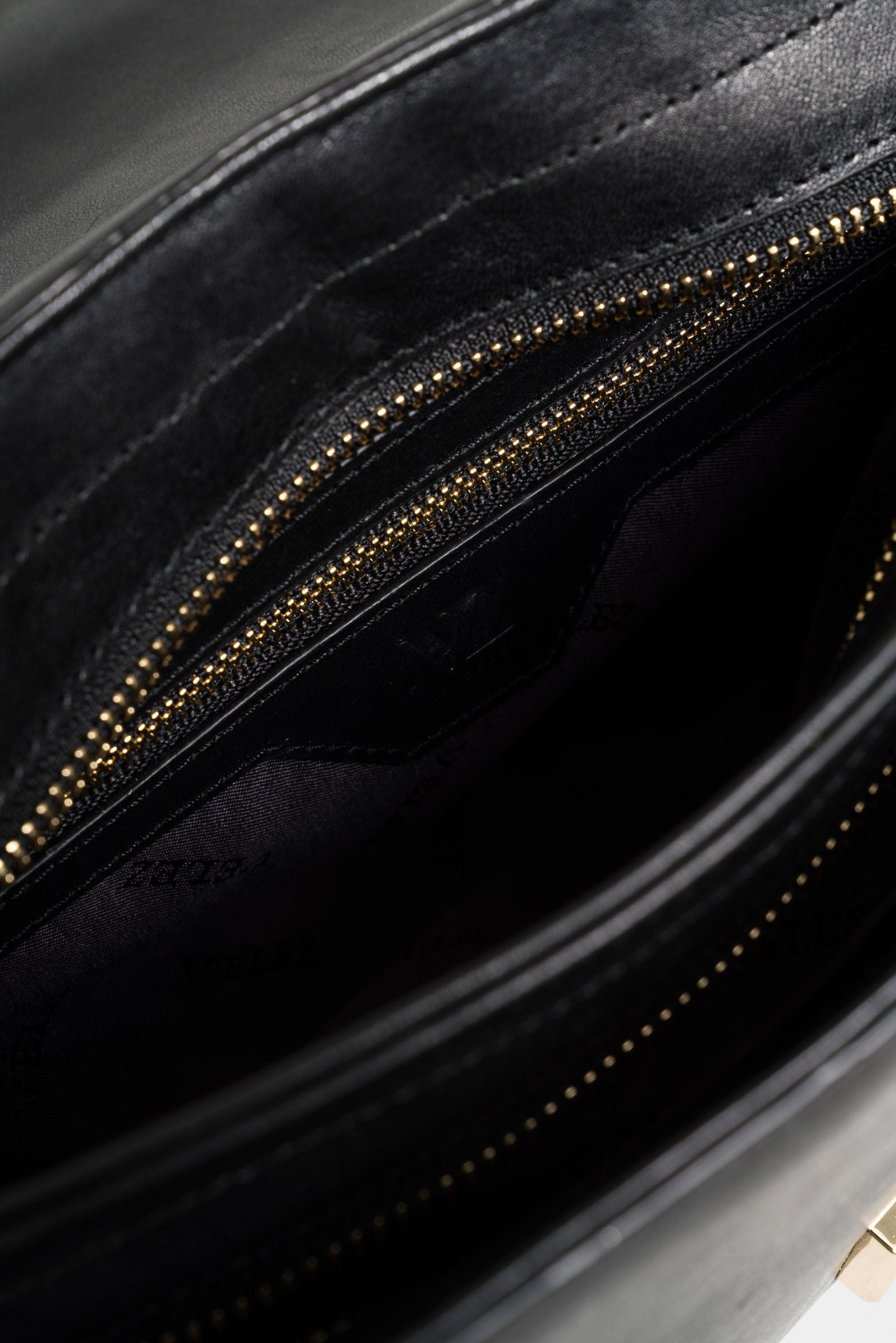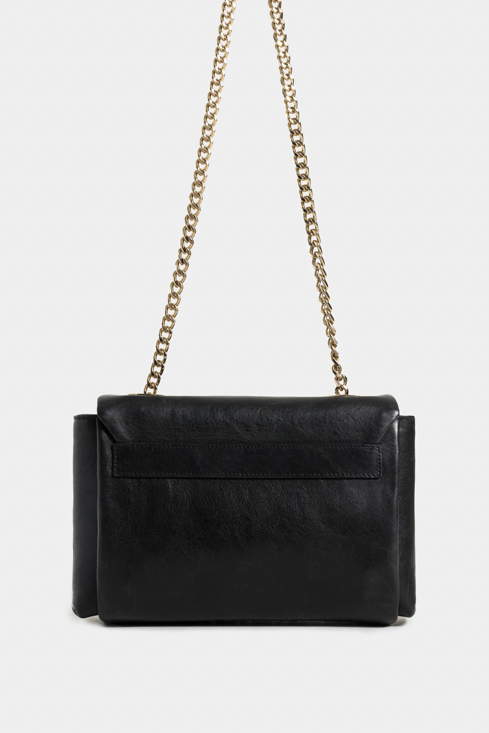 Essential elements are renewed to surprise you, our bowling bag is made of soft semi-gloss leather, featuring a flap closure system with a removable chain. Designed with your comfort in mind, it integrates an internal zipper pocket and a cell phone pocket. Classic lines that become timeless, as they match any type of outfit and always give you the touch of sophistication you are looking for.