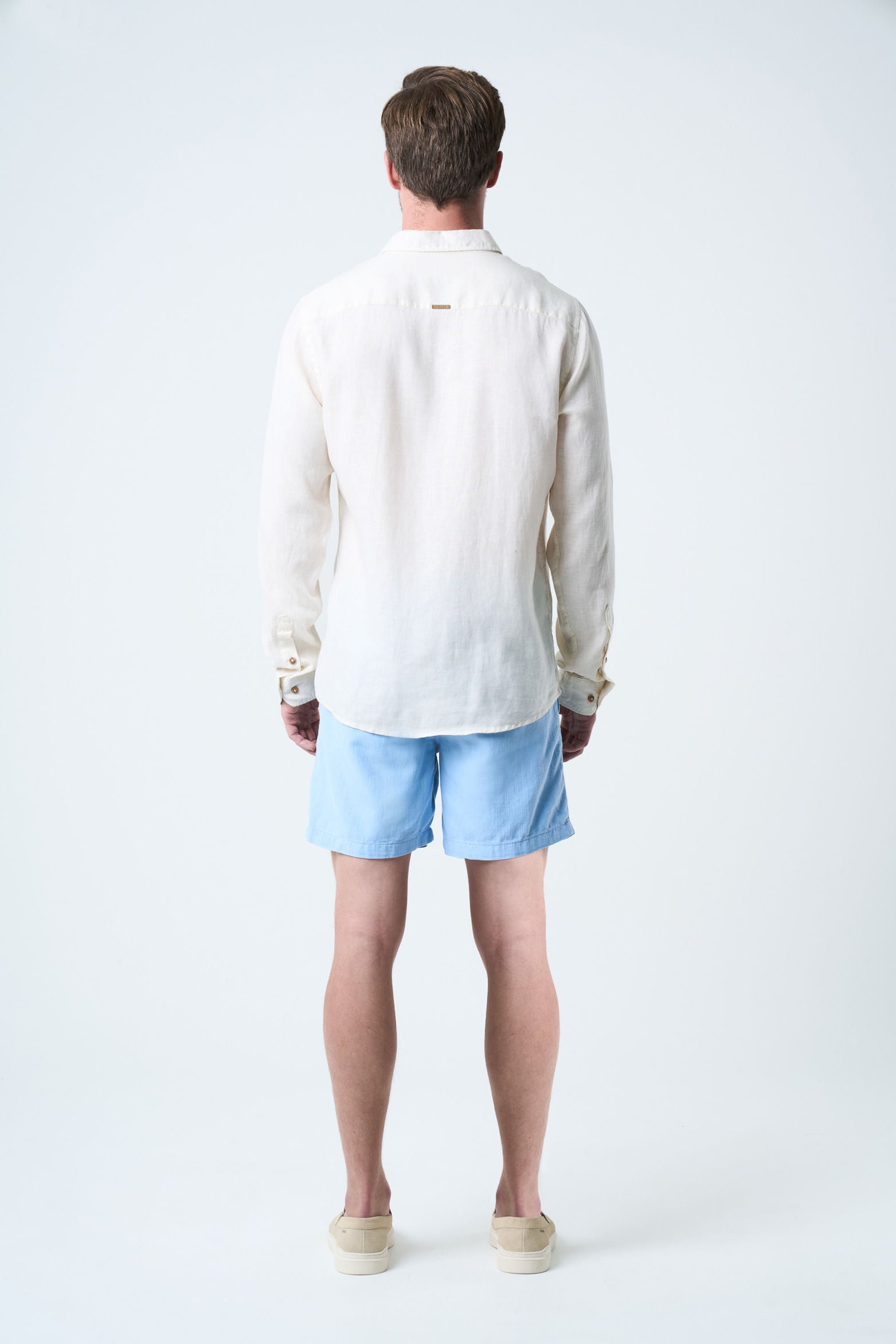 Classic silhouettes are reimagined through texture and materials, enhancing comfort and breathability. Our Marfil Bermuda shorts feature a wide and versatile fit, ideal for any occasion. Perfectly suited for summer days, they pair effortlessly with both loafers and sneakers to achieve a refined casual look. Made from 100% linen, they ensure an exceptional cooling effect. Their lightweight design, softened by a special washing process, makes them a must-have for warm weather and a staple in the modern wardrobe.
