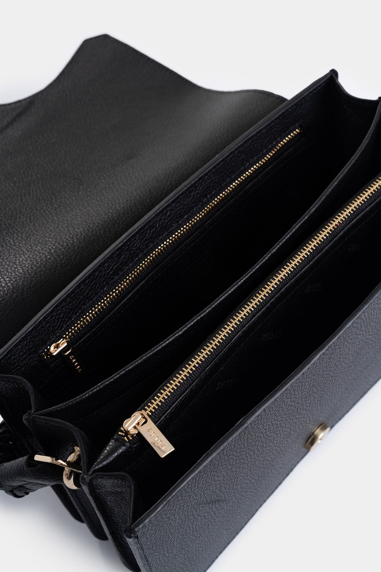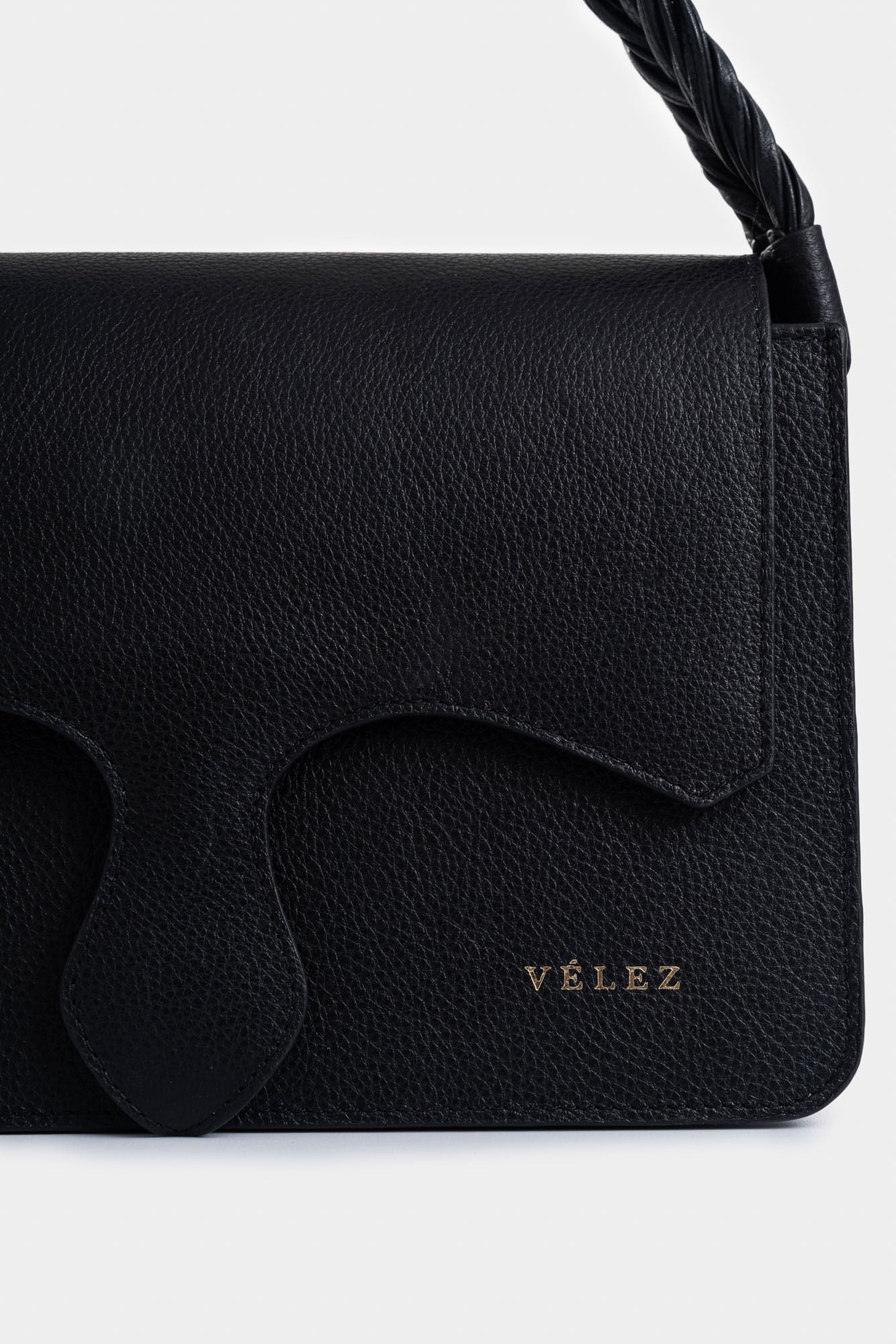 This bowling bag embodies a masterful blend of innovation and artisanal heritage. Crafted from fine-grain leather, its elegant silhouette is highlighted by a flap and magnetic brooch closure. Its design is complemented by a braided handle, adding practicality and a modern flair. The interior includes a zippered pocket, demonstrating a commitment to quality and durability. This handcrafted piece truly reflects the authenticity and expertise of Vélez.