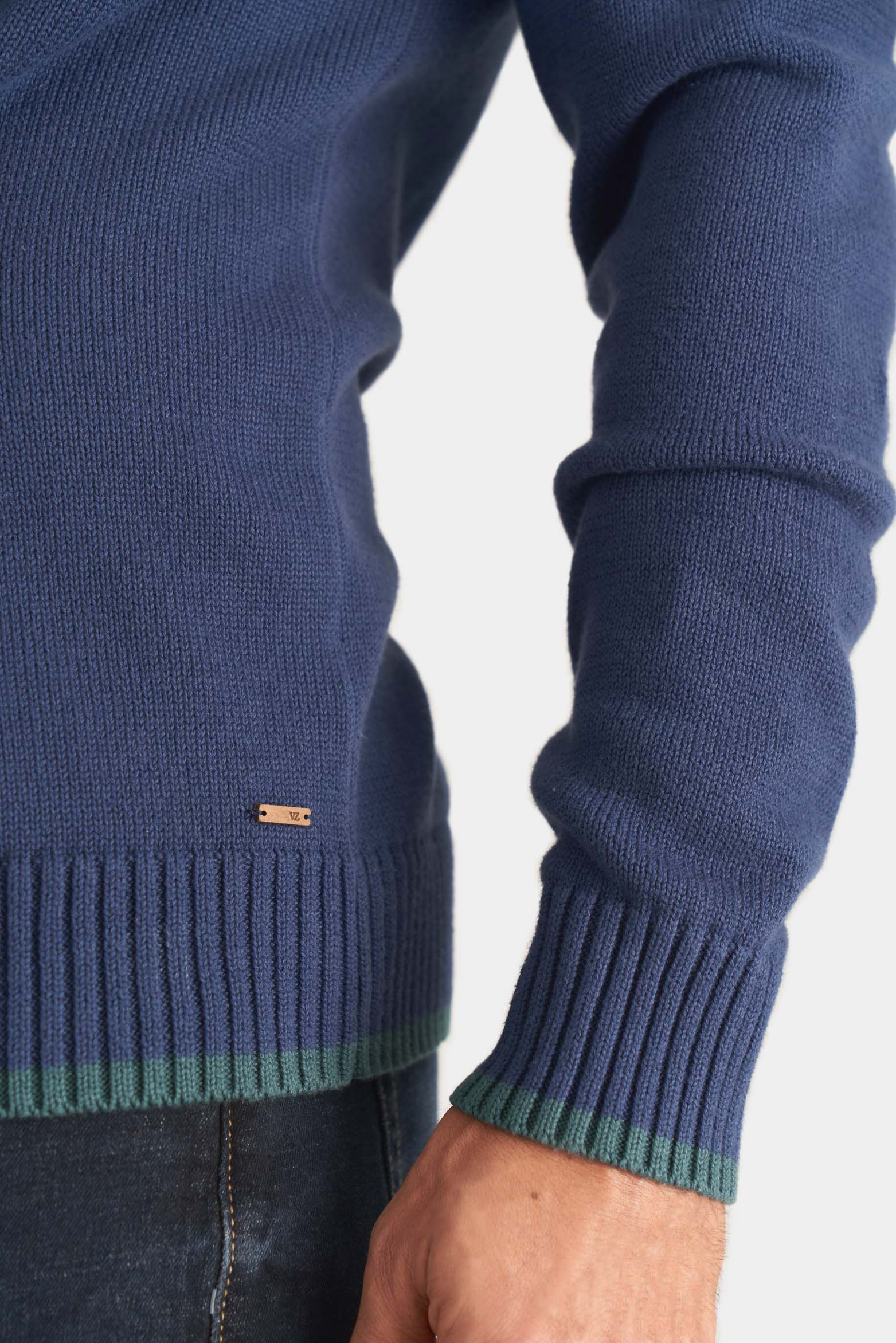 A renewed proposal that modernizes the ideal designs for cold climates, our knit sweater is made with natural fibers. Additionally, the contrast neckline and details add a sophisticated, casual and modern touch. Wear it with jeans and pants to create on-trend styles.