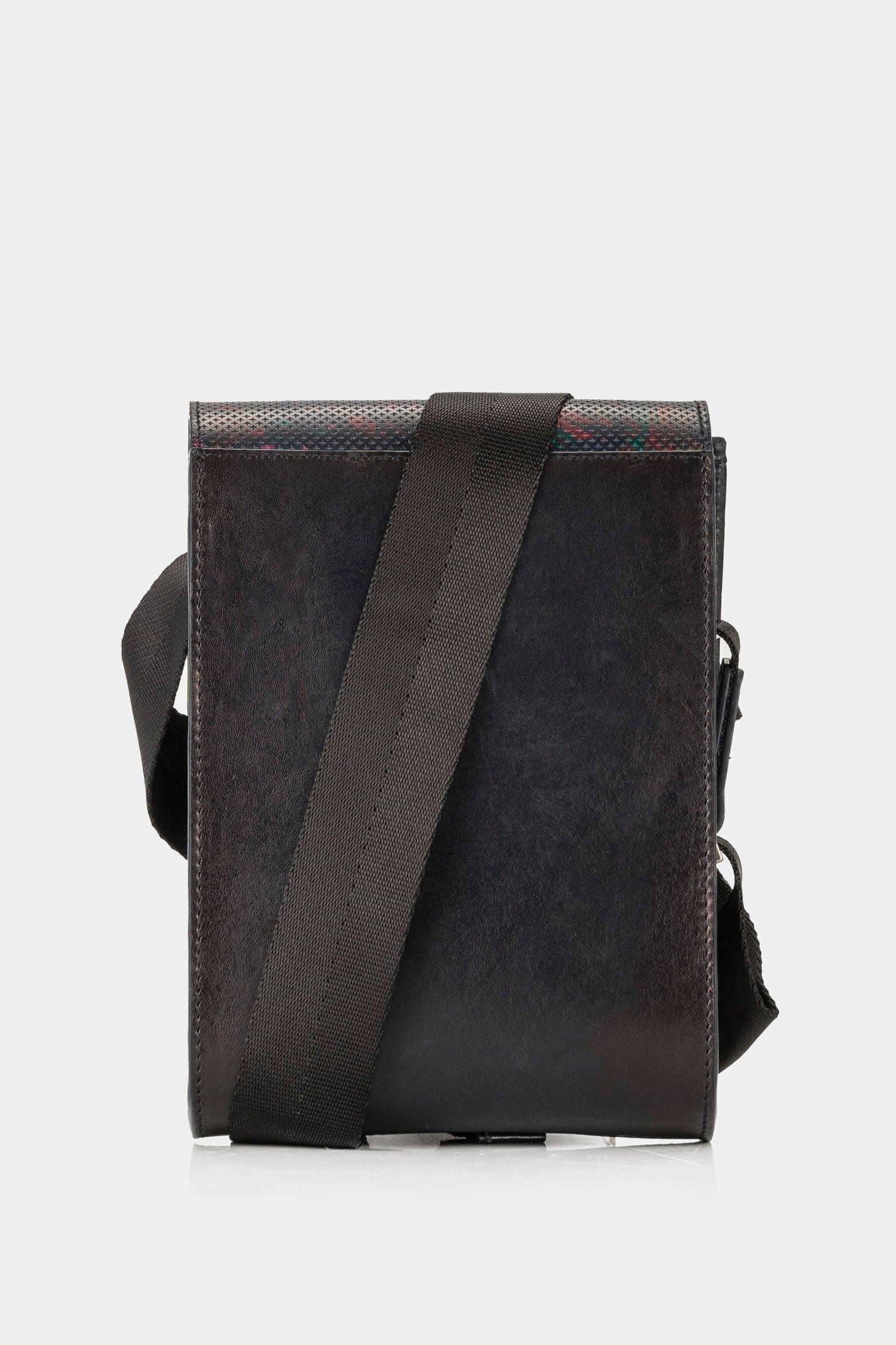 Men’s Leather Shoulder Handbags with Digital Print and Textured Flap