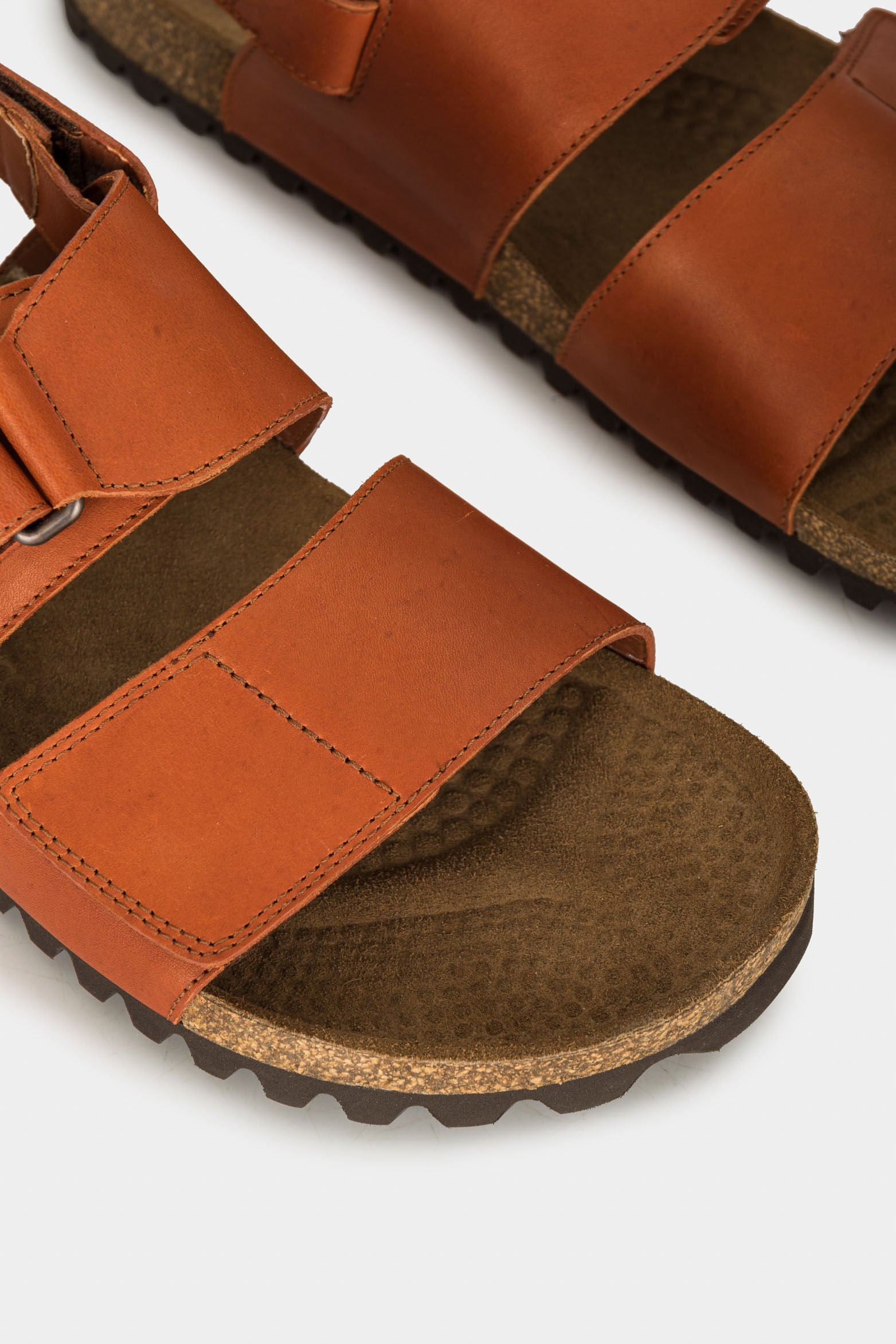Men’s Orcian Flat Leather Sandal with Hook-and-Loop Straps