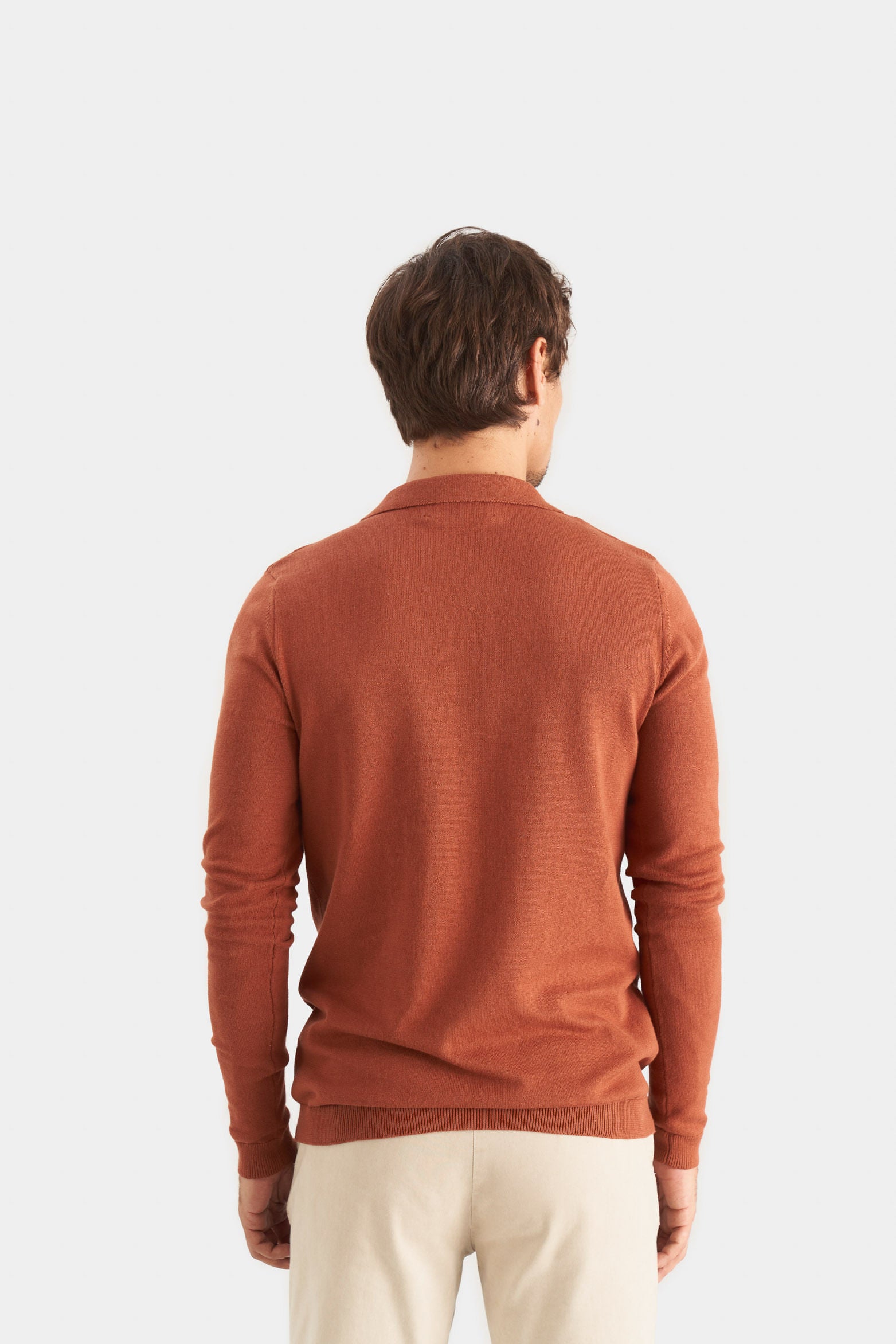 Home Men’s Pyxis Long Sleeve Knit Polo in Brandy