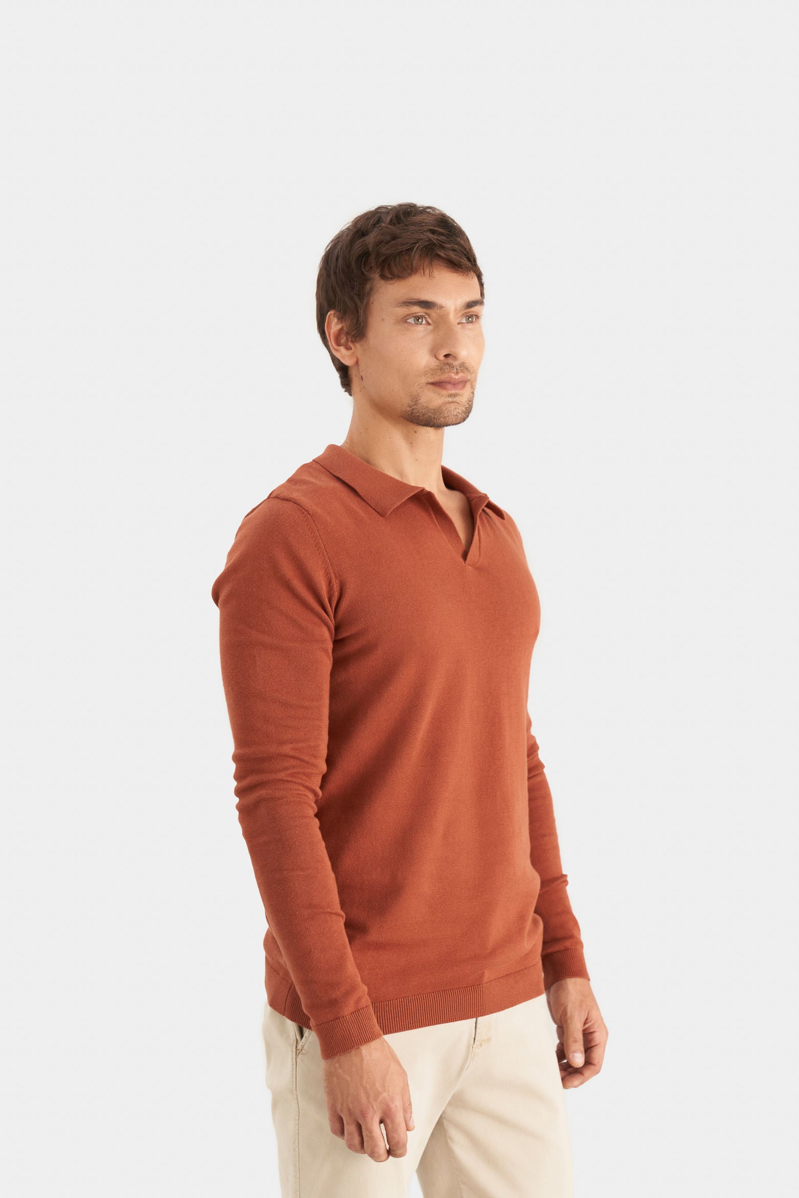 Our semi-fitted polo features a long sleeve and V-neck for an updated style. It’s made of cotton, which lends a soft, breathable feel to this on-trend style. The added layer of responsibility in the raw material used makes this polo a perfect choice for different looks that adapt to your lifestyle.