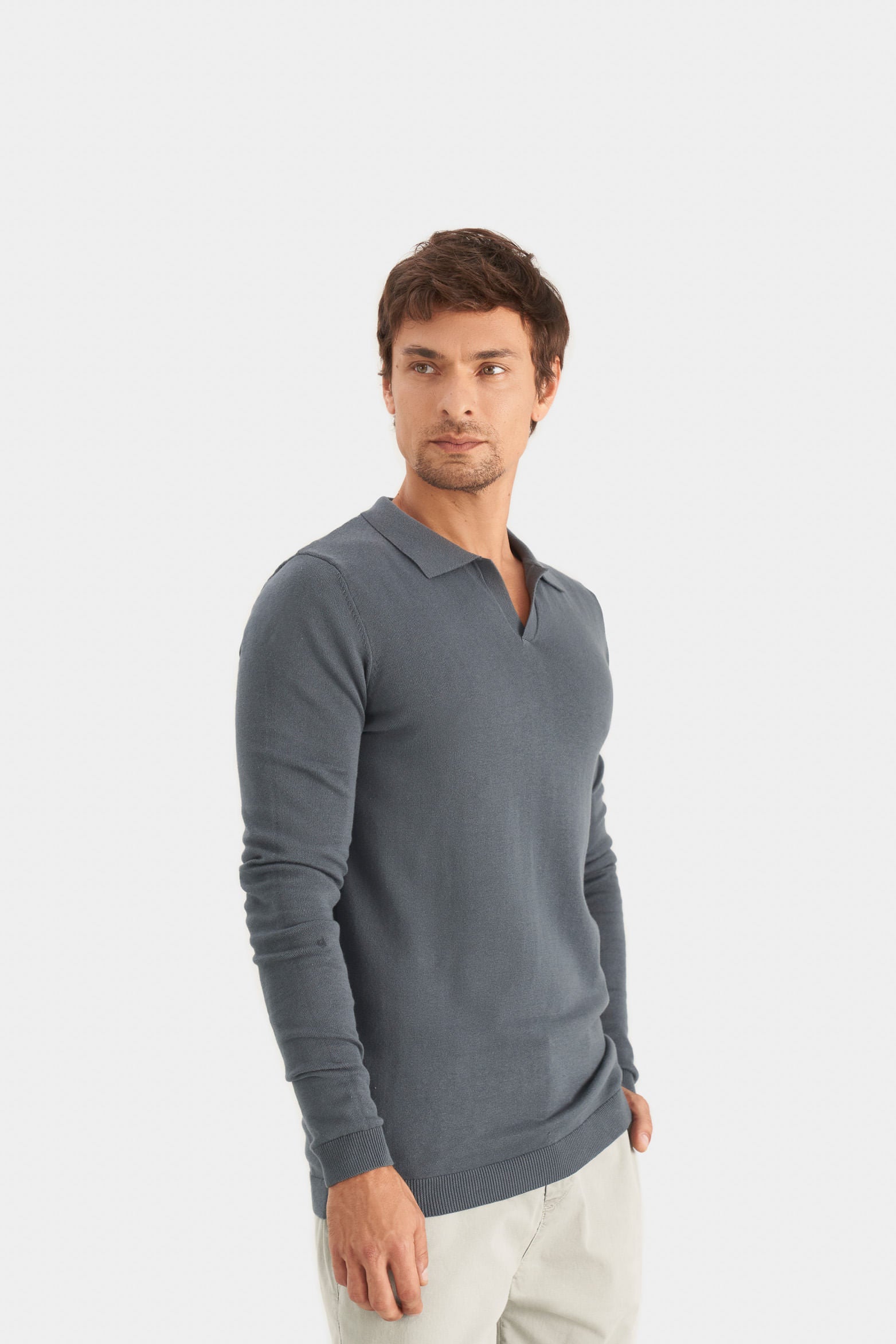 Our semi-fitted polo features a long sleeve and V-neck for an updated style. It’s made of cotton, which lends a soft, breathable feel to this on-trend style. The added layer of responsibility in the raw material used makes this polo a perfect choice for different looks that adapt to your lifestyle.