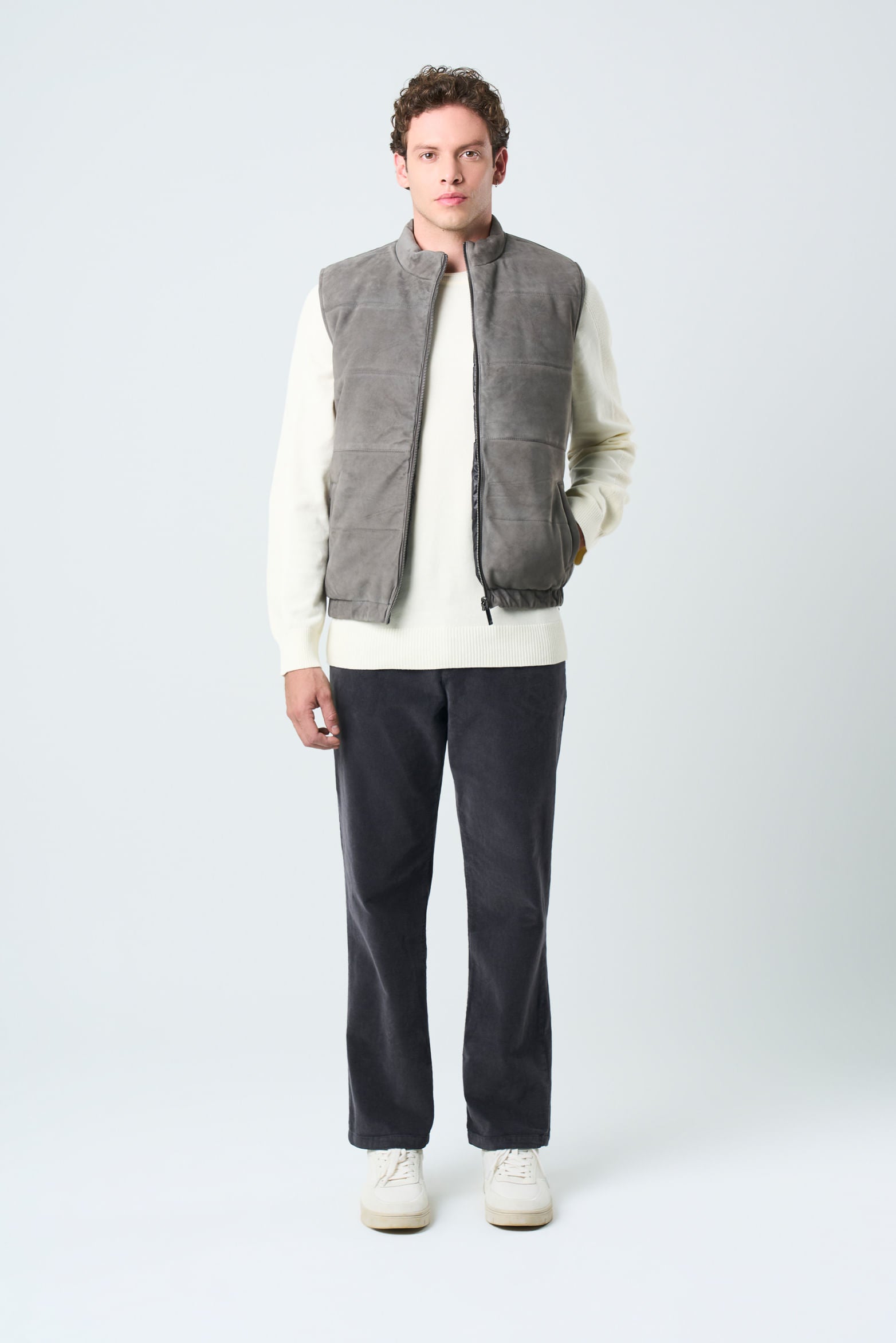 Perfect for elevating your style with a refined touch. With a soft texture that embraces winter and milder climates, this suede leather vest stands out for its minimalist design that highlights both fit and feel. Side pockets and a front zipper add functionality, while its versatility makes it ideal to pair with loafers or boots—transforming your wardrobe with a contemporary Vélez edge.