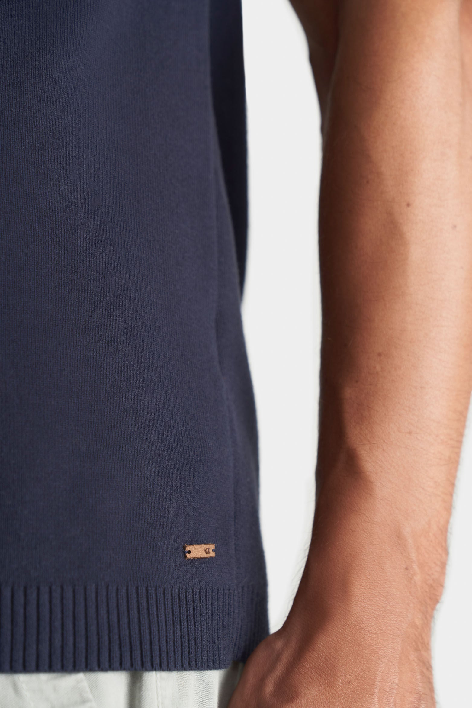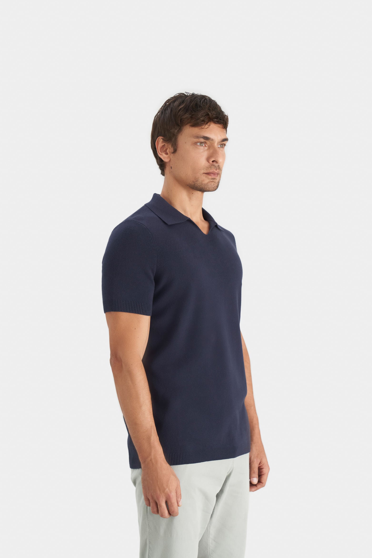 Men’s V-Neck Knit Polo in Navy Blue XX