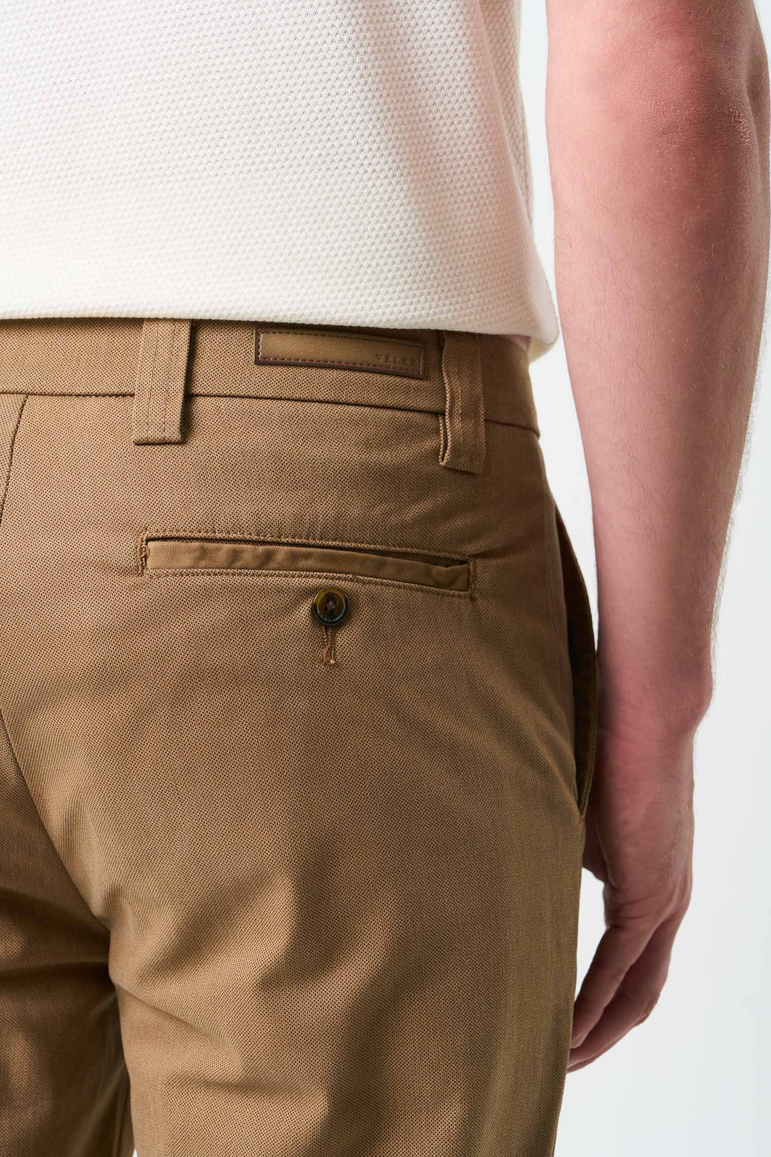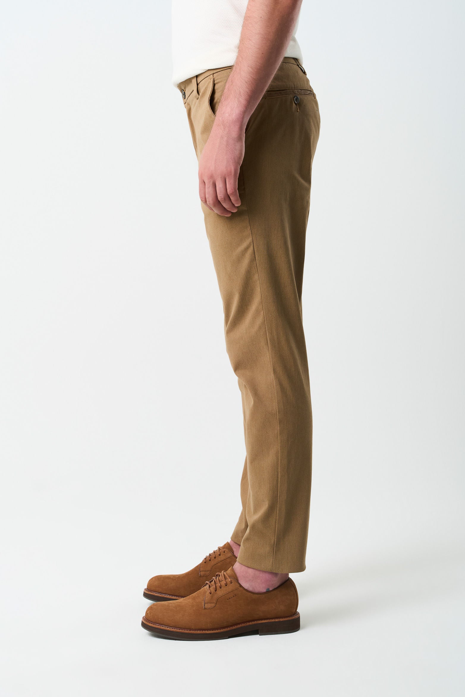 Our semi-fitted trousers are the perfect blend of comfort and elegance. With a soft textile base and a smooth feel, they offer exceptional comfort. These trousers are an essential addition to any wardrobe. Welt pockets and tonal leather details add a sophisticated touch, while the fit ensures unparalleled ease. Formal by nature, these trousers can easily transition to a casual silhouette when paired with sneakers. For those seeking versatile, comfortable style, these trousers are the key piece to elevate any occasion.