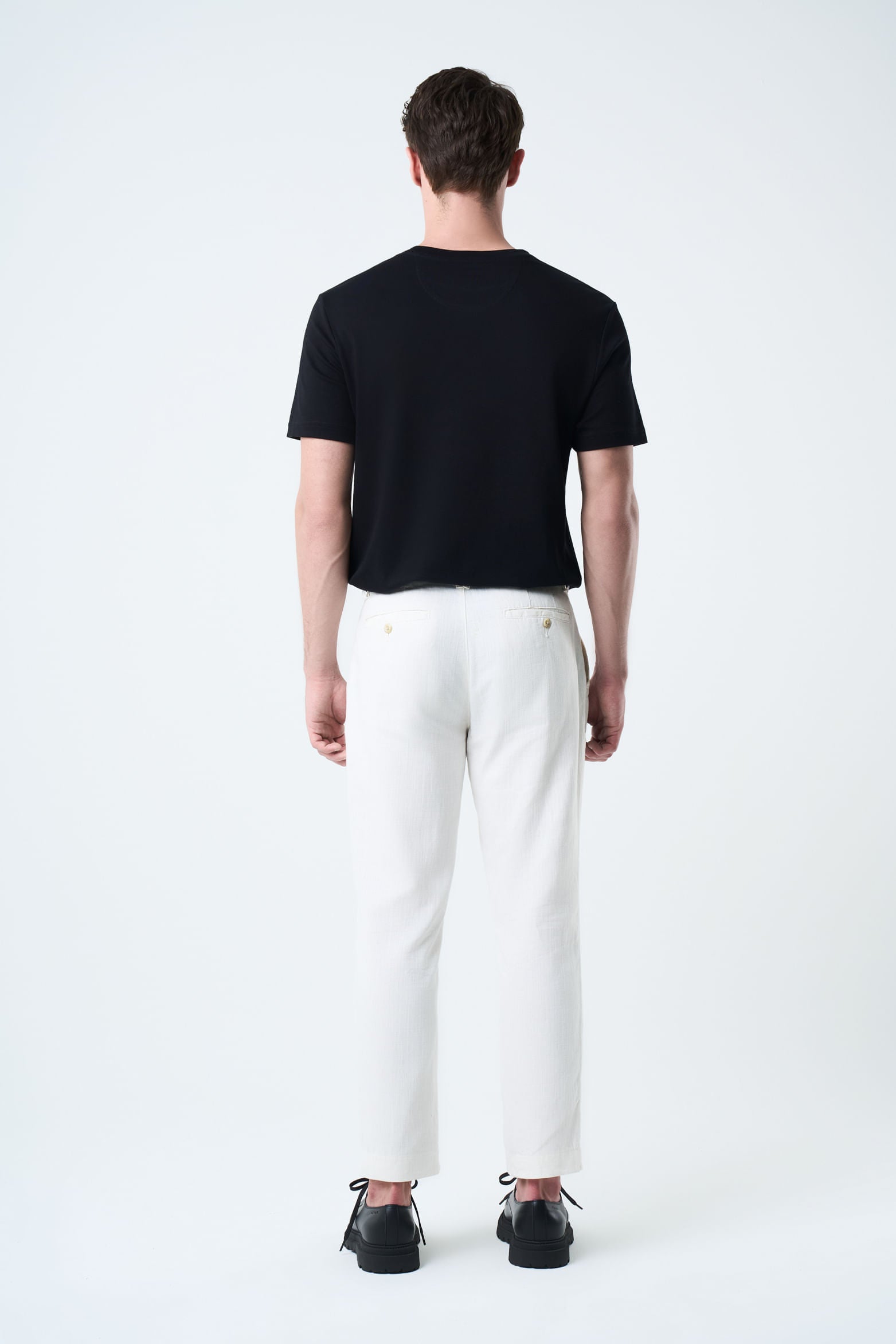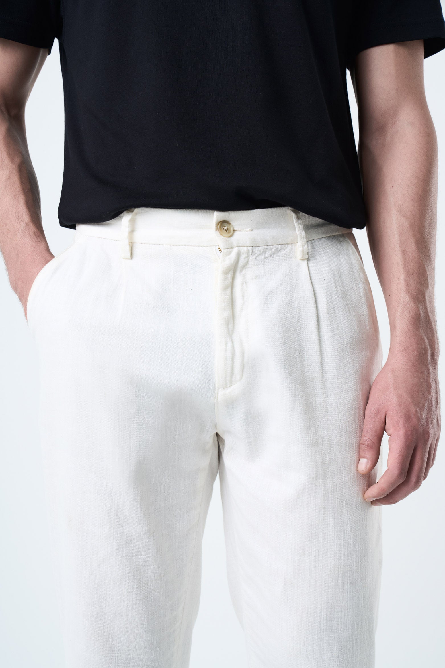 Bohemian sophistication meets natural cool in these linen pants, perfect for warm climates. Their design balances the lightness of linen with the freedom of their relaxed fit, featuring leather-trimmed pockets that enhance movement and comfort. These pants are the perfect ally for various summer looks, blending tradition, avant-garde, and attention to detail from Vélez.