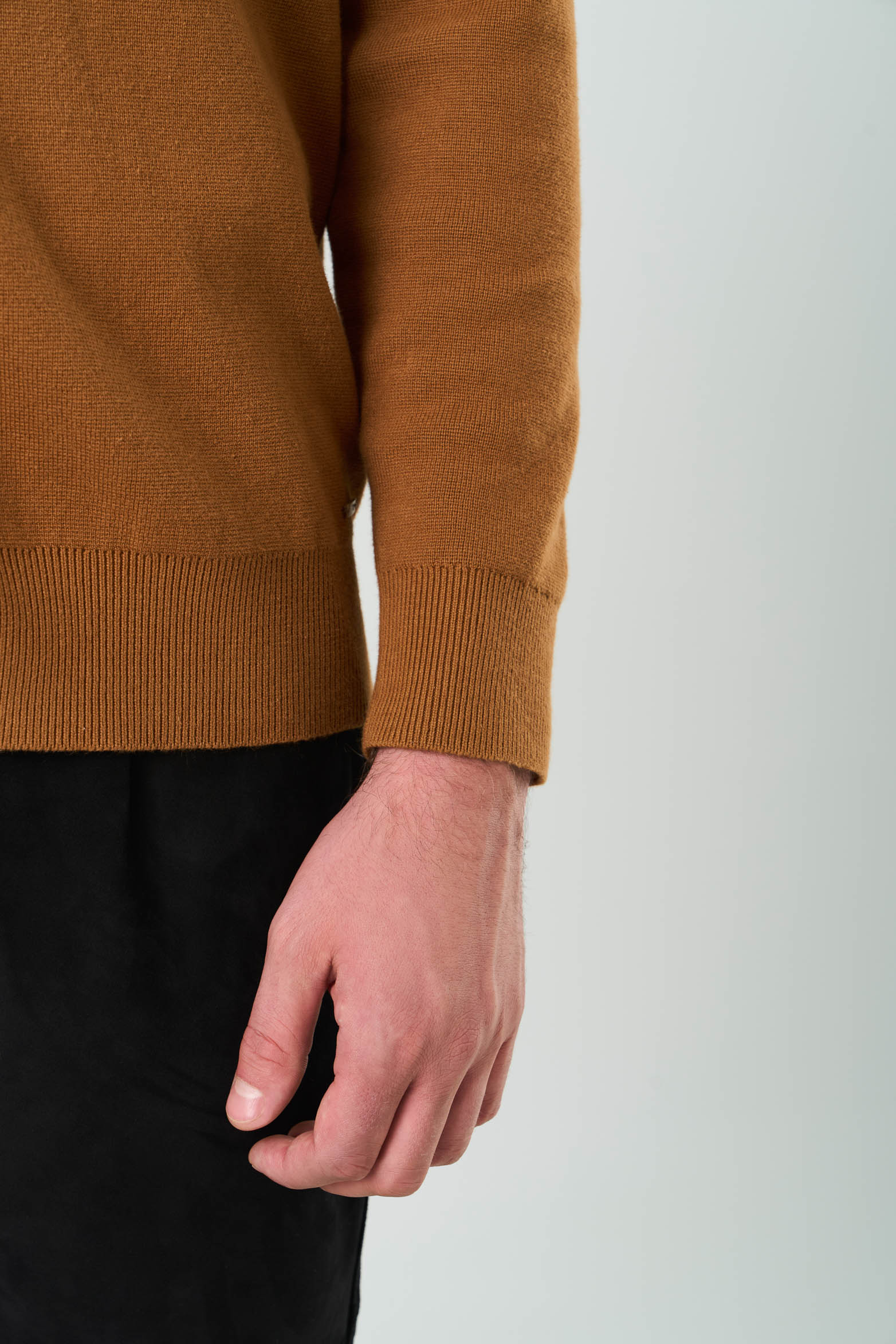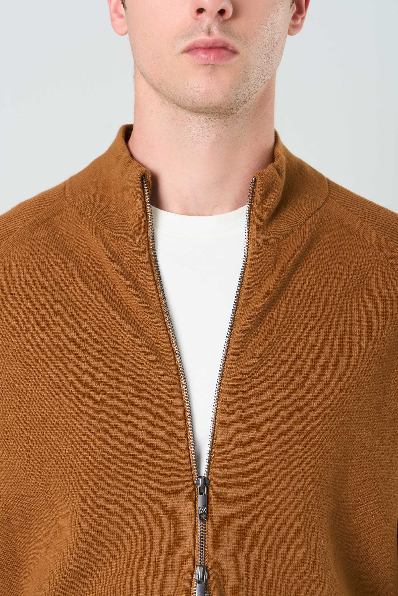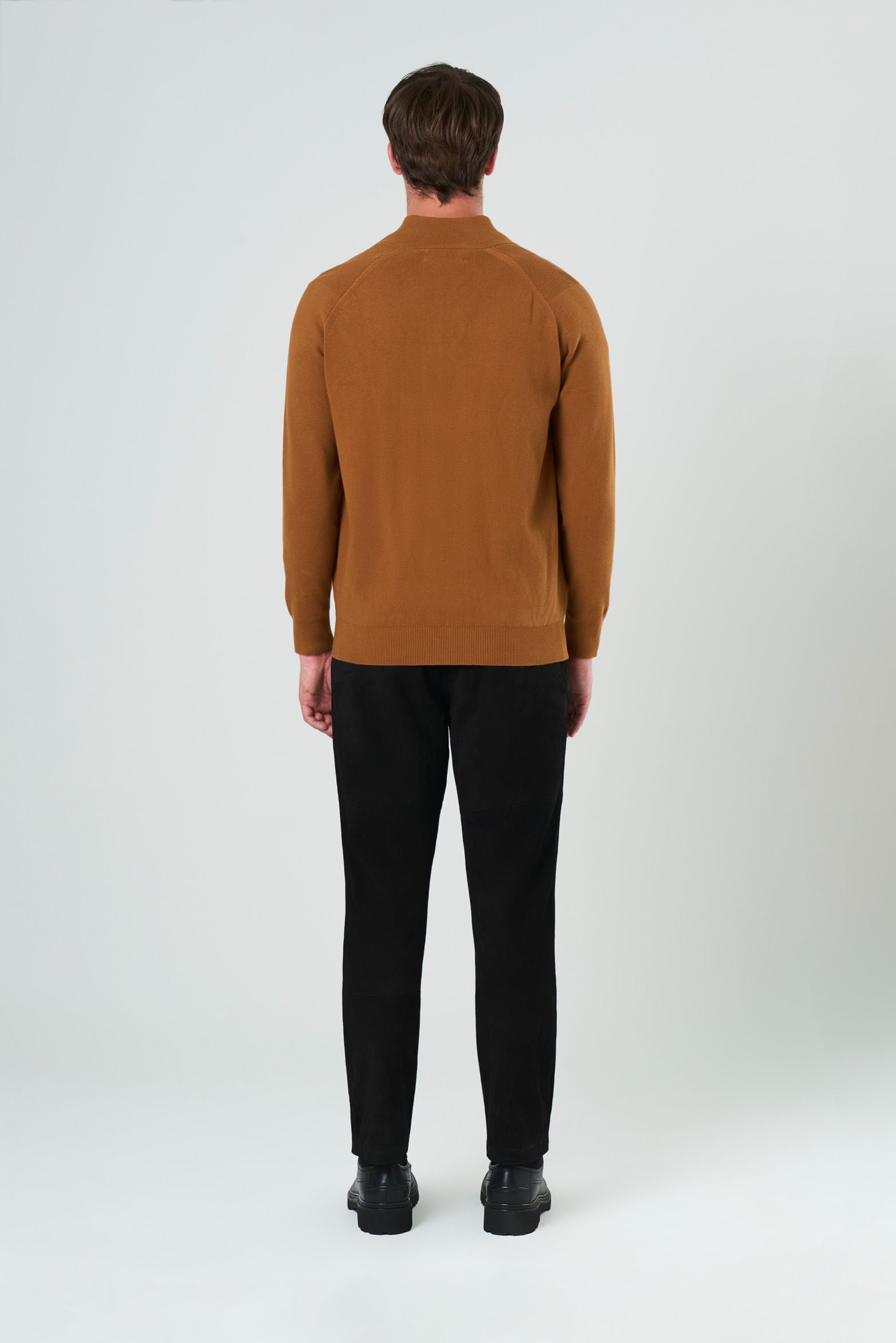 Accessories that elevate any occasion with their texture and design. Our unicolor sweater in a lightweight knit features a raglan sleeve and high neck for a touch of sophistication, with an innovative ribbed shoulder detail that sets it apart. Its semi-fitted silhouette and functional front closure ensure comfort and versatility. This sweater is perfect for pairing with jeans and sneakers, creating casual yet stylish looks, making it an indispensable piece in your wardrobe.
