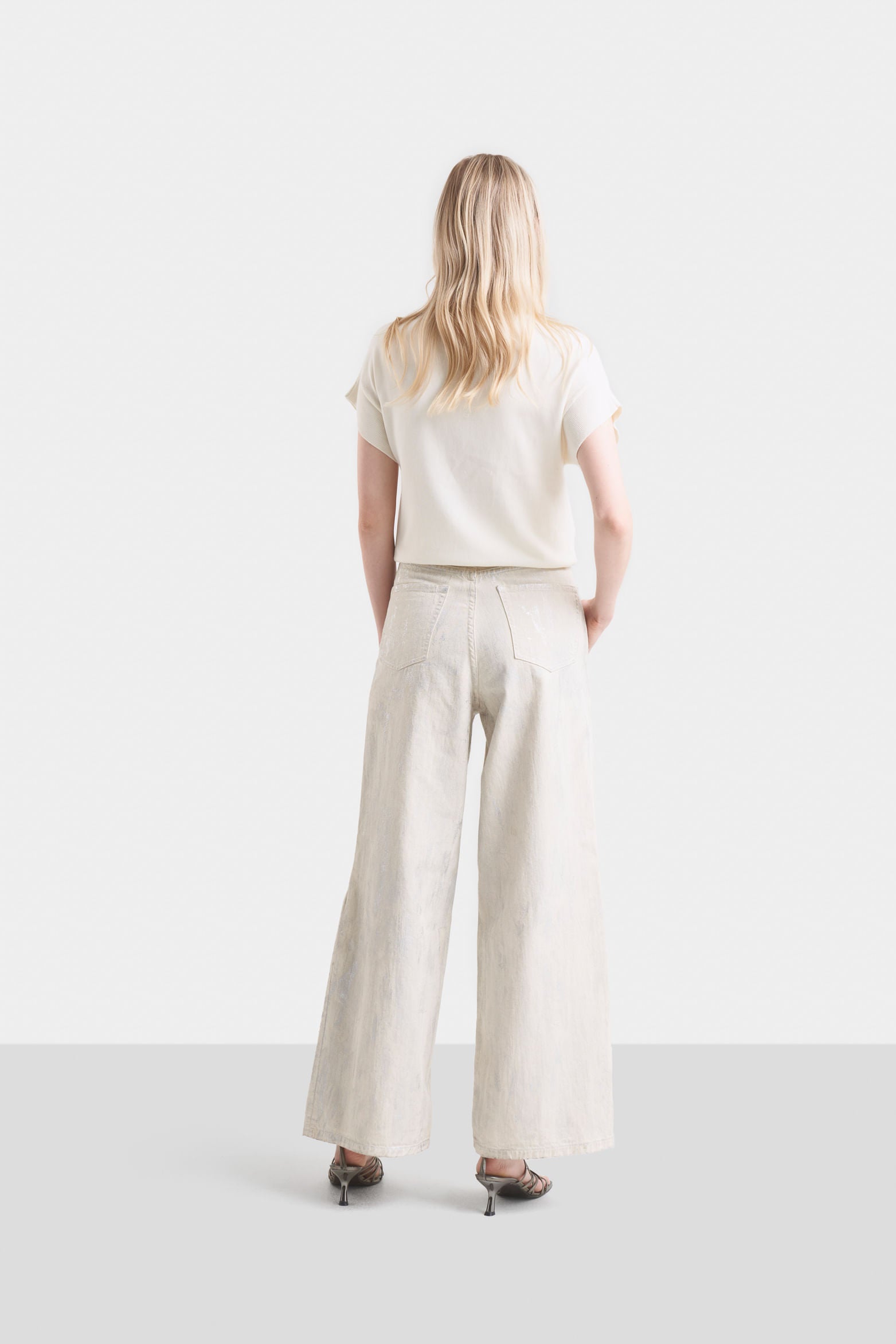 Elevate your wardrobe with our metallic effect jeans, a key piece for a unique look. Made from denim, their relaxed fit and metallic finish offer an avant-garde alternative to traditional styles. These jeans demonstrate practicality, craftsmanship, and Vélez's commitment to distinctive design.