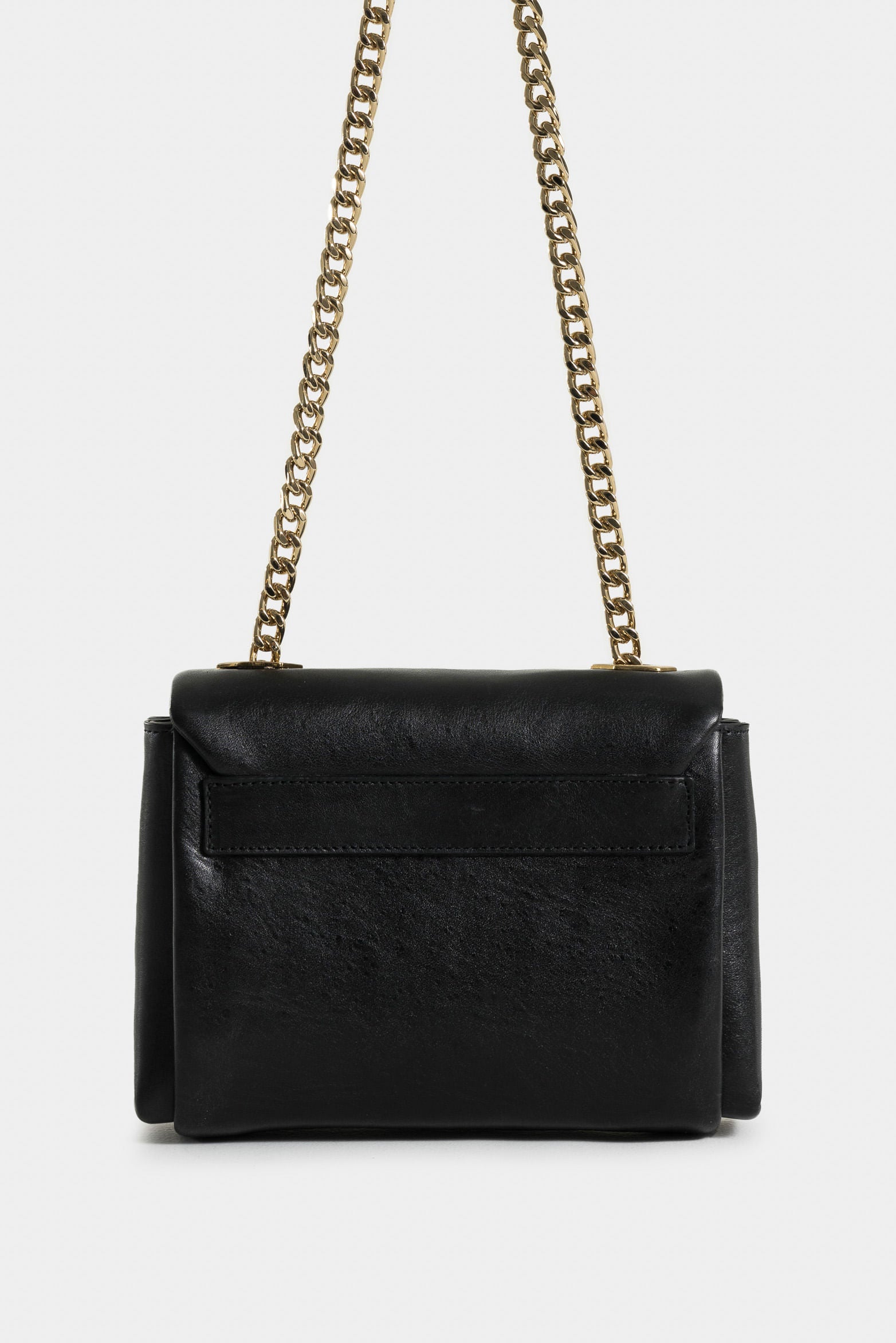 Essential elements are renewed to surprise you, our bowling bag is made of soft semi-gloss leather, featuring a flap closure system with a removable chain. Designed with your comfort in mind, it integrates an internal zipper pocket and a cell phone pocket. Classic lines that become timeless, as they match any type of outfit and always give you the touch of sophistication you are looking for.